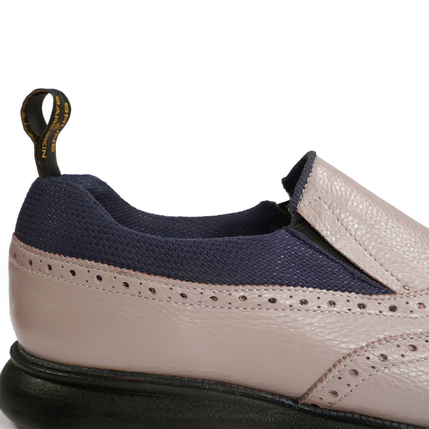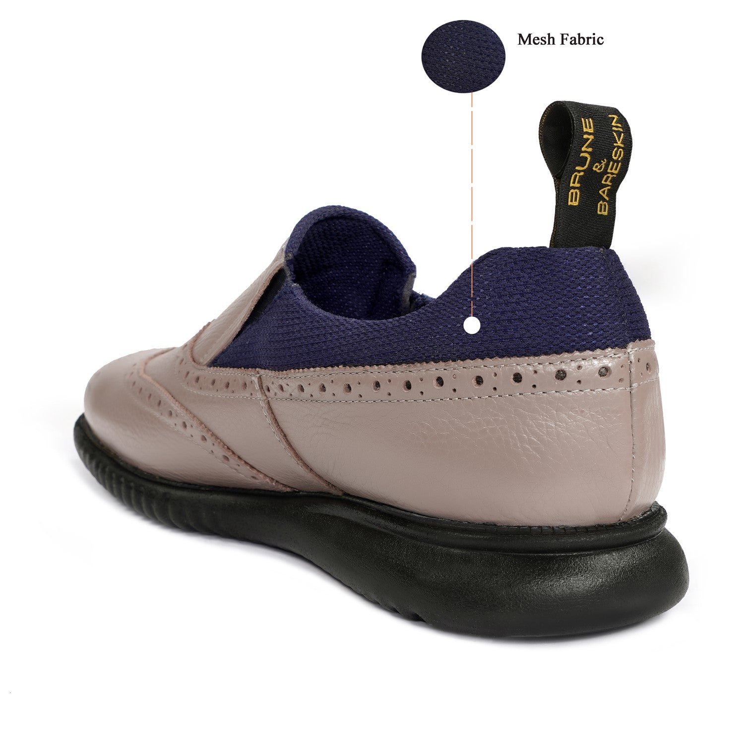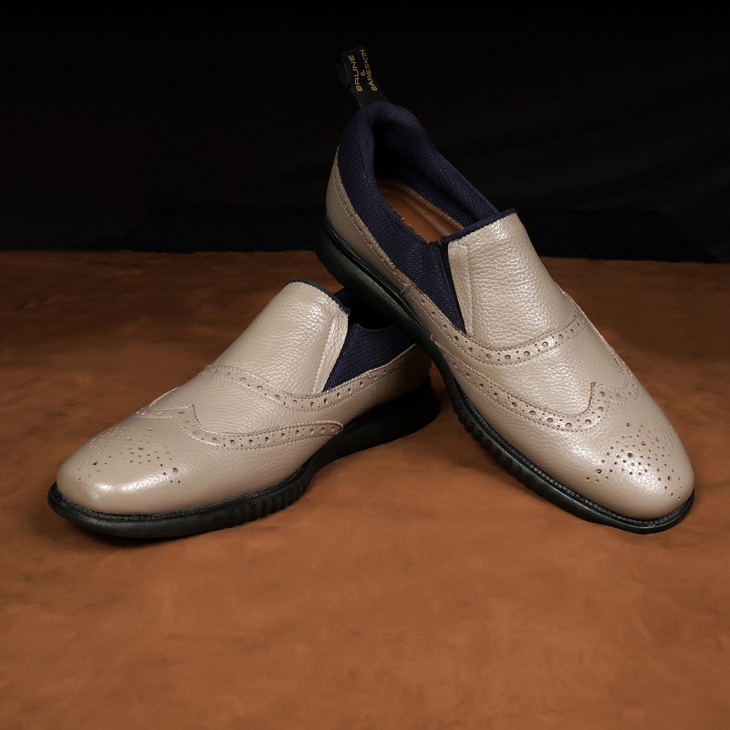 Beige Leather Blue Mesh Light Weight Slip-On Shoes