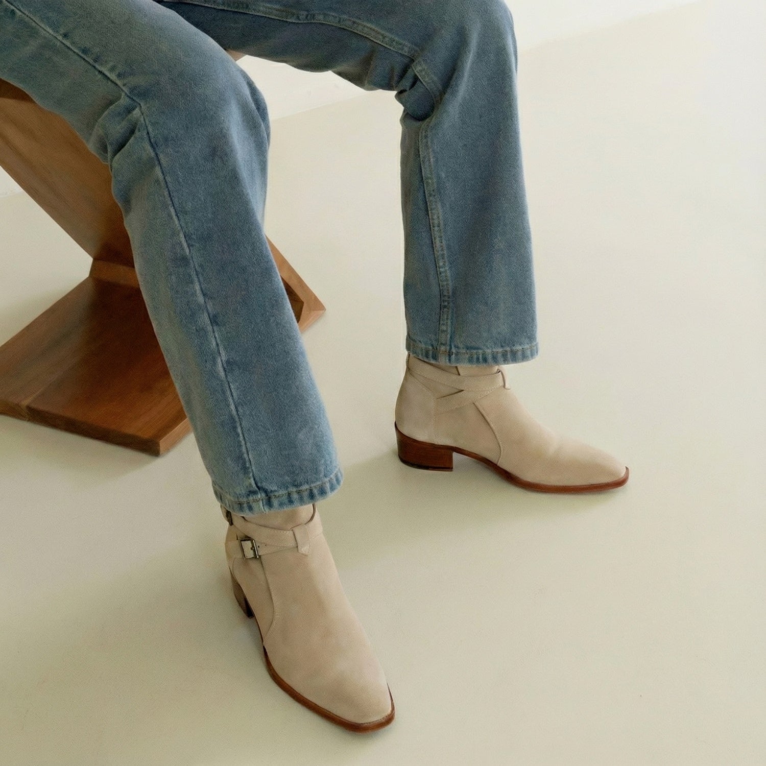 Jodhpuri Suede Leather Boots with Beige Ankle Wrap Around Buckle Strap by Brune & Bareskin