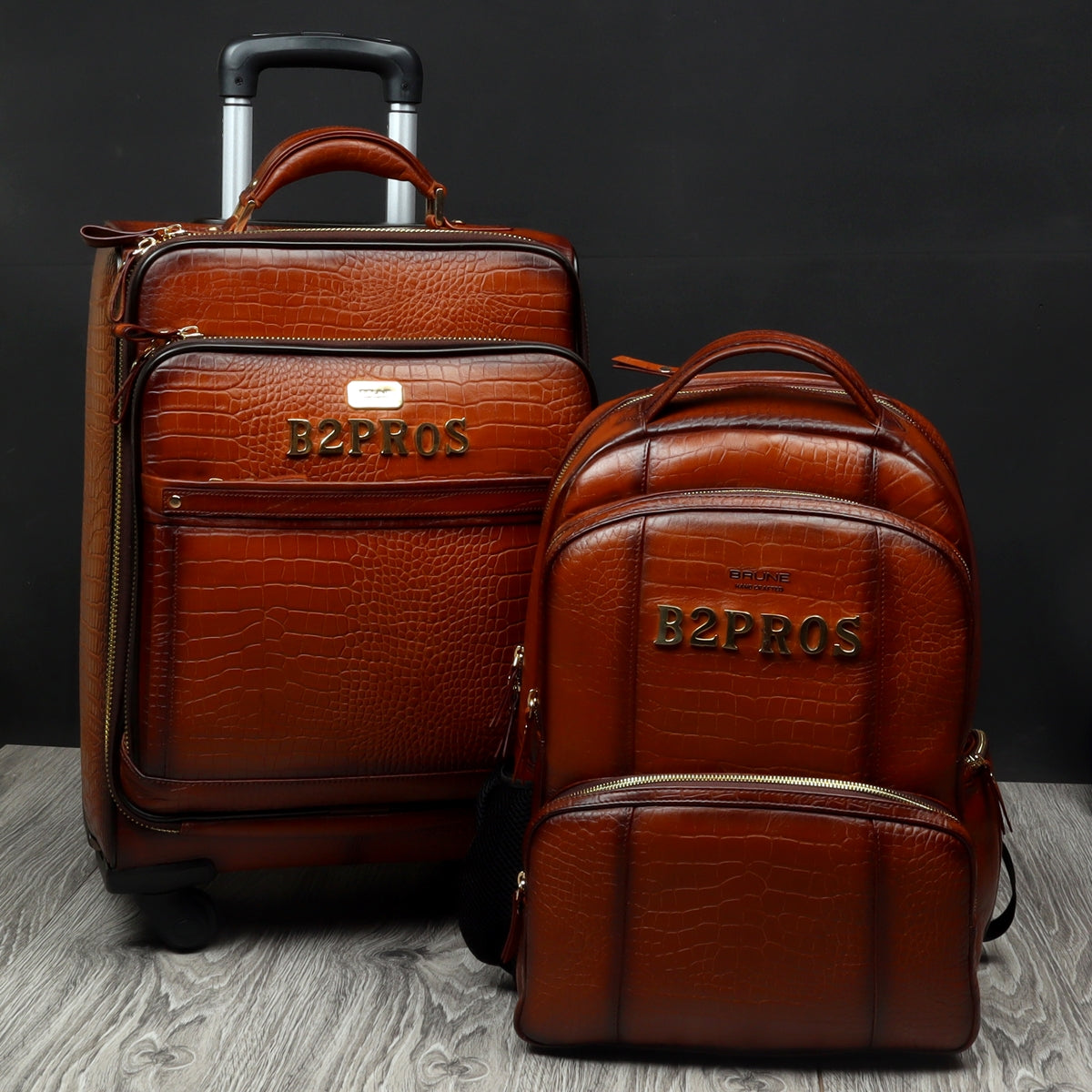 Bespoked Tan Leather Backpack & Trolly Bag by Brune & Bareskin