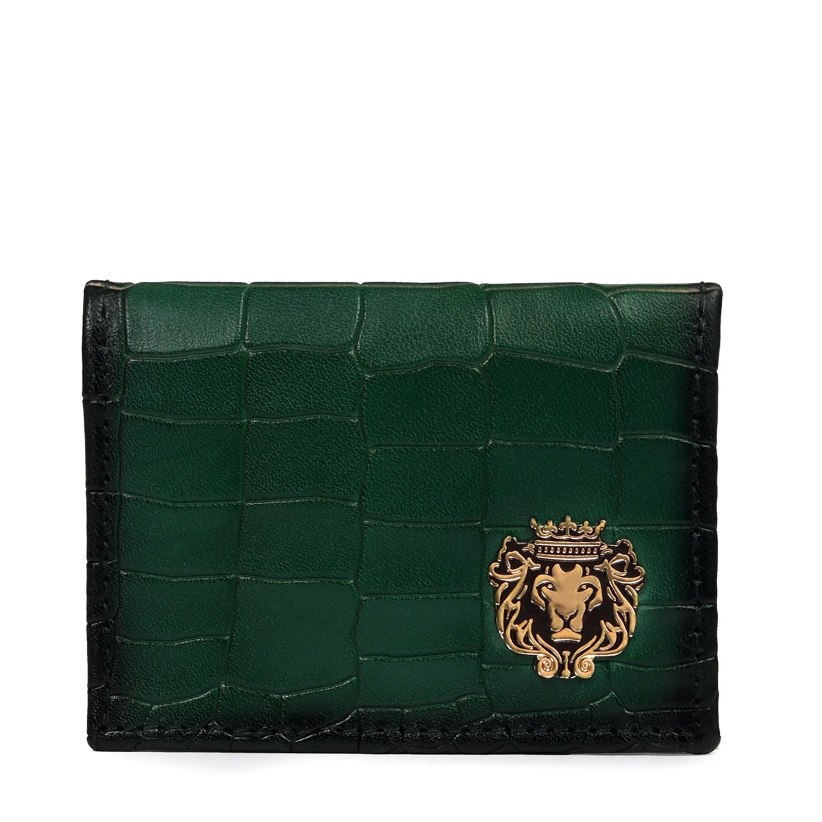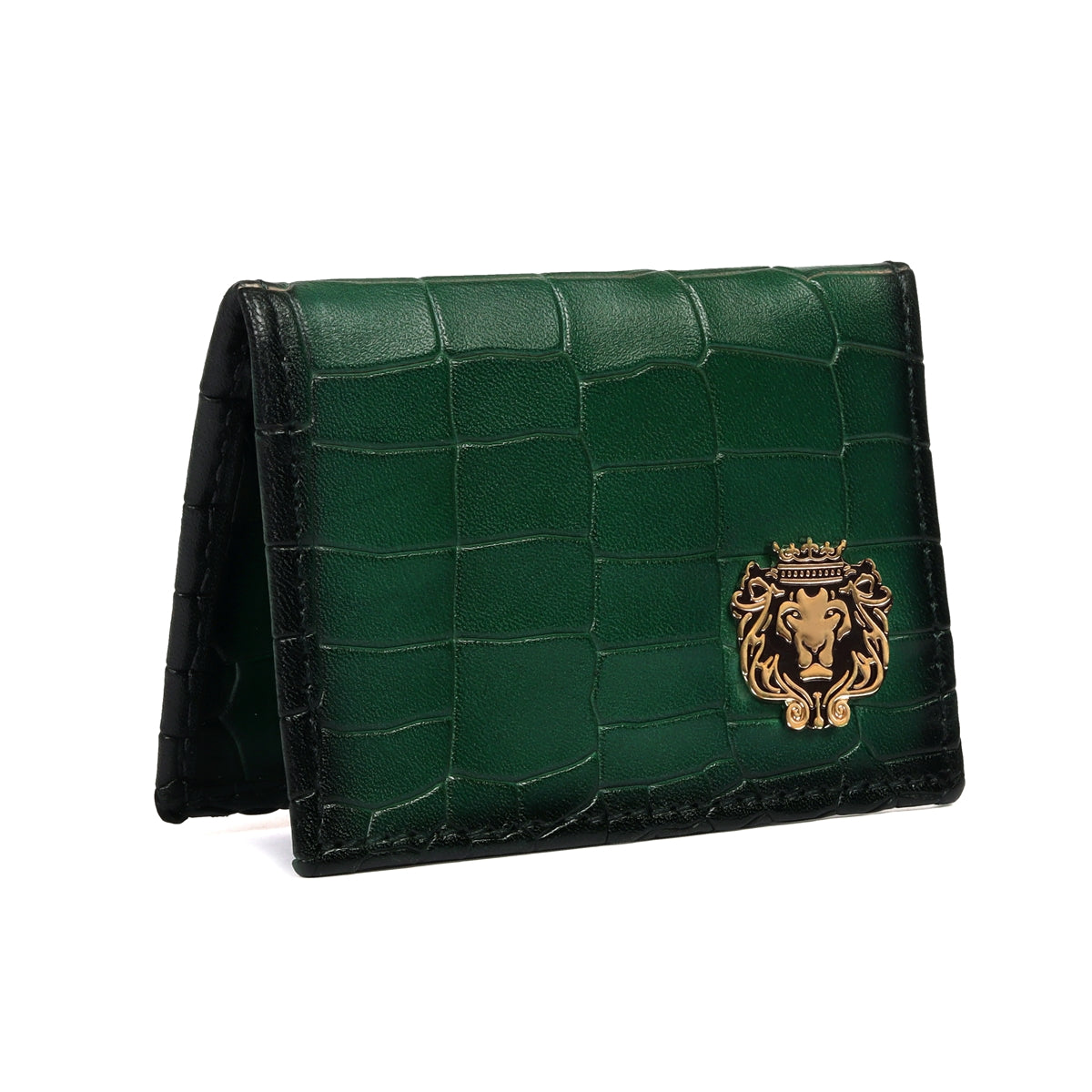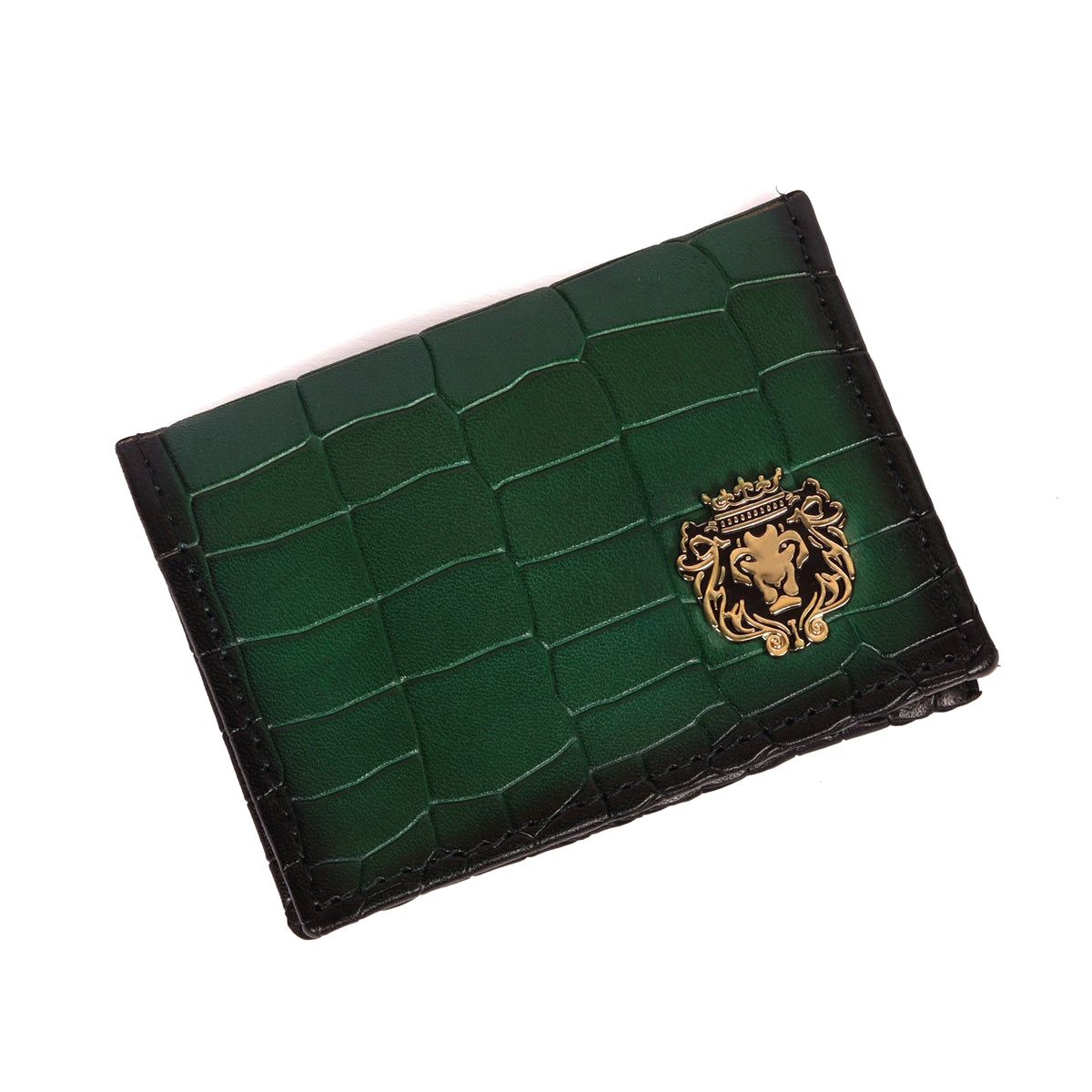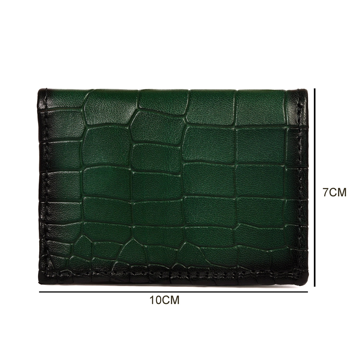 Bi-Fold Green Card Holder in Deep Cut Leather
