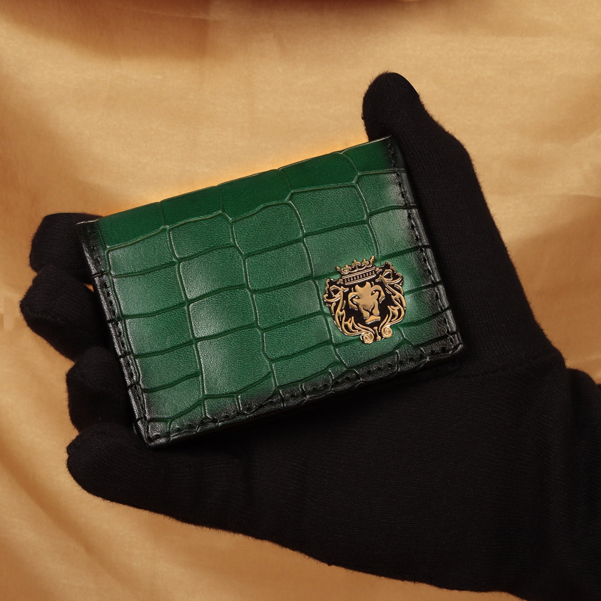 The variety of Leather is not limited to shoes only. Deep Cut Croco Print Leather Cardholder is there to give you style, safety as well as security for your cards. It is one of the most valuable belongings of our life. Bi-fold opening card holder features multiple pockets to carry Cash, debit/credit cards, identity cards, etc. You can get it made in any color shade you want along with the name initials with our Bespoke Service.