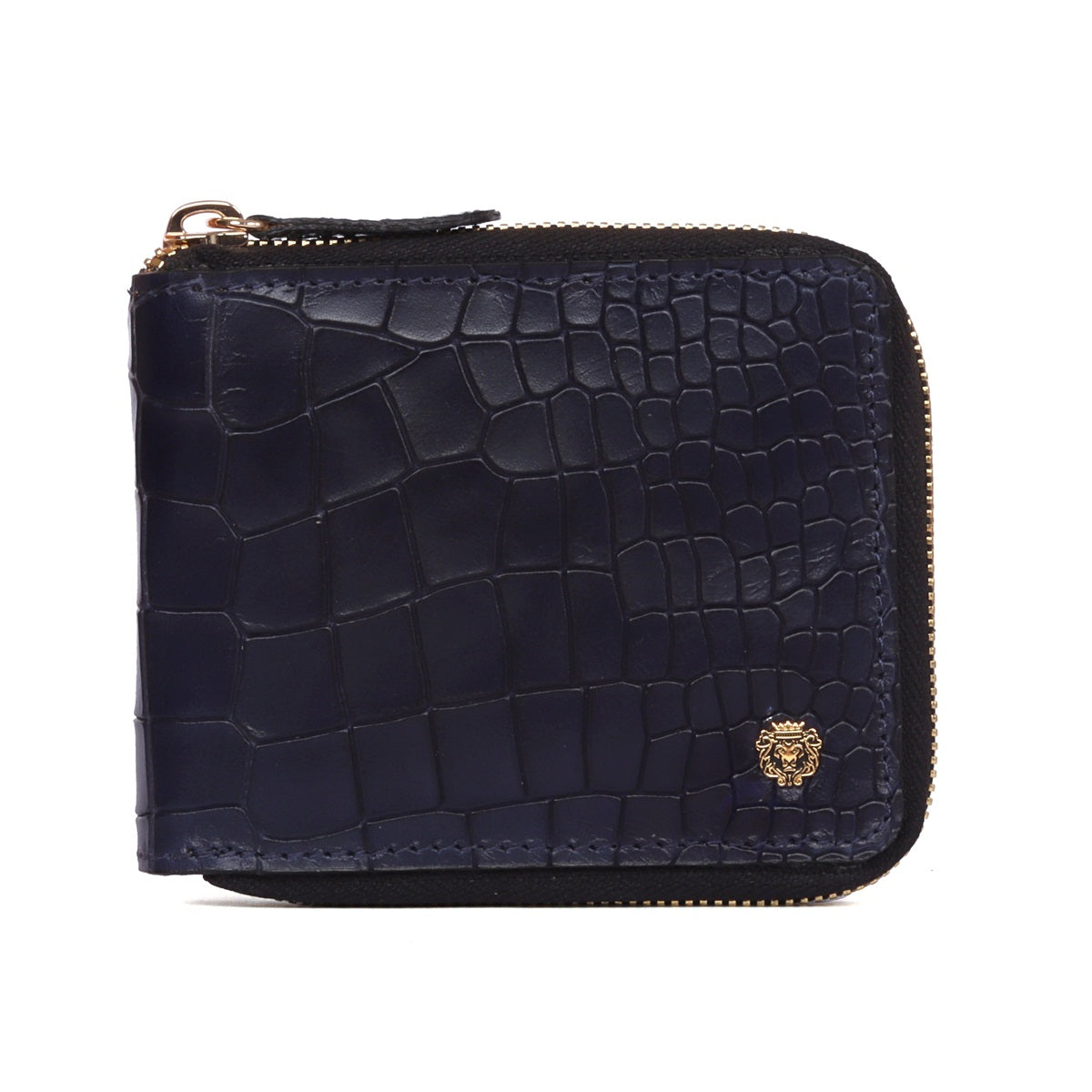 Bi-Fold Zipper Wallet in Navy Blue Croco Textured Leather