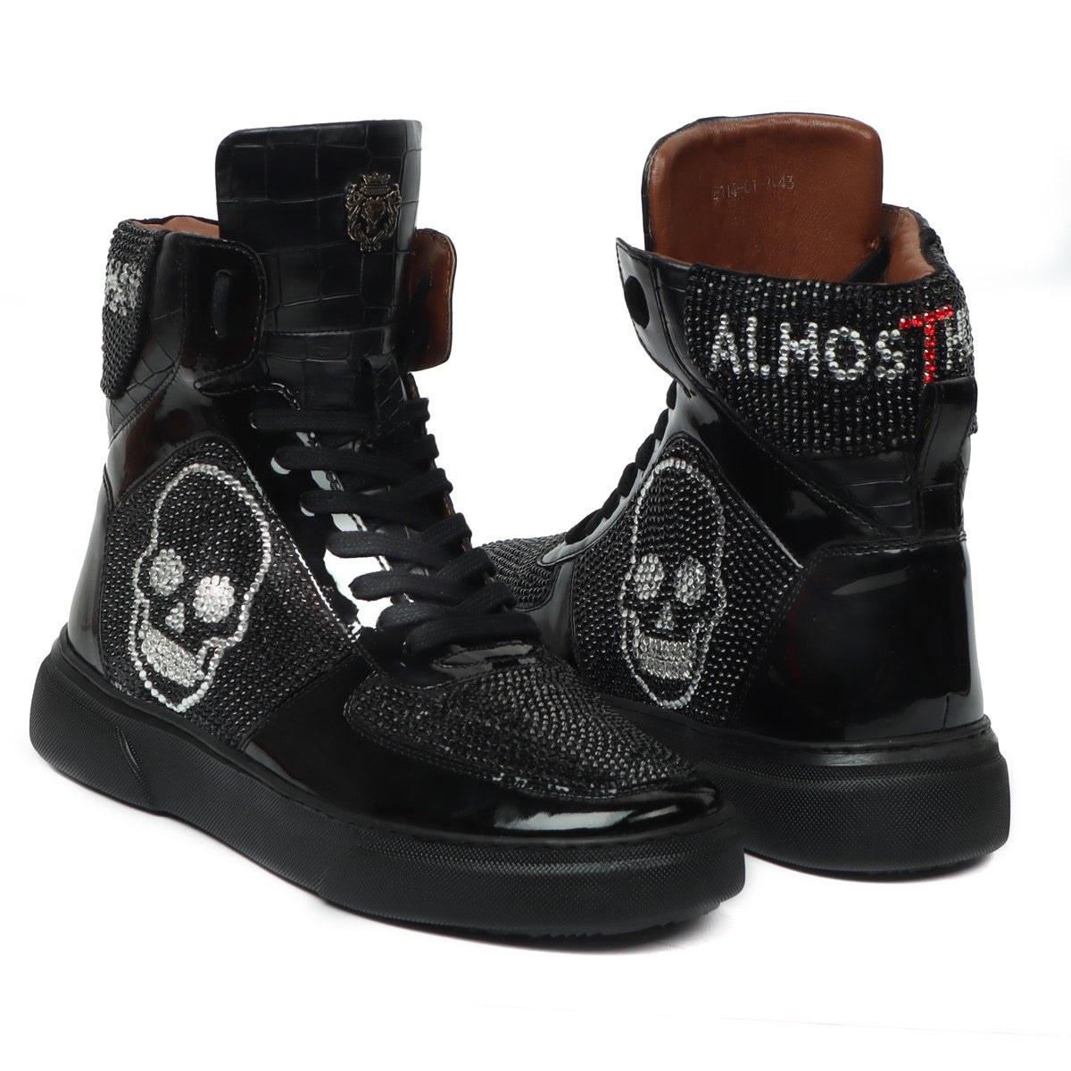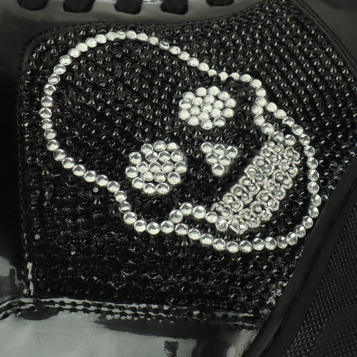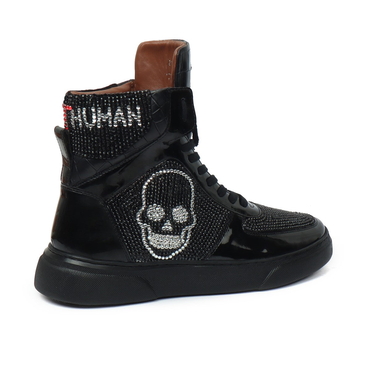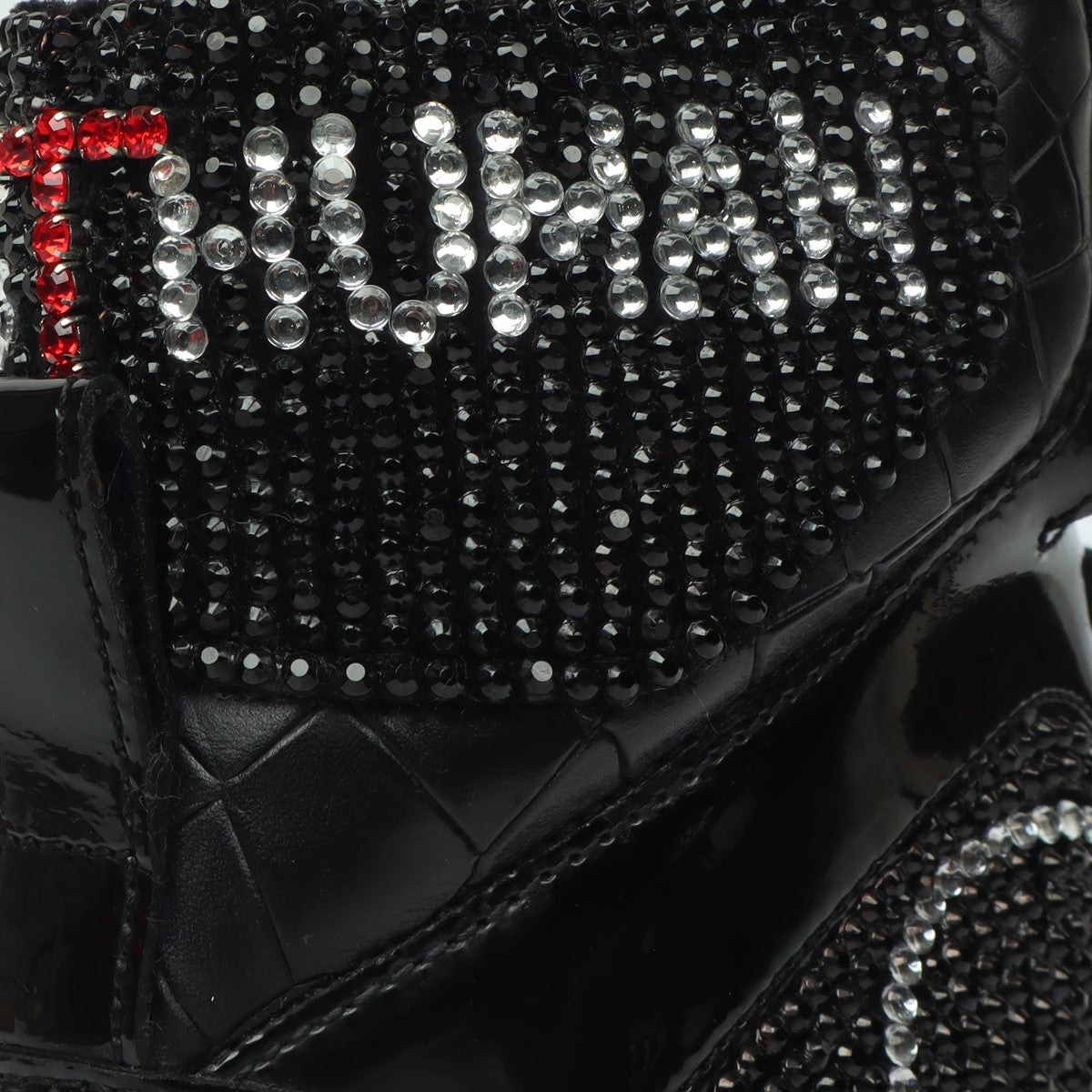 Black and Silver 'Almost Human' Swarovski Crystal Zardosi Patent Leather Sneakers by Brune & Bareskin