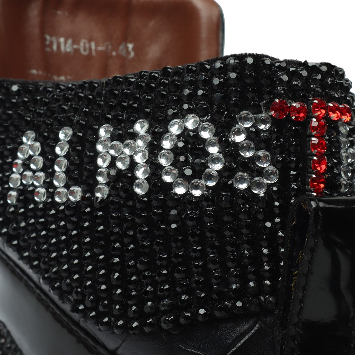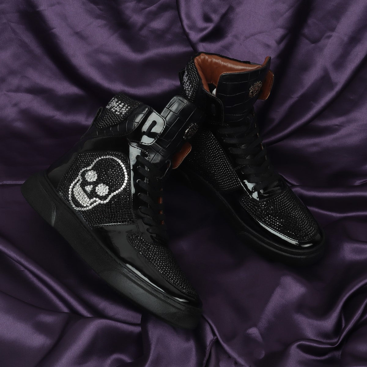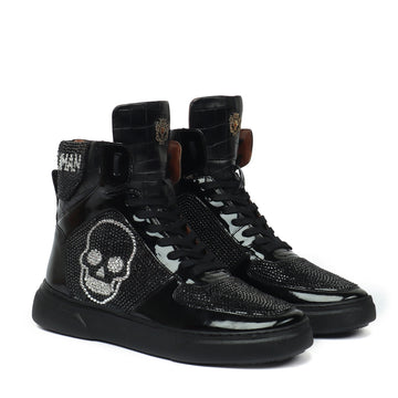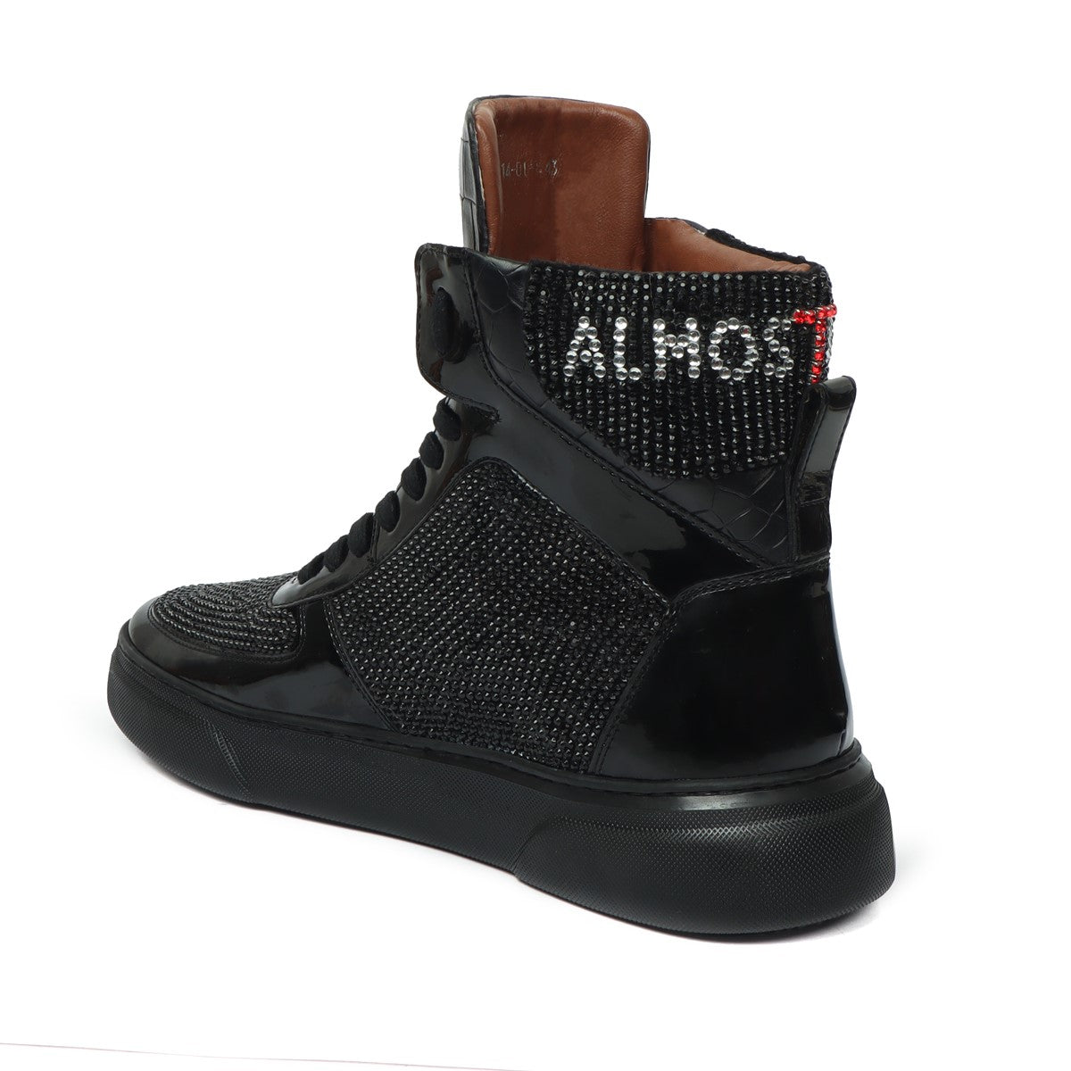 Black and Silver 'Almost Human' Swarovski Crystal Zardosi Patent Leather Sneakers by Brune & Bareskin