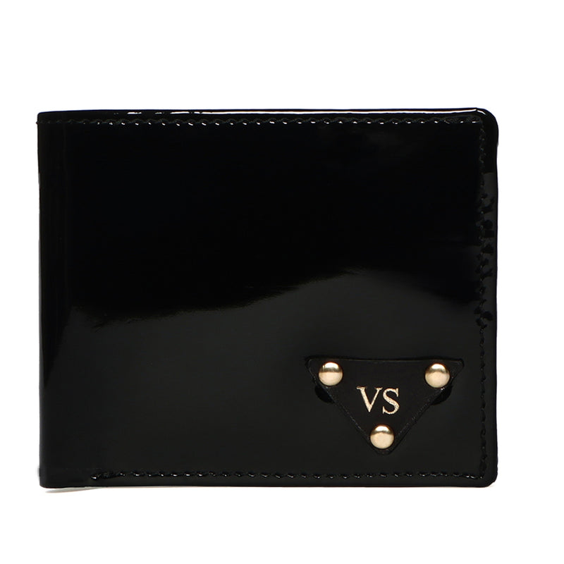 When your favoritism reaches that level, where you can not live without it. This handcrafted patent leather wallet with multiple slots brings security and convenience to your traveling. This handsome black genuine patent leather Bi-Fold wallet is handmade from the finest veg. Bi-fold opening wallet features two main pockets along with small secure pocket on both sides. Black patent leather with a polyester lining and features 4 card slot on both side, and two full length pockets for notes. It has a total of 10 pockets, which makes it a perfect buy for today's generation. The BRUNE & BAREKIN riveted signature metal golden finished brand lion logo on front side and in side increases the elegance.
