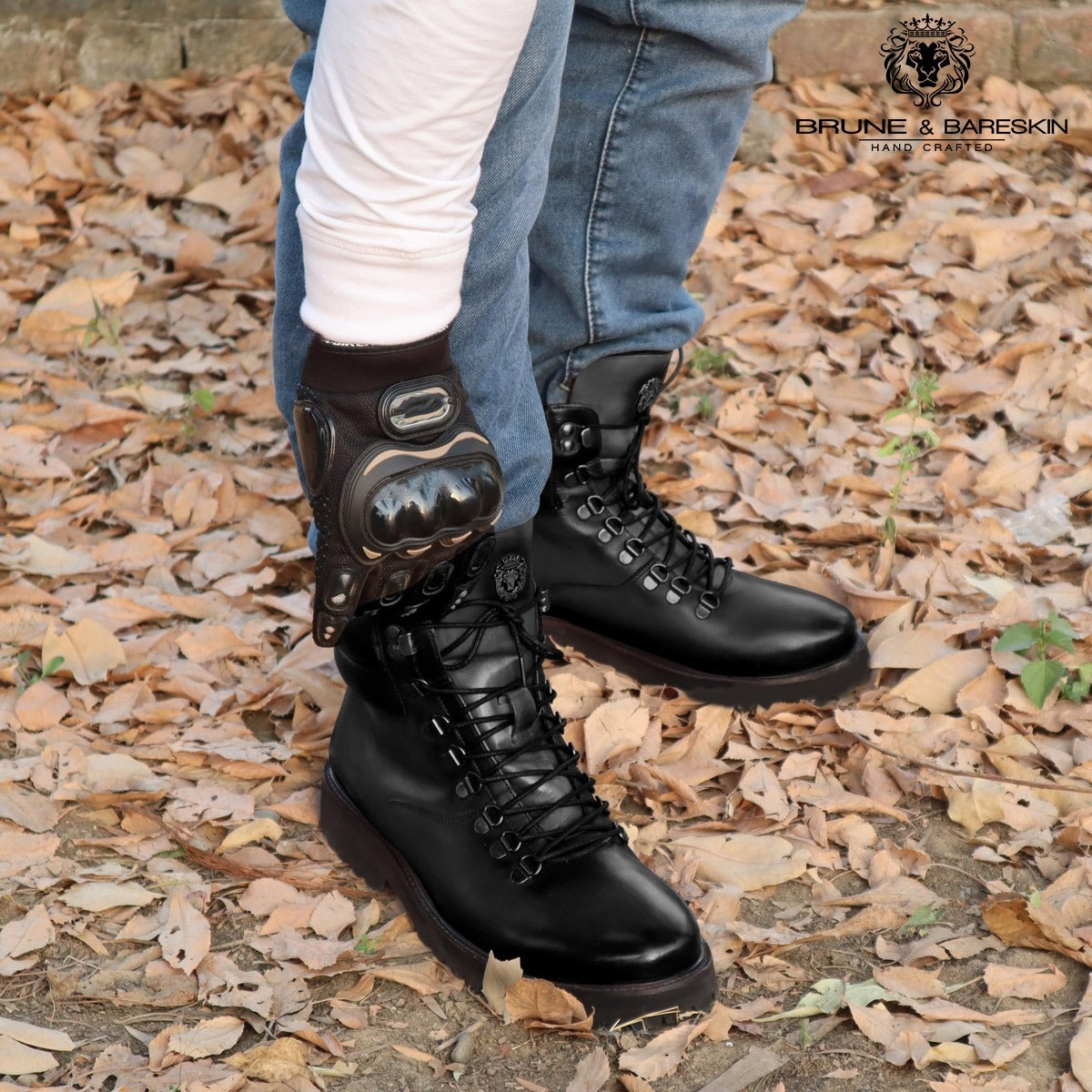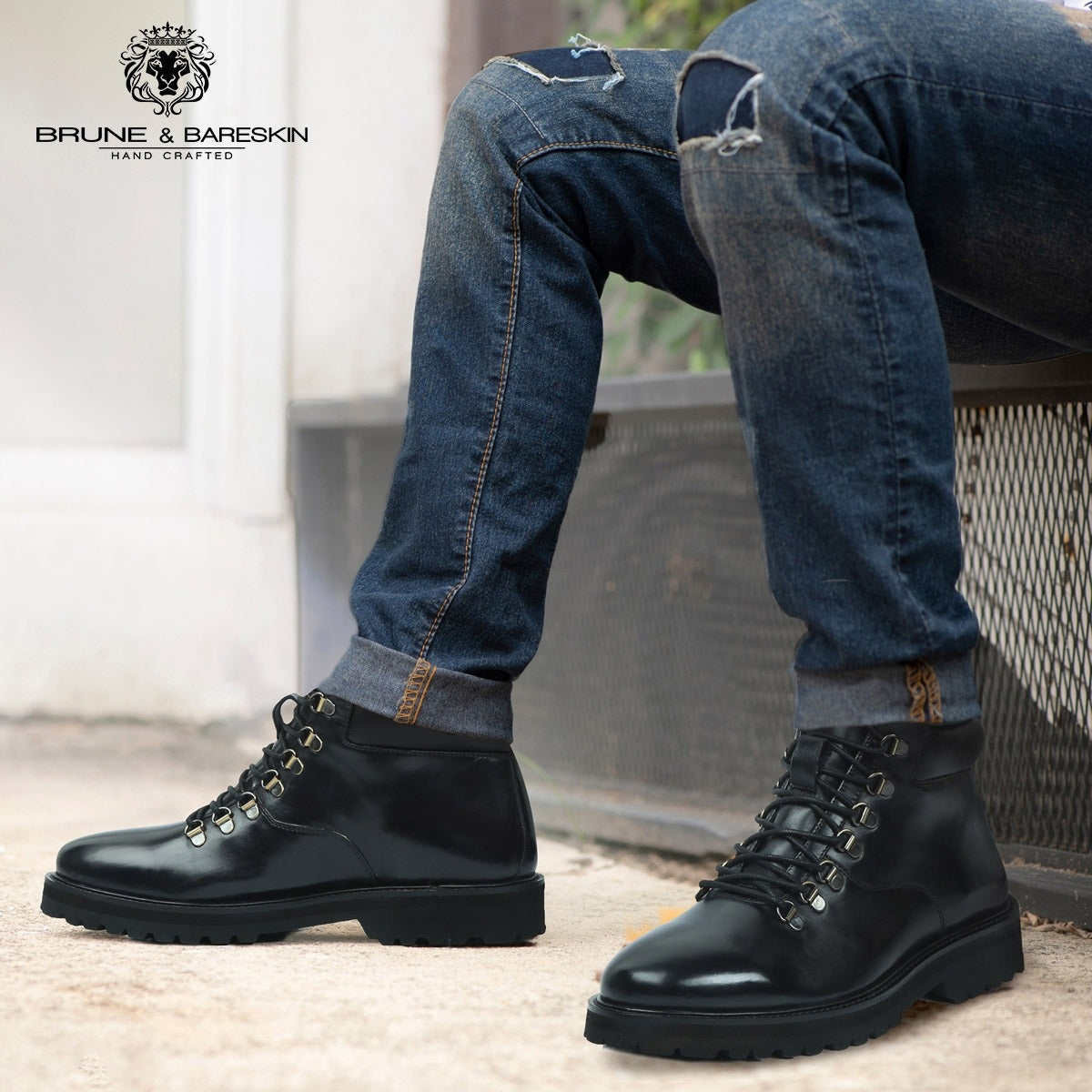 Light Weight Black Biker Boot With Lace-Up Closure By Brune & Bareskin