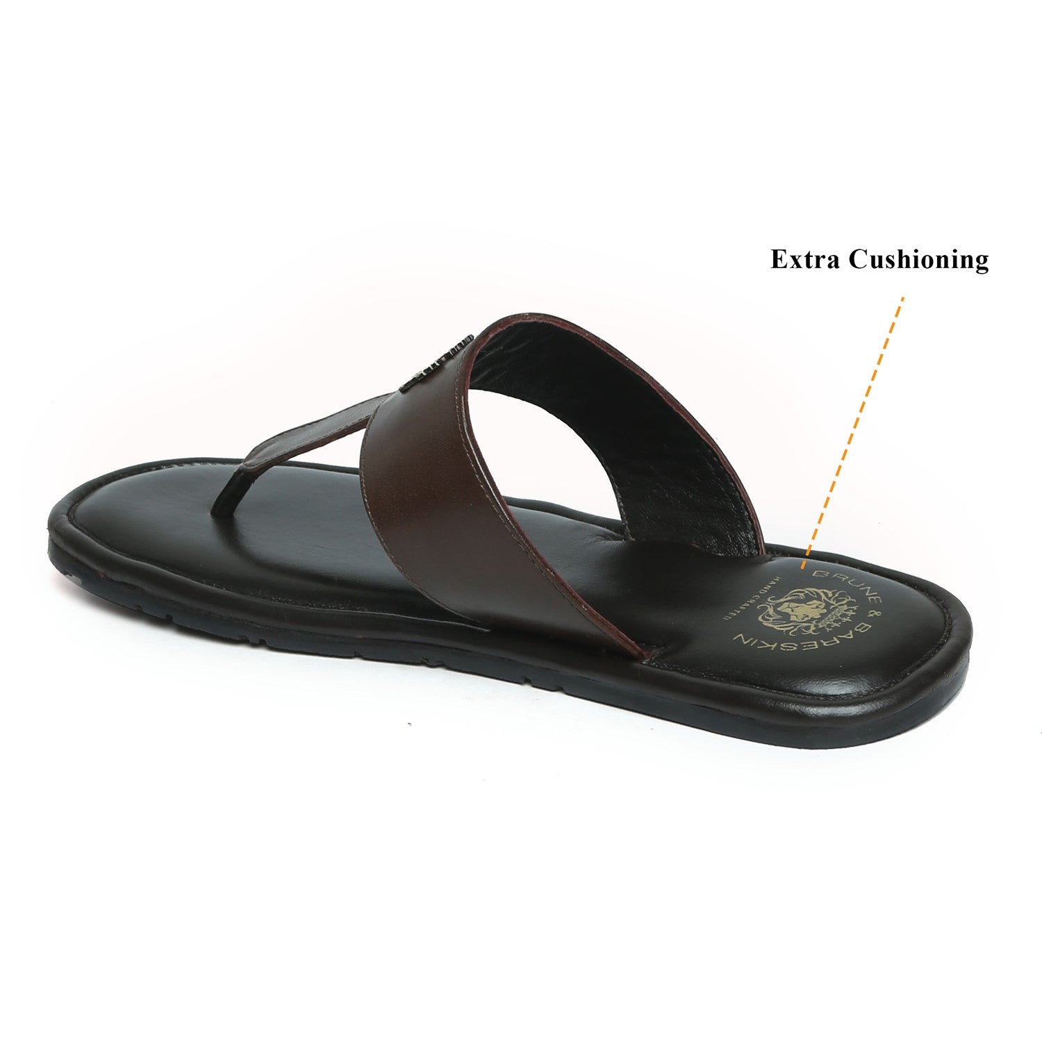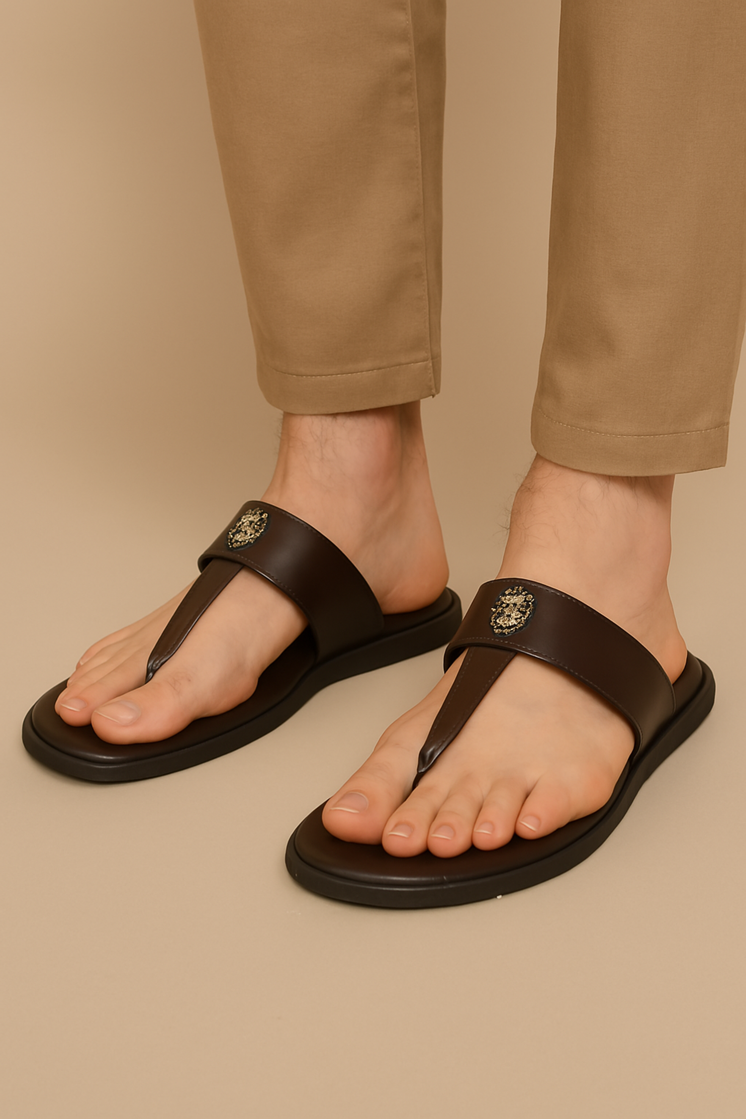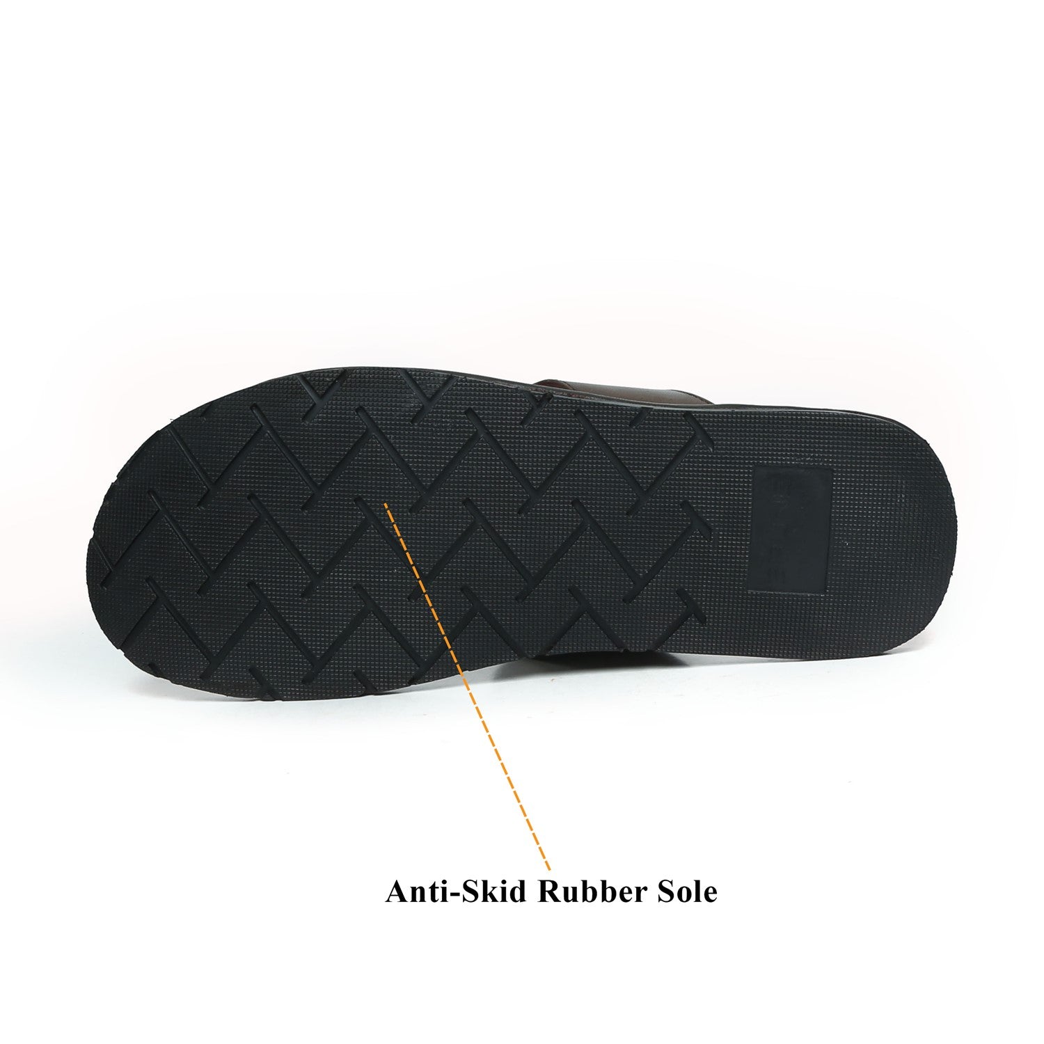 Men's T-Strap Slide-in Slippers with Black-Brown Leather Strap