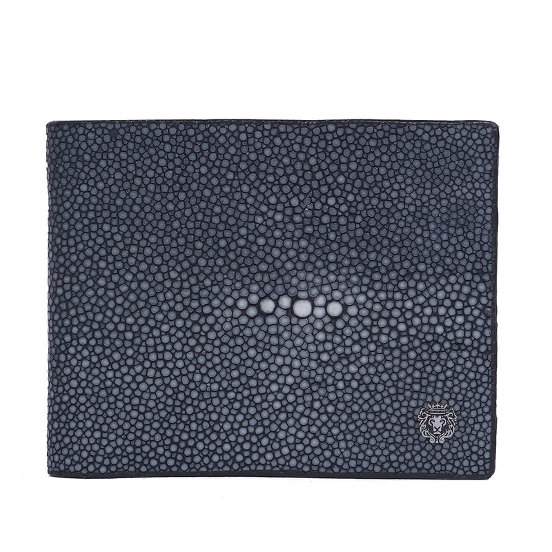 Black Caviar Finish Stingray Leather Bi-Fold Wallet
