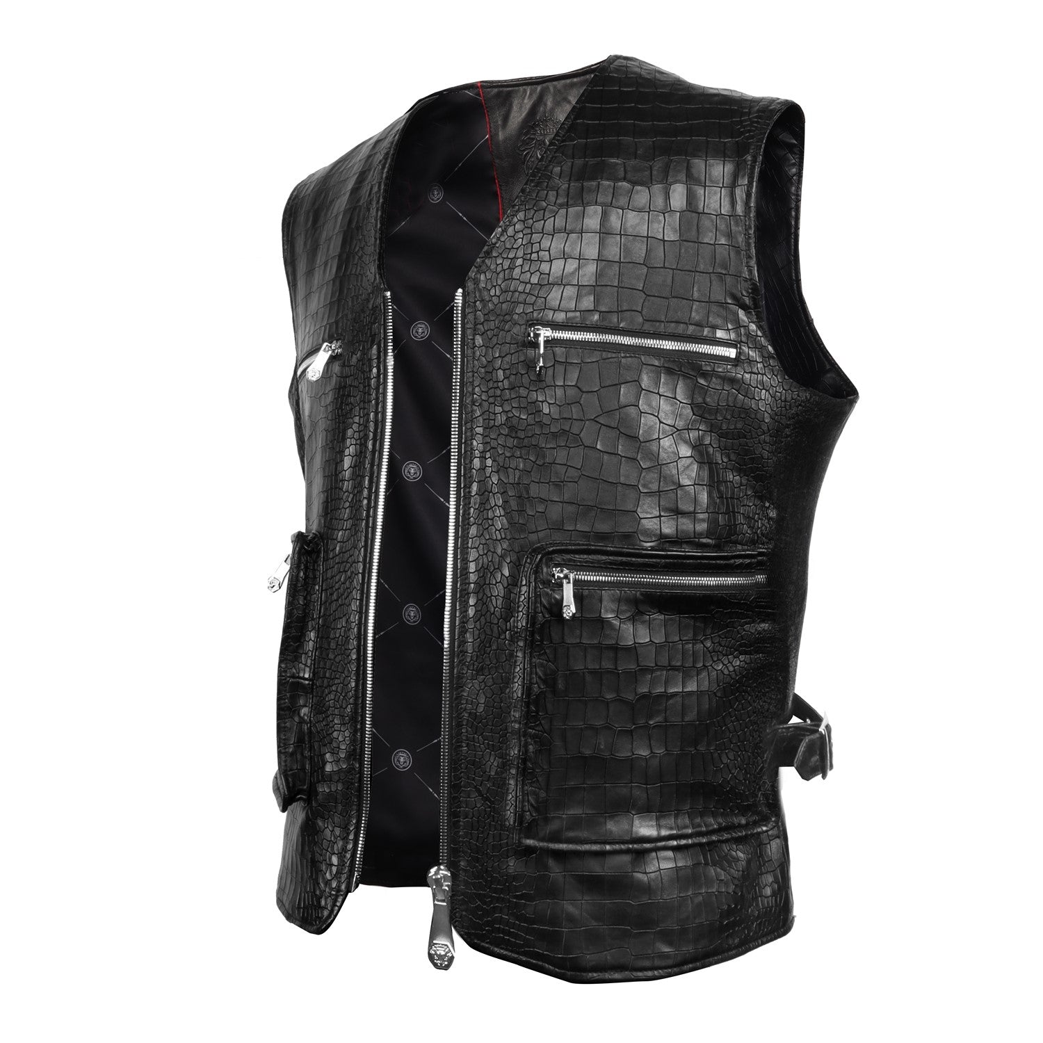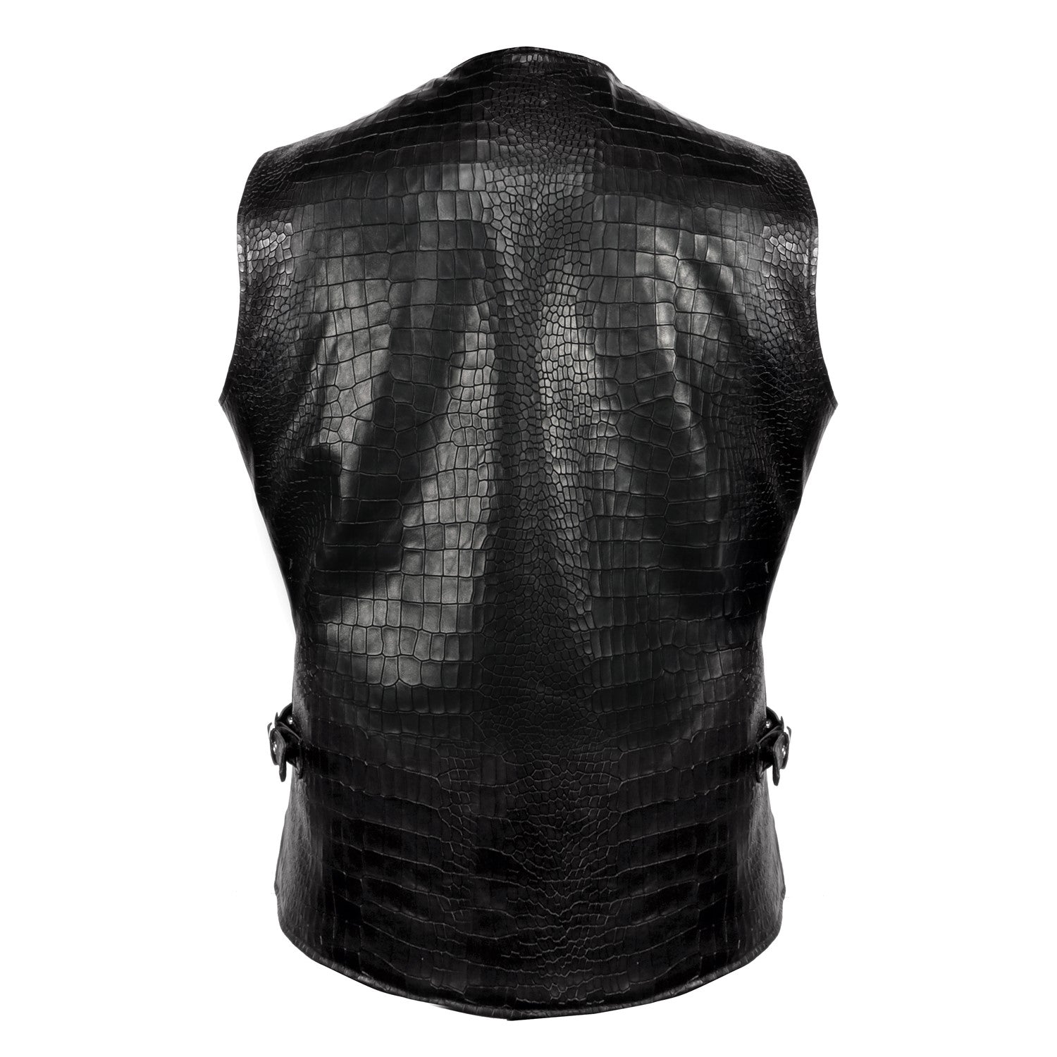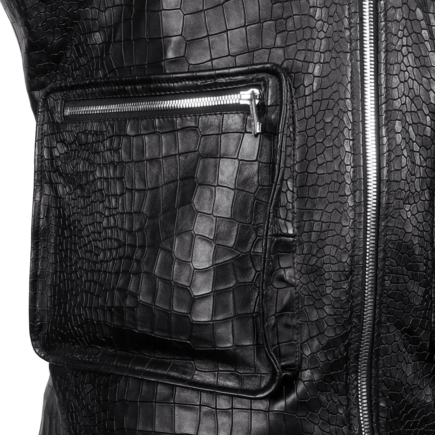 Black Croco Embossed Leather Utility Vest