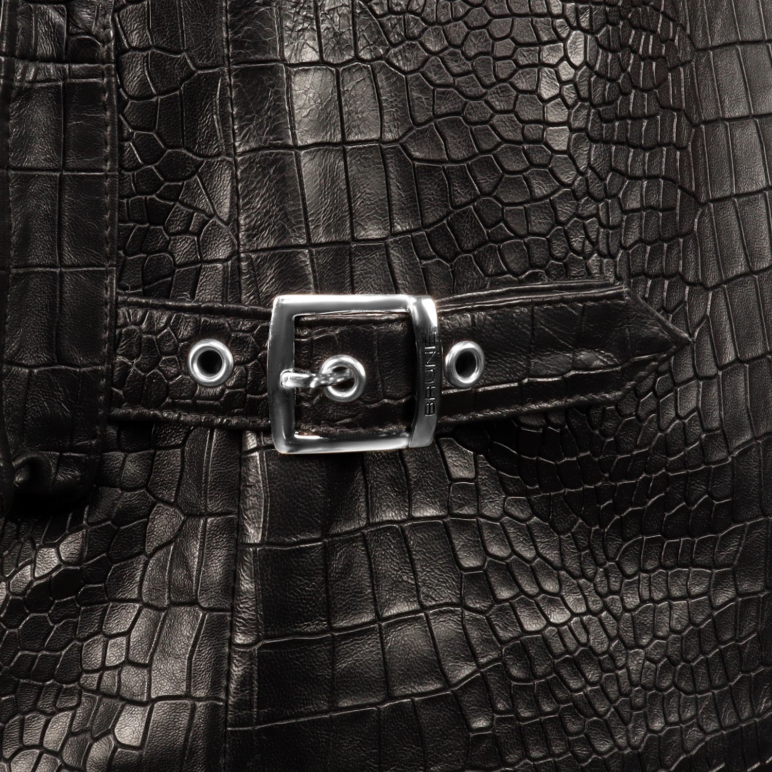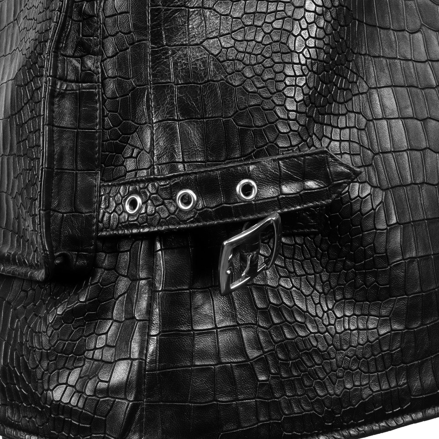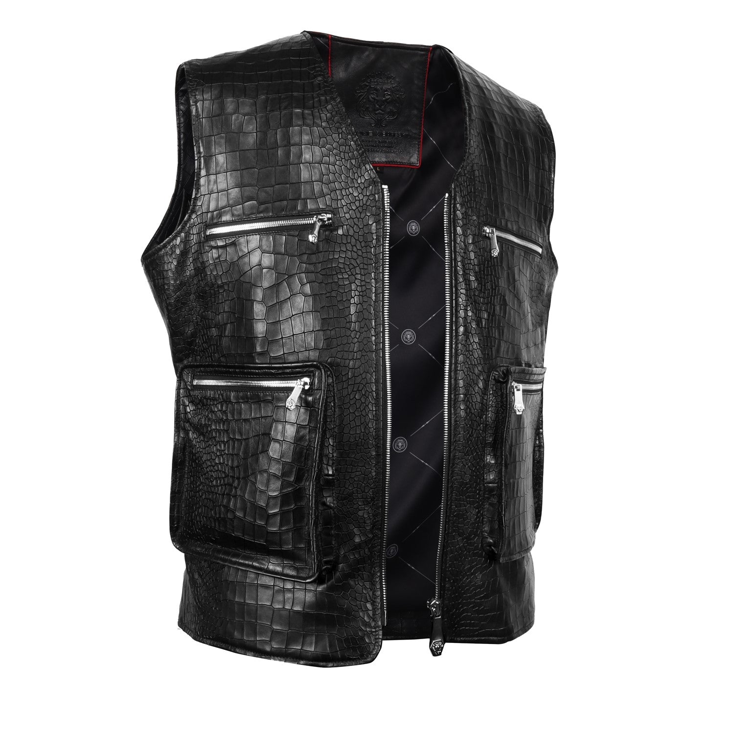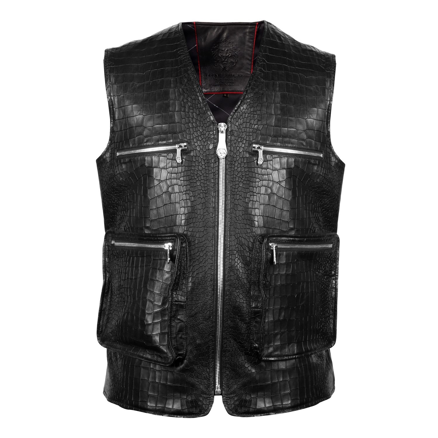 Black Croco Embossed Leather Utility Vest