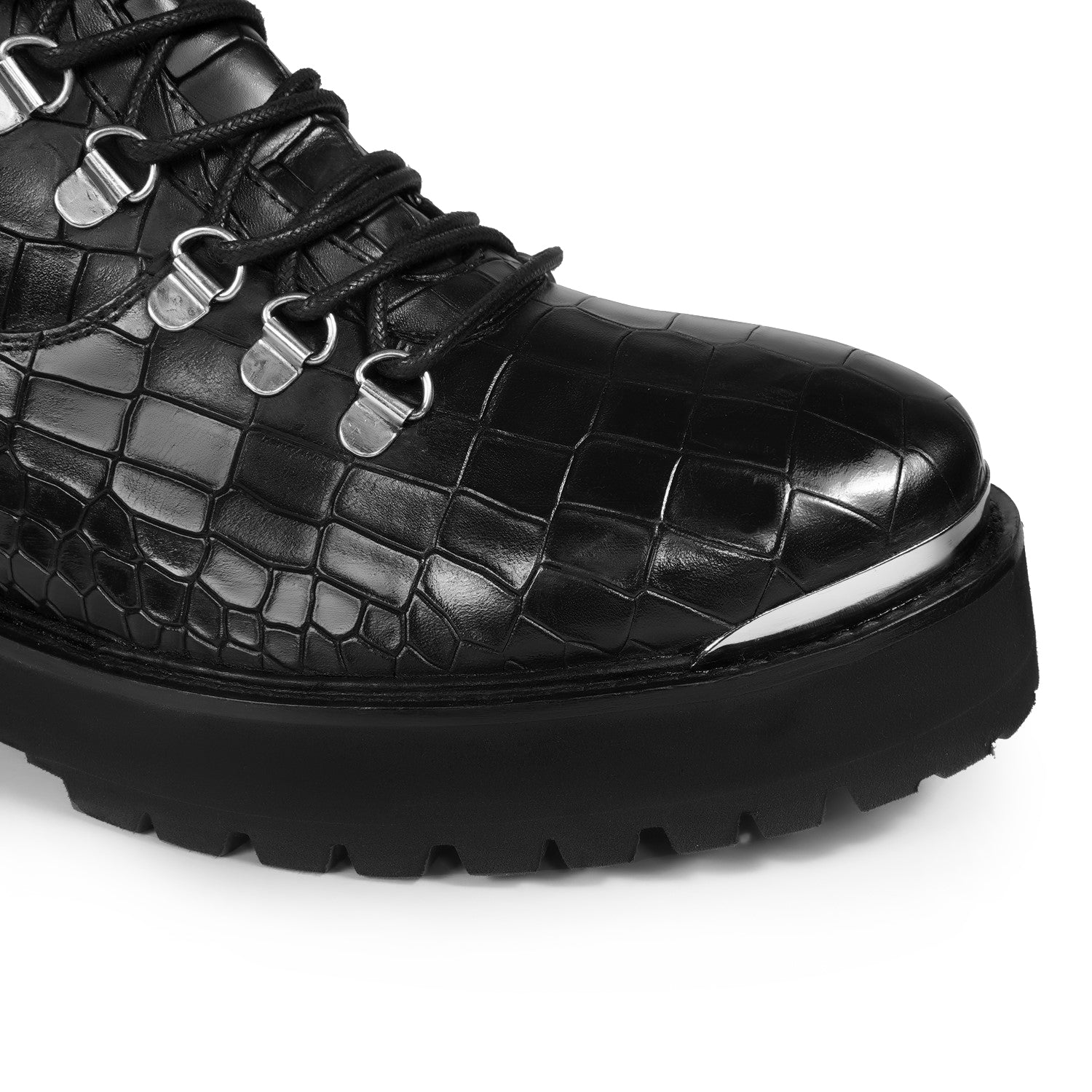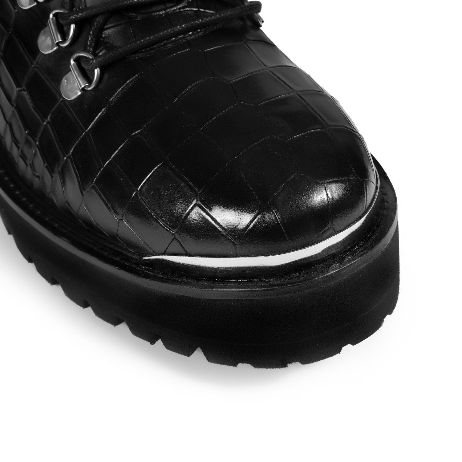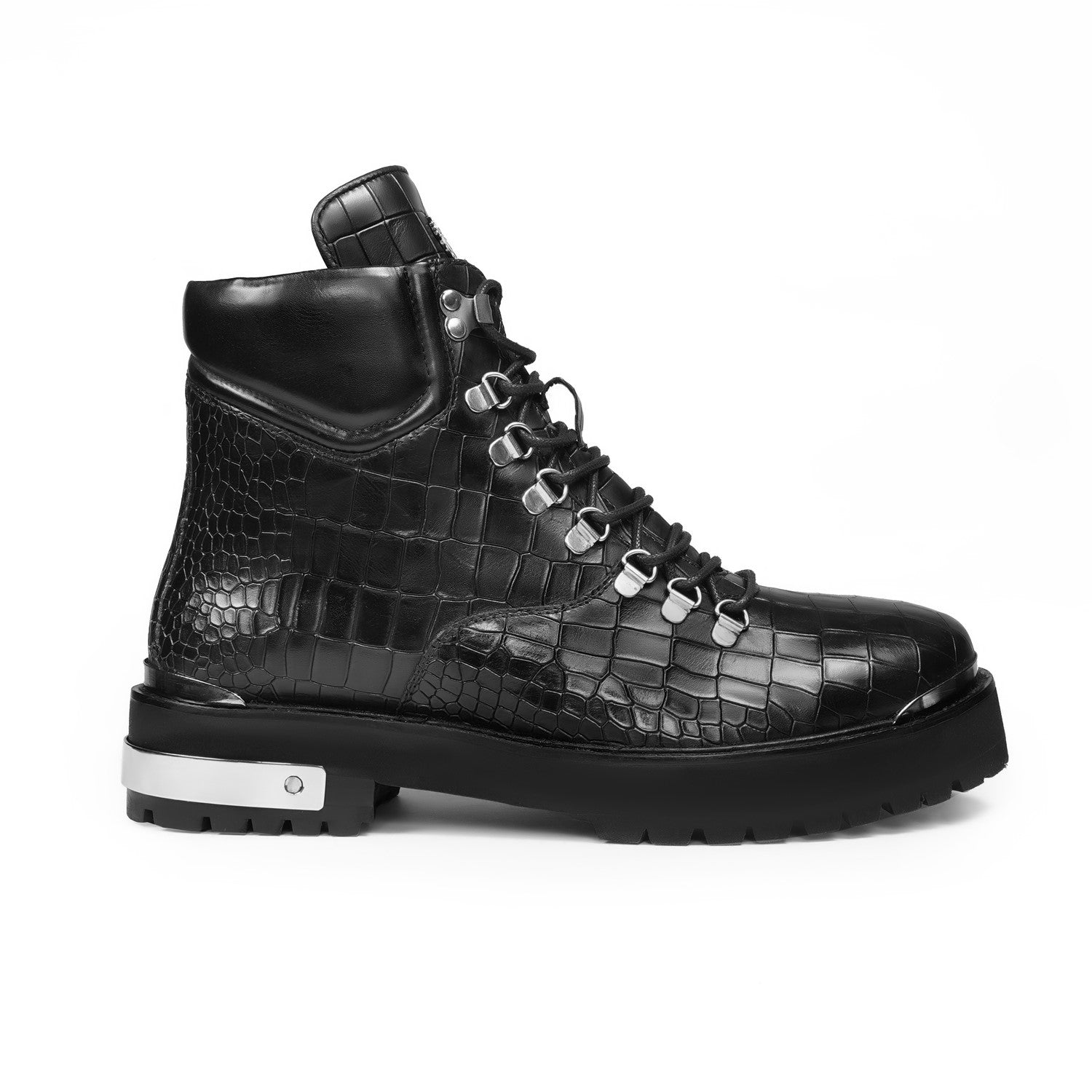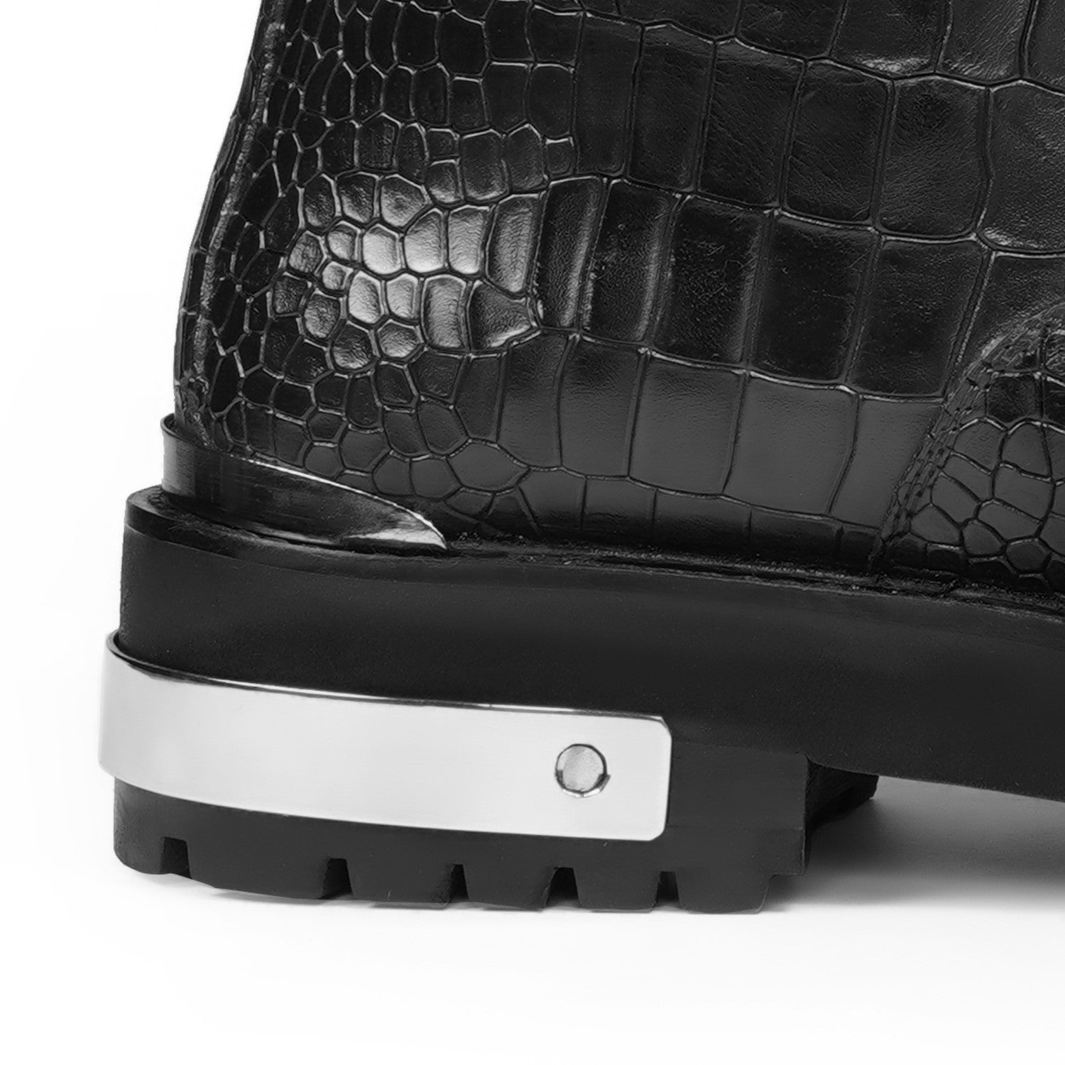 Black Croco Embossed Silver Detailing Lightweight Chunky Leather Boots