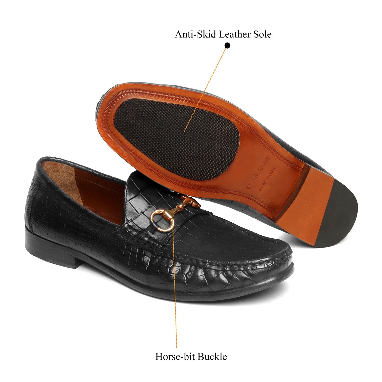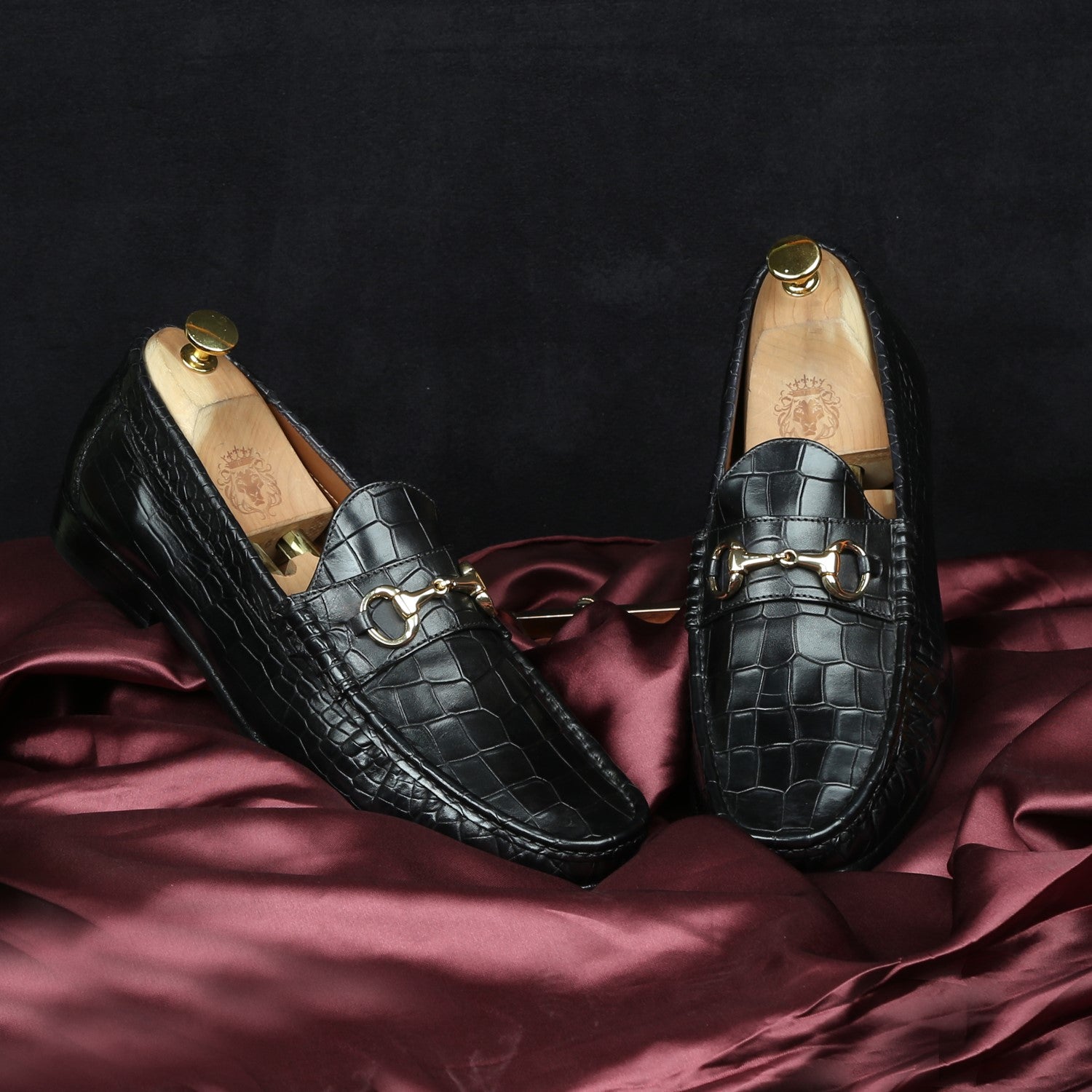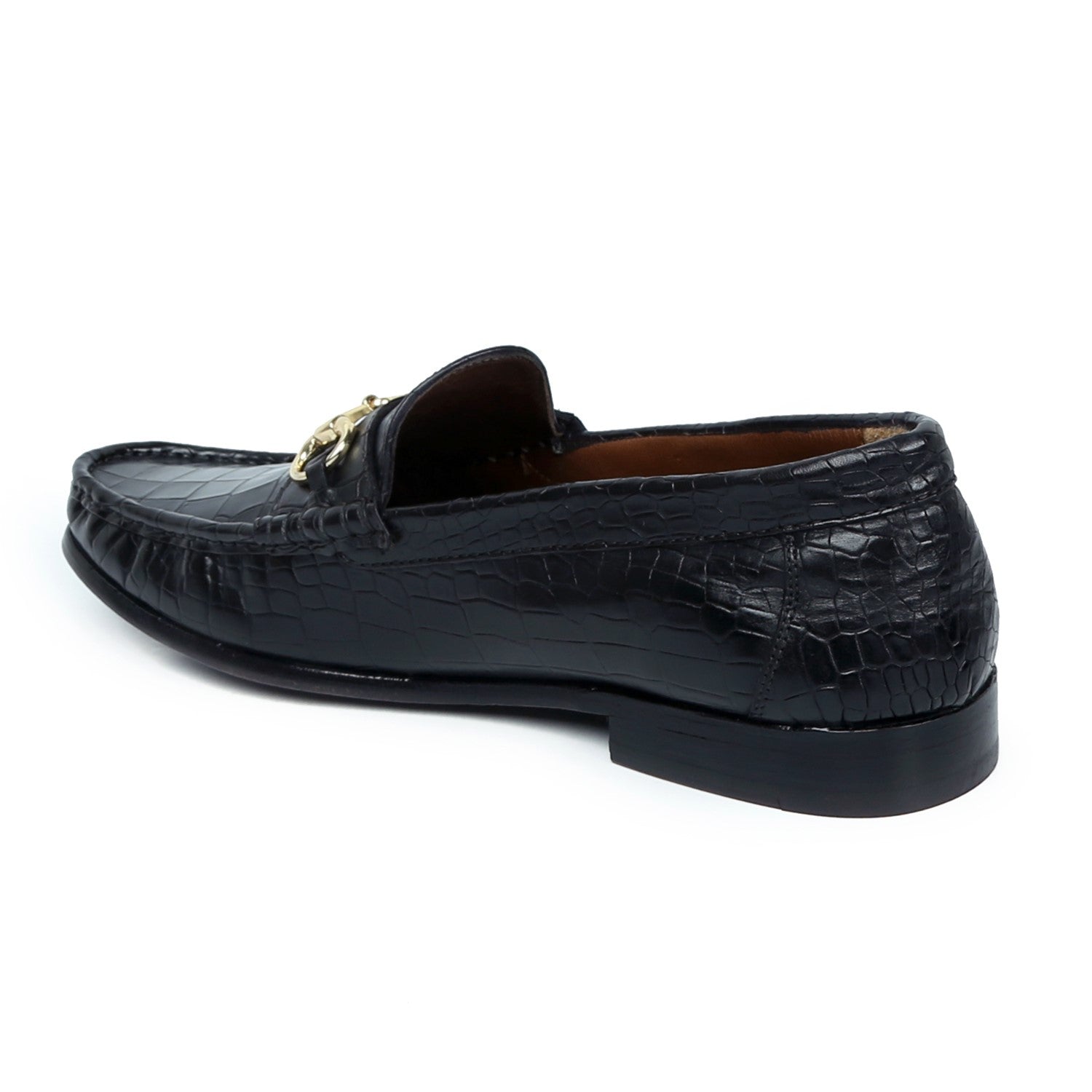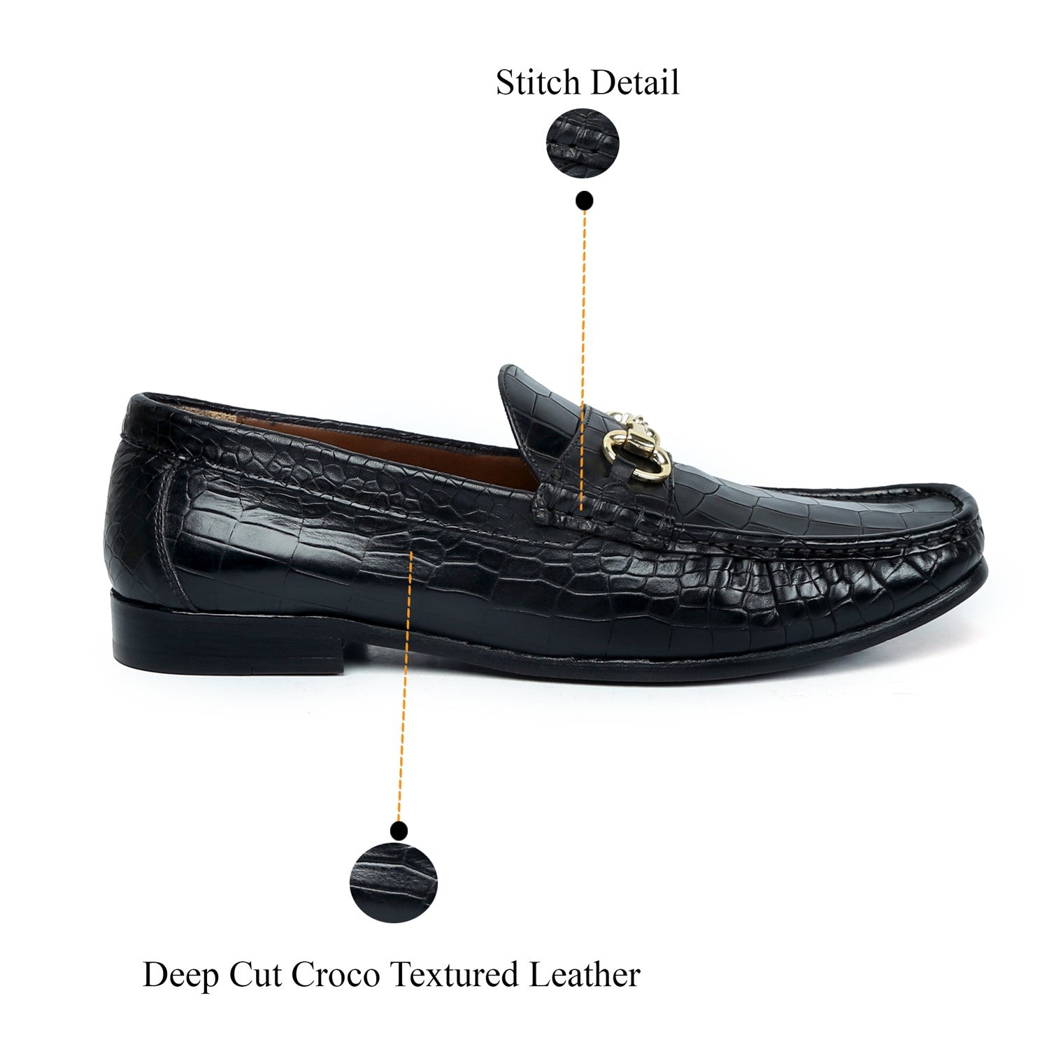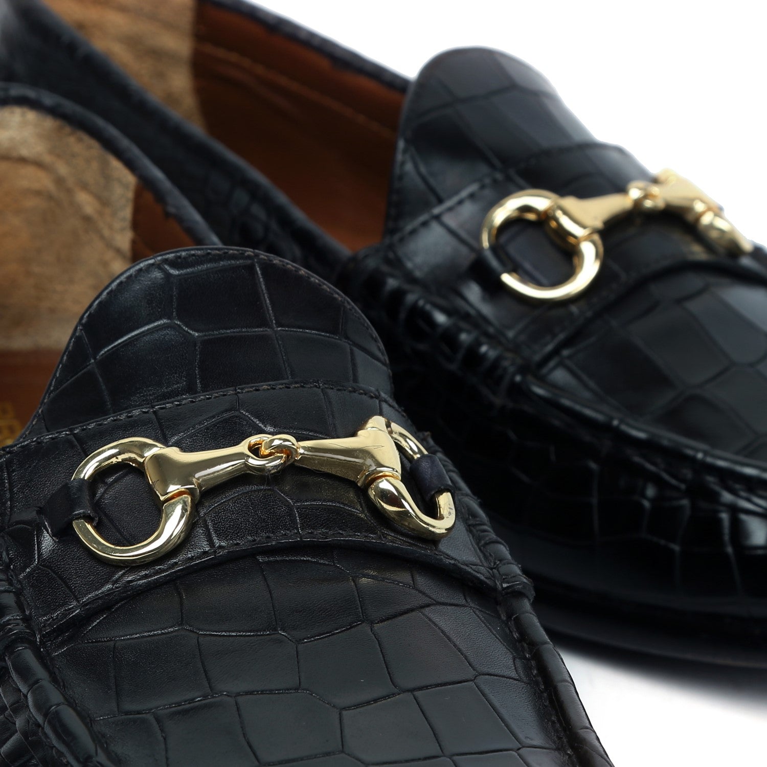 Men's Black Loafer in Croco Textured with Horse-bit Buckle