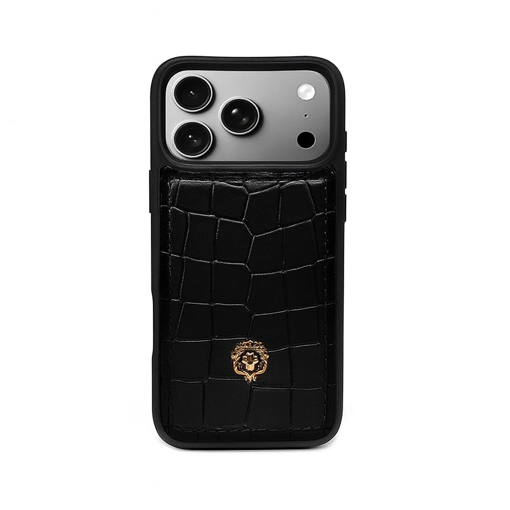 Black Croco Textured Leather iPhone 17 Pro/Pro Max Cover with Black Frame