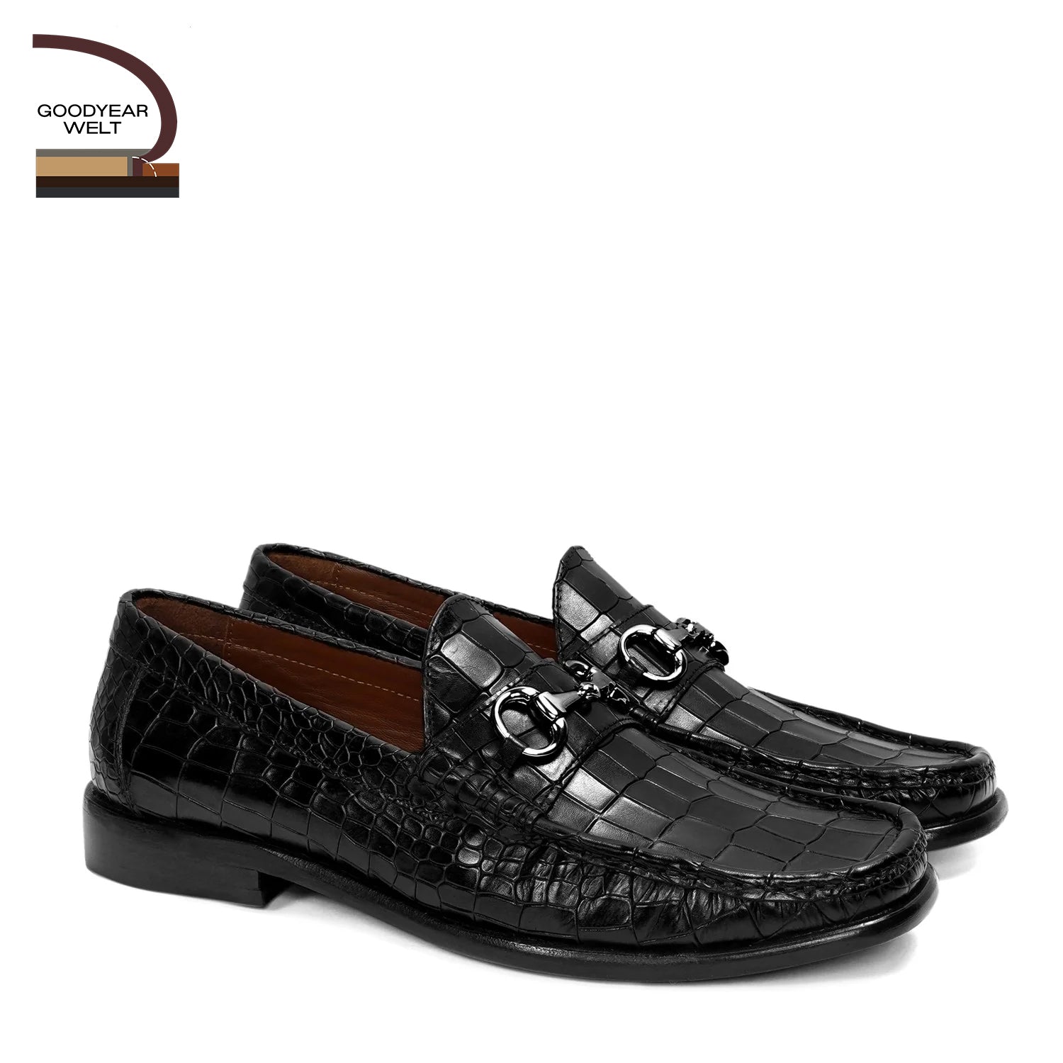 Black Croco Textured Leather Goodyear Welted Sole Loafers