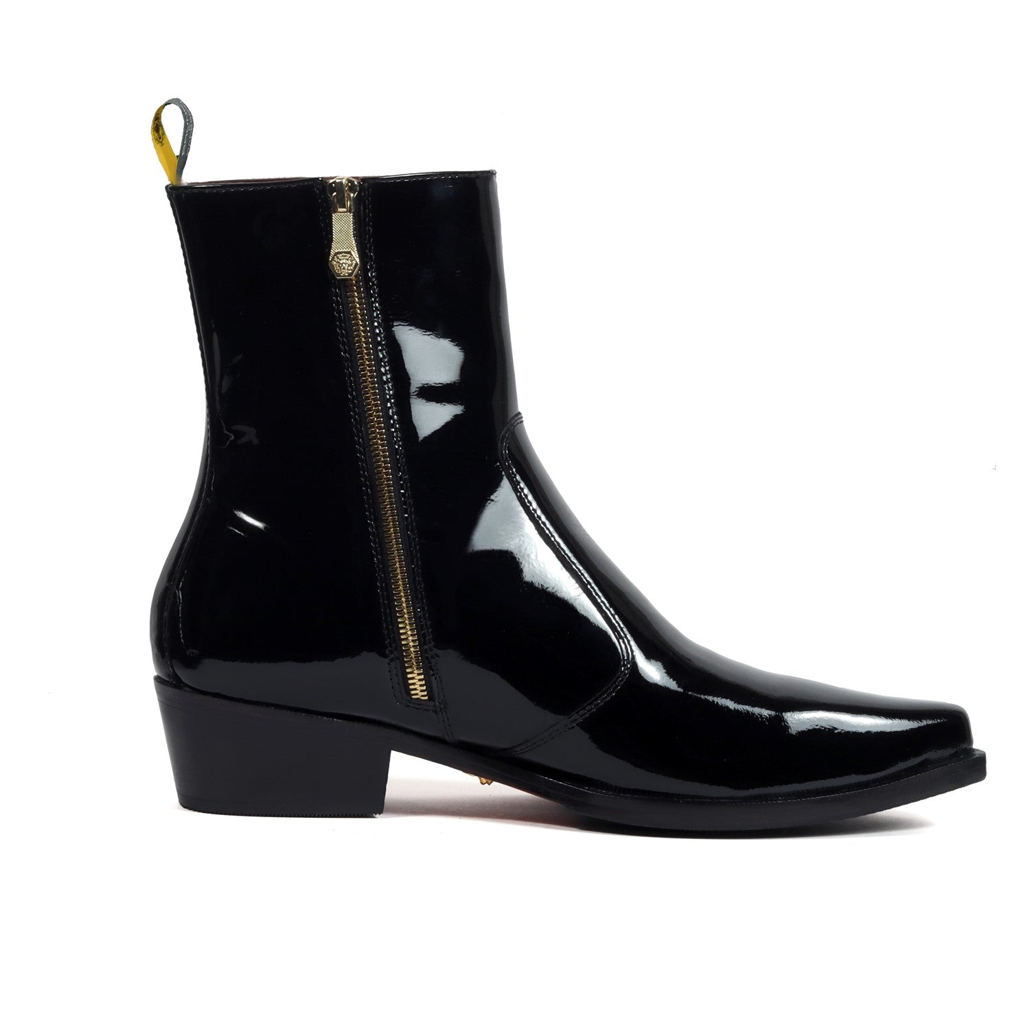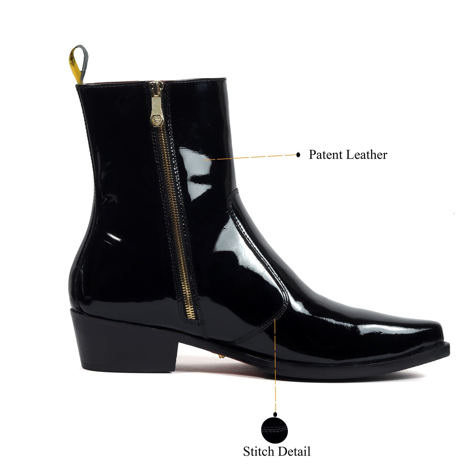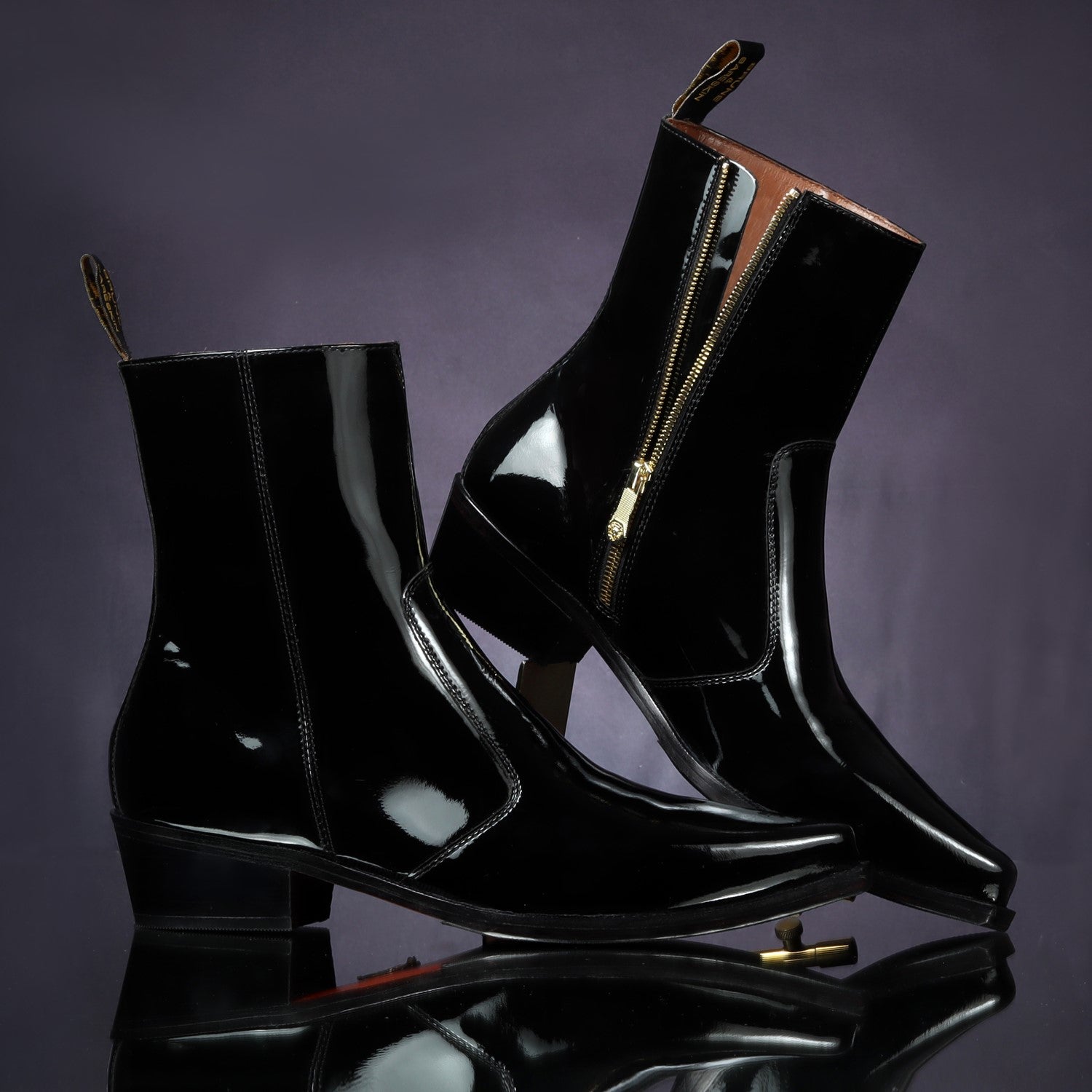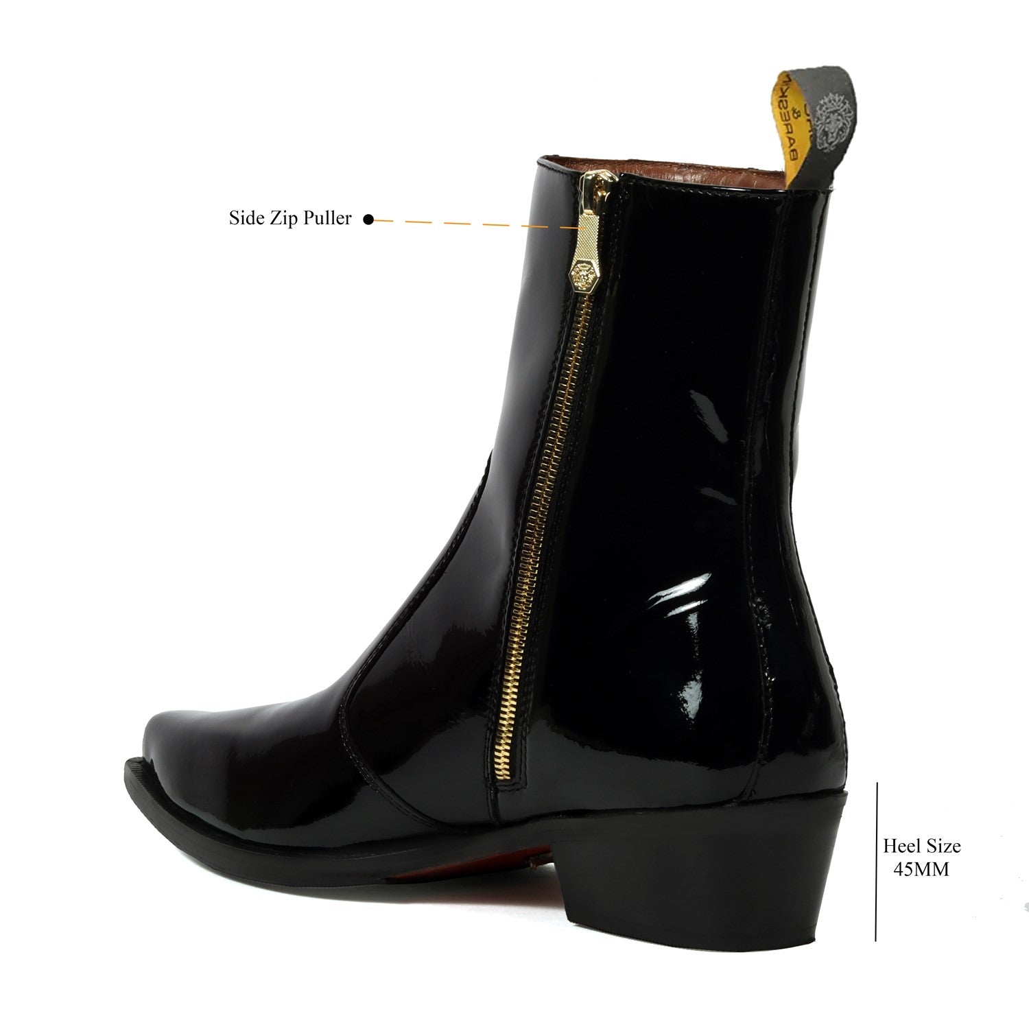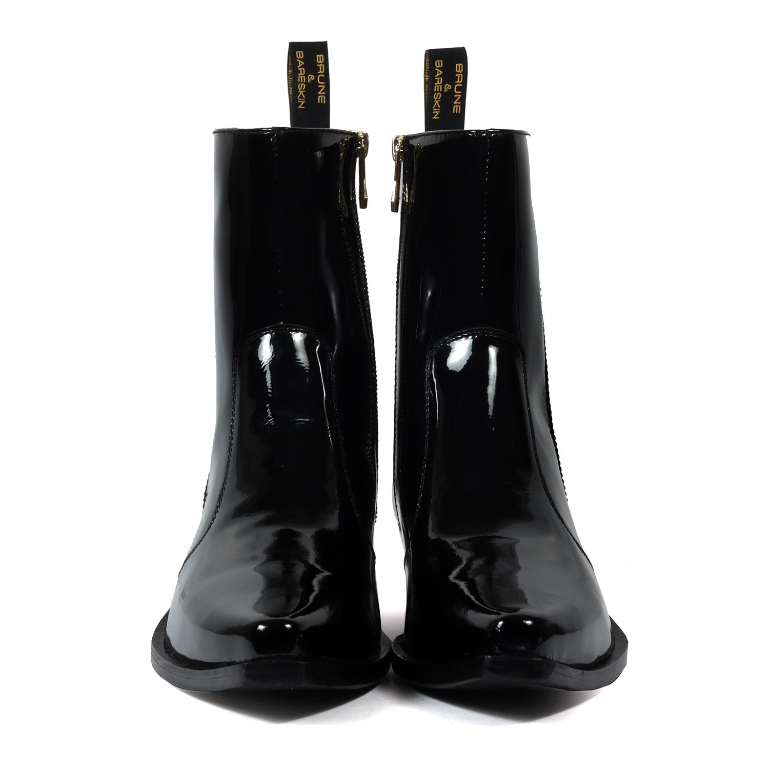 Black Cuban Heel Patent Leather Cowboy Boots By Brune & Bareskin