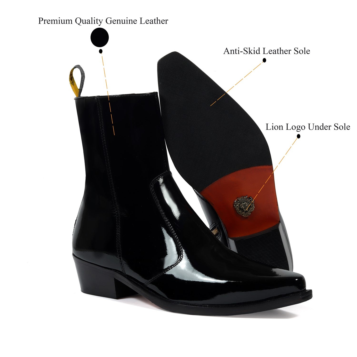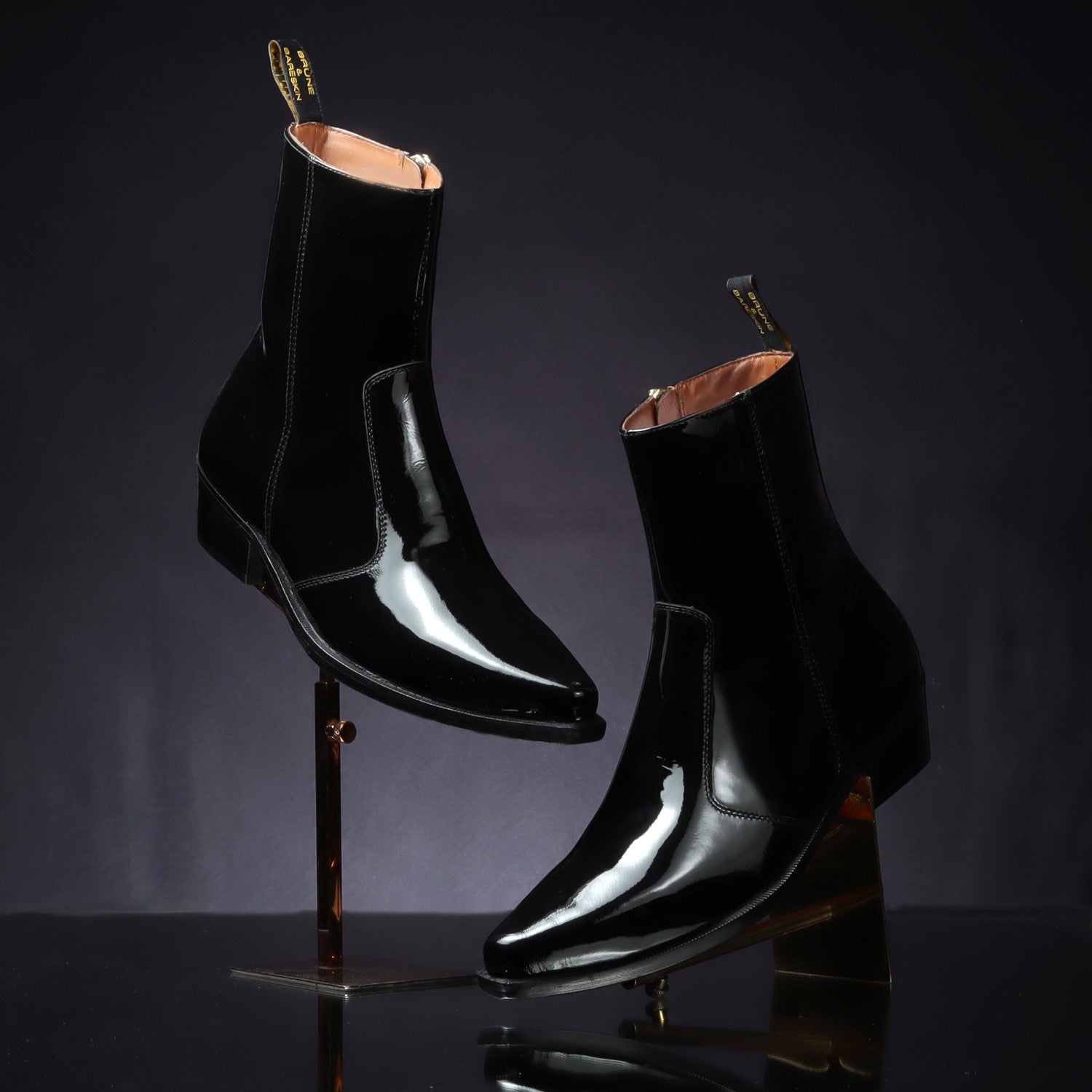 Ankle boot in leather are a dream come true for many a fashion-aware executives. We craft these high ankle black leather cowboy boots to give you an elite look. This shoe can be customized according to your liking. This Shoe is entirely handcrafted by our expertise.