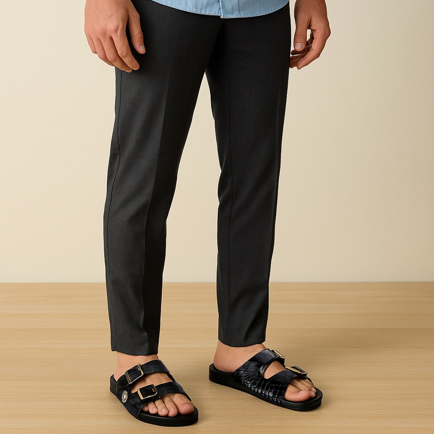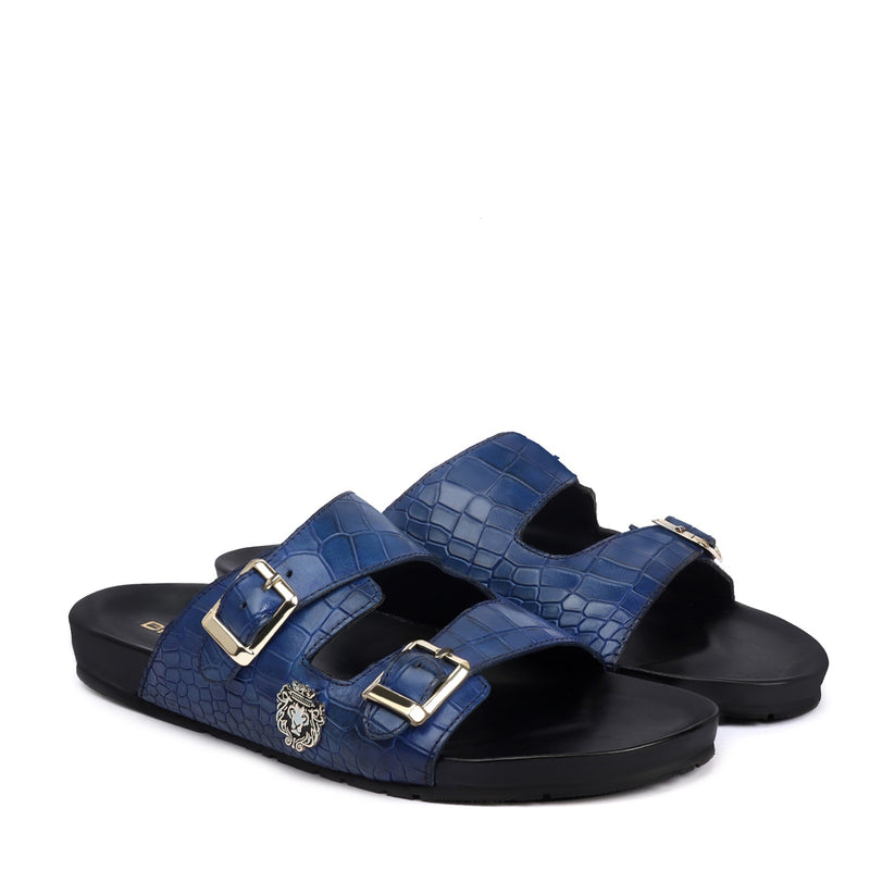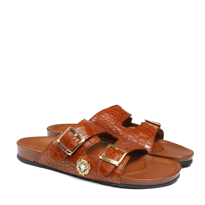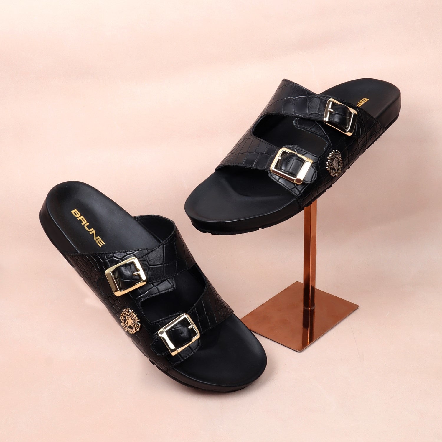 When it comes to Slippers, comfortably is the highest priority. These Cut Croco leather Slippers are the luxurious piece of beauty from Brune & Bareskin. These Double Monk Leather slippers are a must-have of the season. Double Monk Deep cut Croco Adjustable buckle strap spells freedom and the casual lifestyle. The gel injected memory foam base is designed to provide you comfort while walking. We use special layering techniques to keep the base cozy and retain its shape. Cut Croco Adjustable buckled strap endows the extra room for every foot. The wider straps Design with BRUNE & BARESKIN Lion Logo enhance the elegance further. Anti-Skid outer leather sole ensures the perfect walking grip. Carry these with Jeans, Shorts, Capri's, and other casual wear to be a style leader.