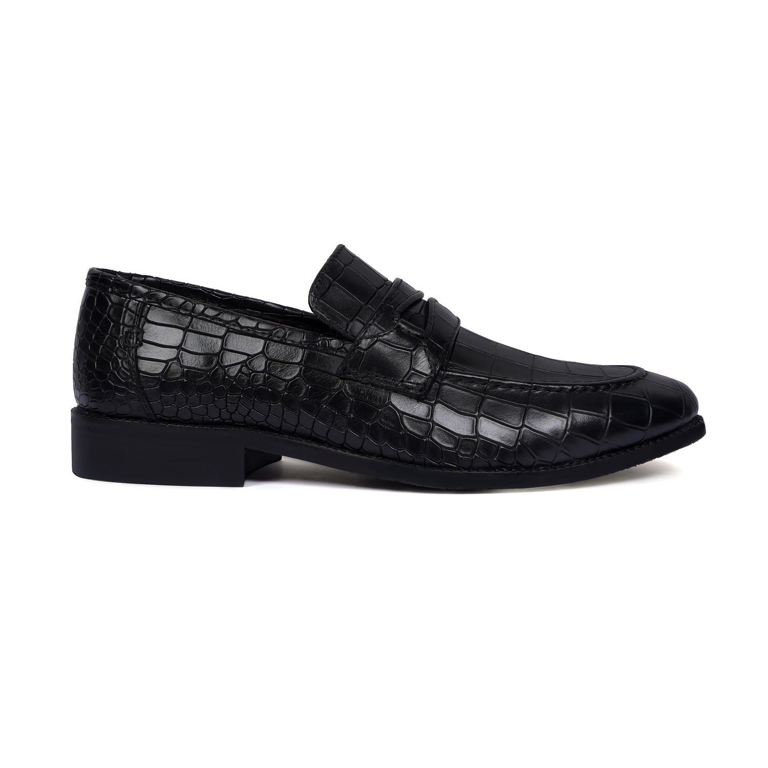 Black Penny Loafers with Cut Croco Leather