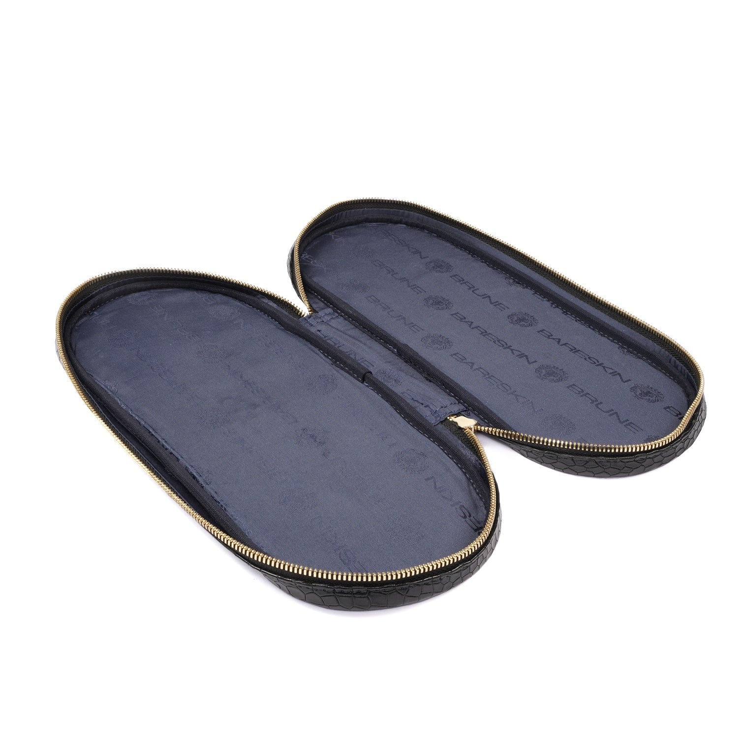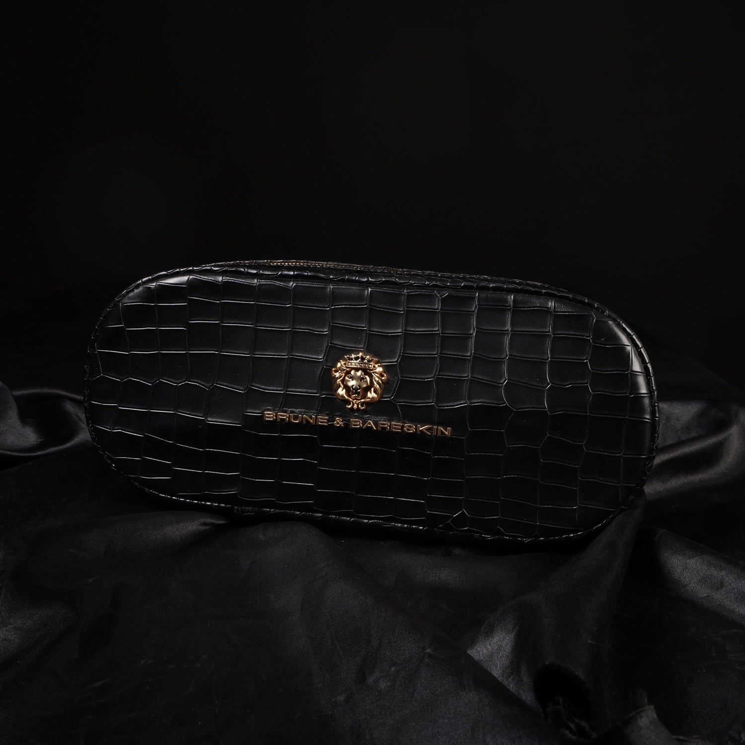 Step up your accessory game with our deep-cut croco leather slipper pouch, detailed with a striking 3D lion emblem. Designed for the modern traveler, it keeps your slippers secure while adding a touch of sophistication. Durable, lightweight, and handcrafted for a statement look that lasts.