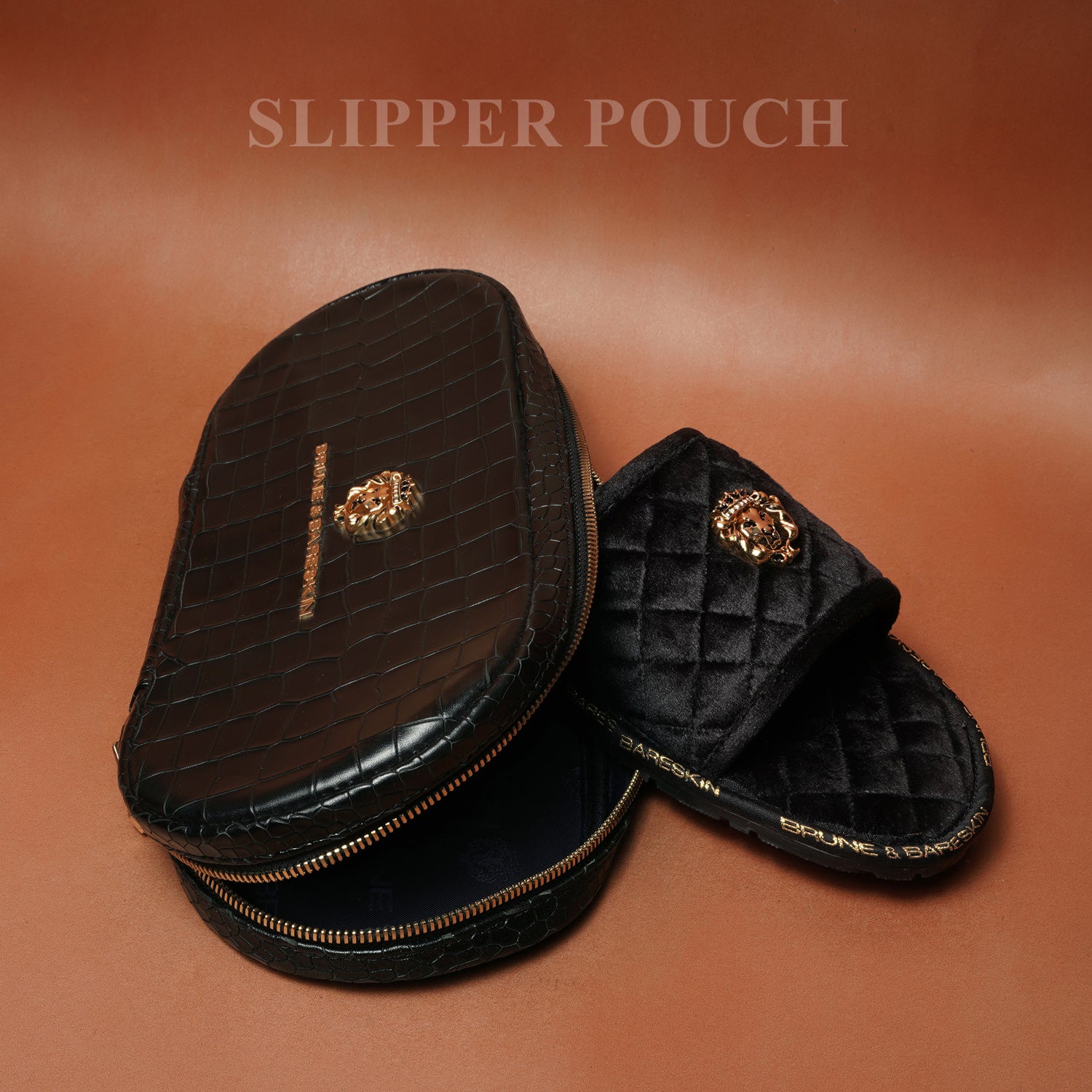 Black Deep Cut Croco Handcrafted 3D Lion Logo Slippers Pouch
