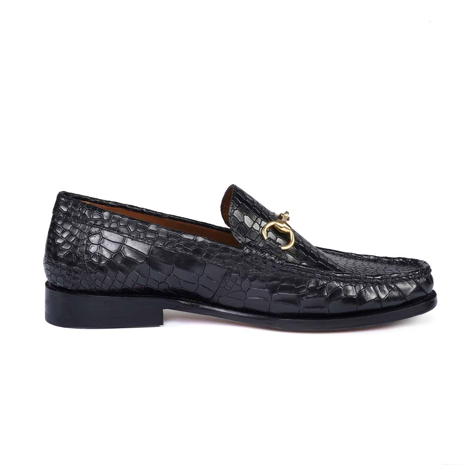 Black Deep Cut Croco Goodyear Welted Sole Leather Horsebit Loafer
