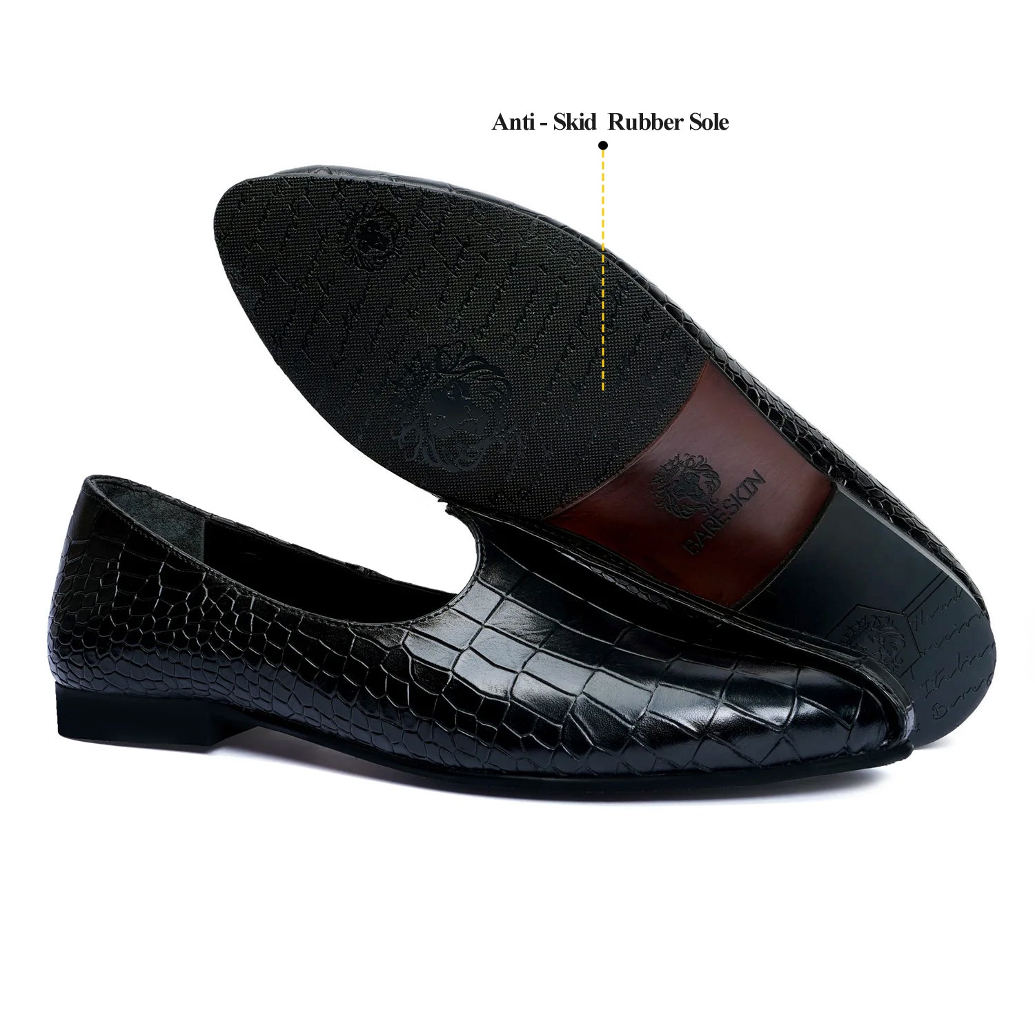 A pair of right branded men's footwear compliments you from tip to toe. Jalsa's are becoming trend for every fashion lover. It looks soooo.... elegant when you wear these men's Jalsa with ethnic wear or any casuals like trousers, jeans for an ideal look. This amazing pair of Jalsa Jutti from "BRUNE & BARESKIN" boasts your stylish appearance, while not leaving comfort behind. They are made from Deep Cut Croco Leather with comfortable foot-bed and smooth outsole.
