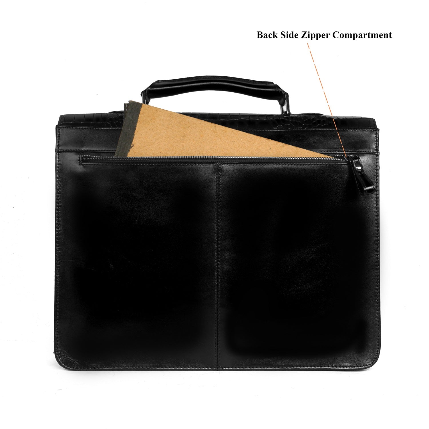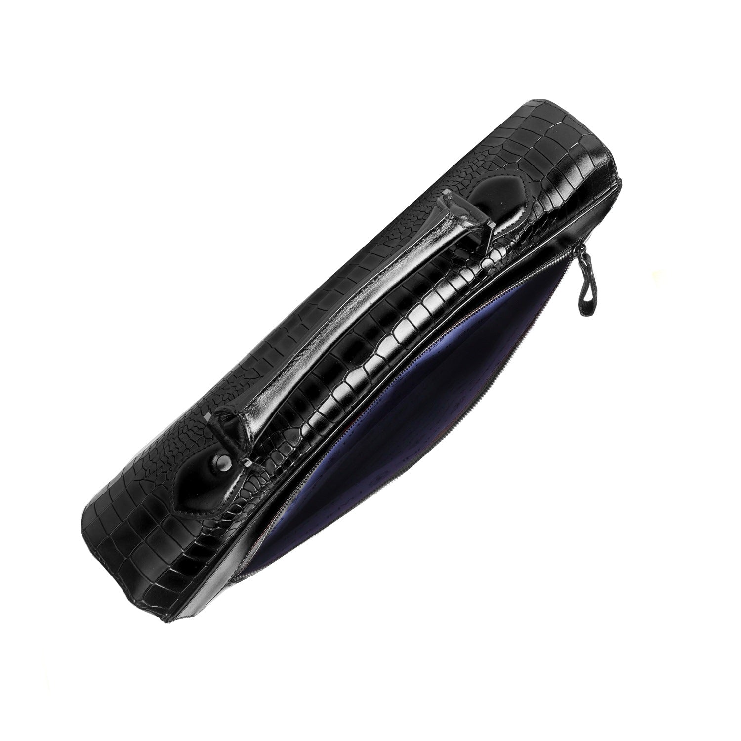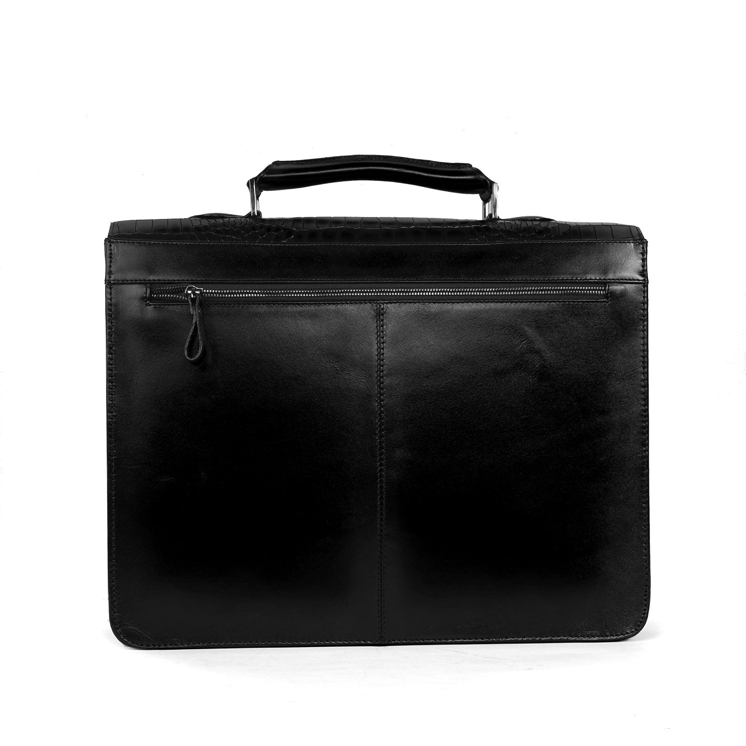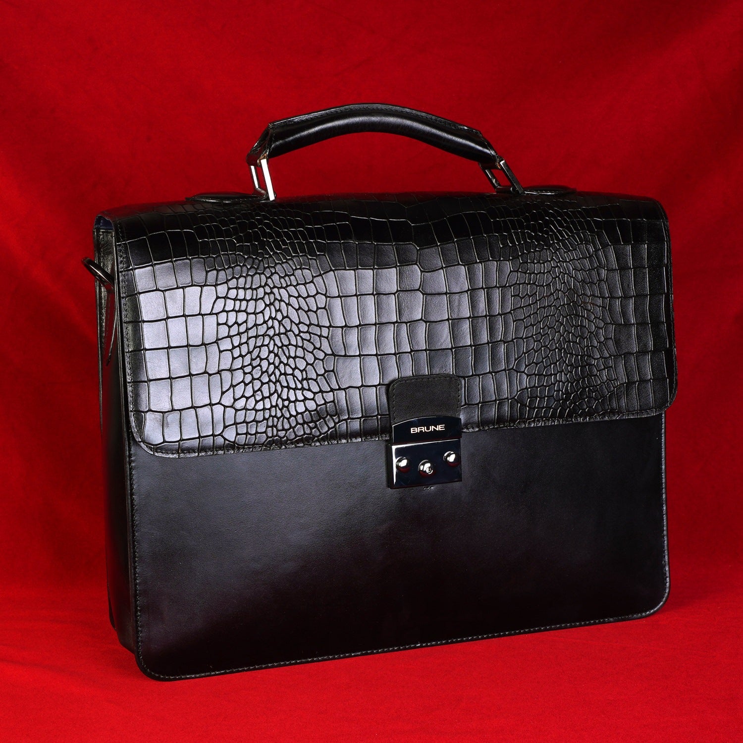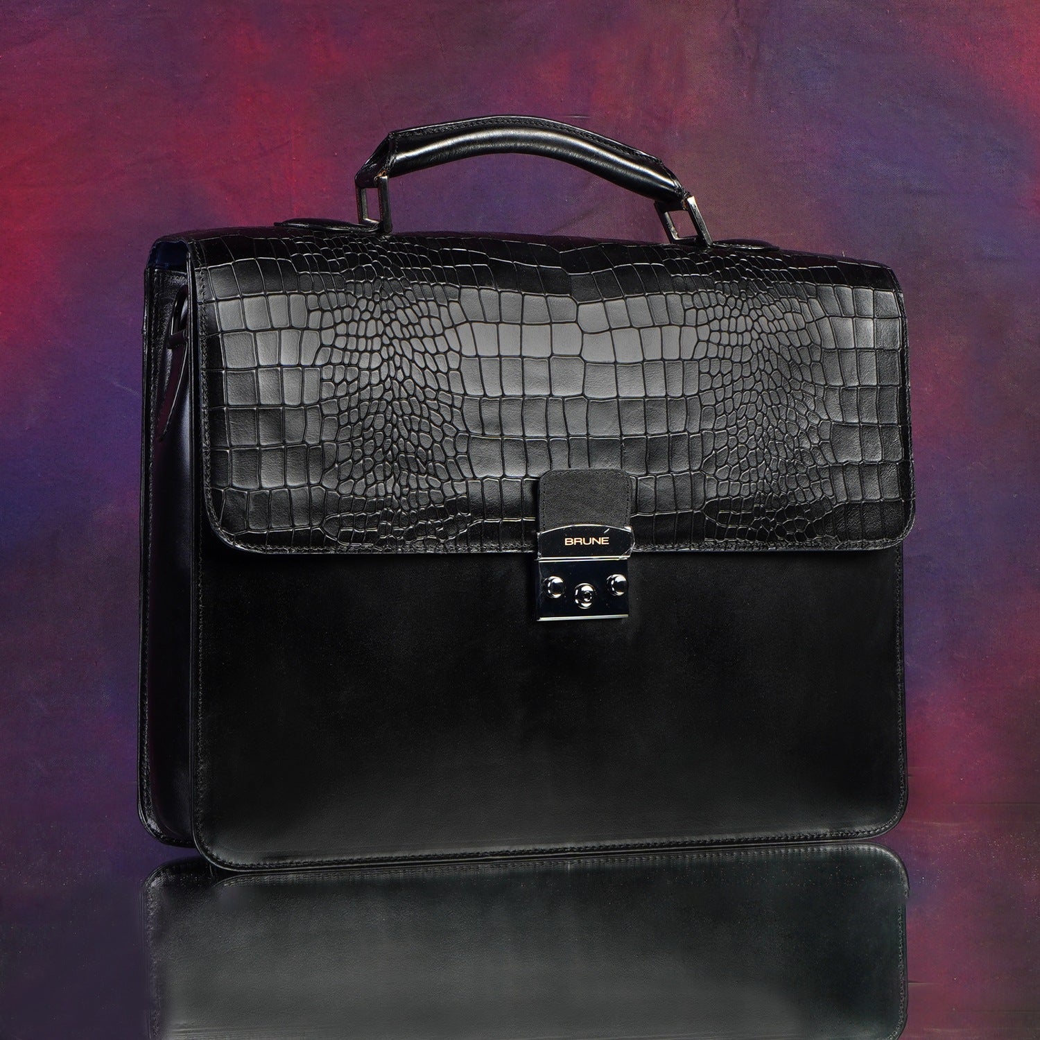 Black Deep Cut Croco Leather Laptop Briefcase