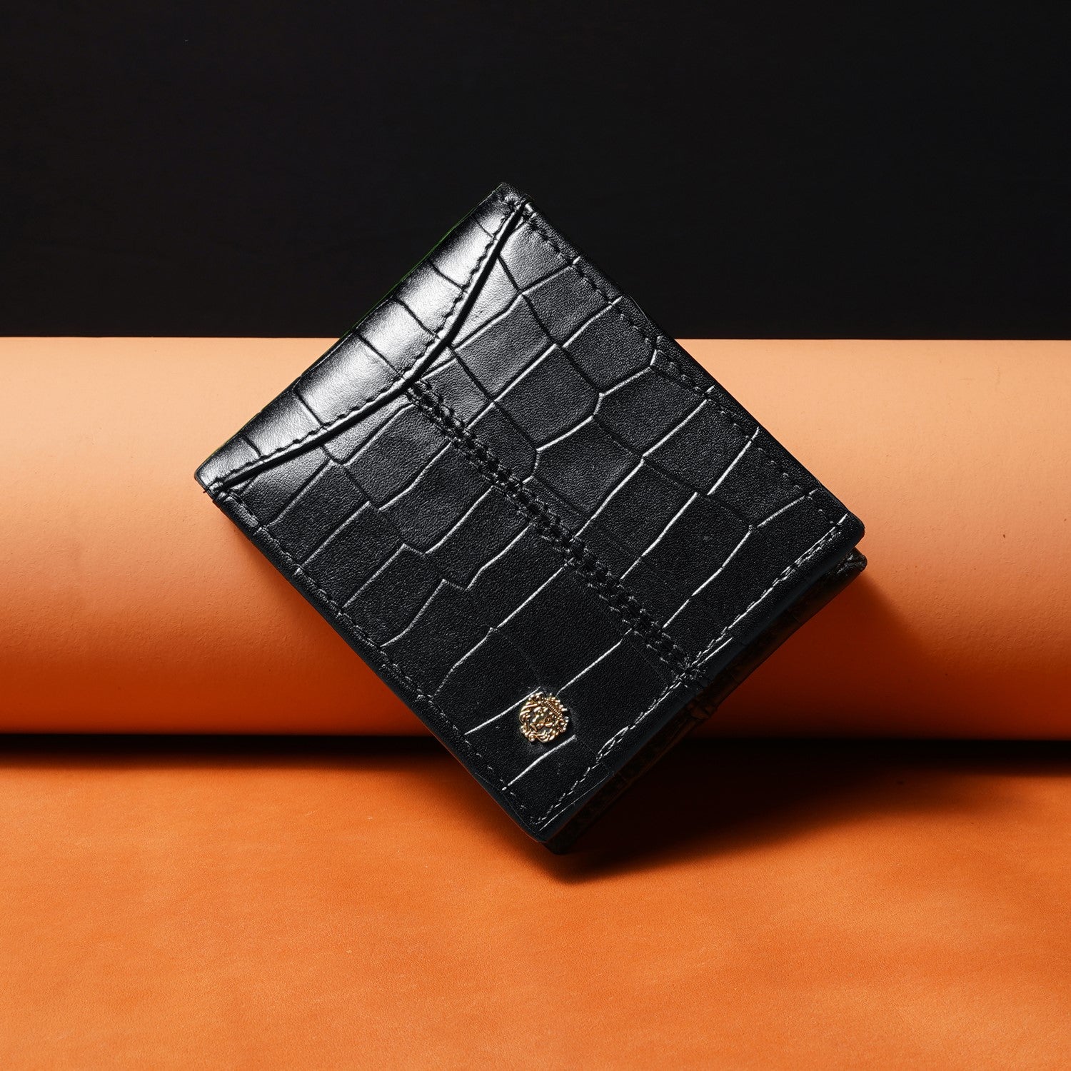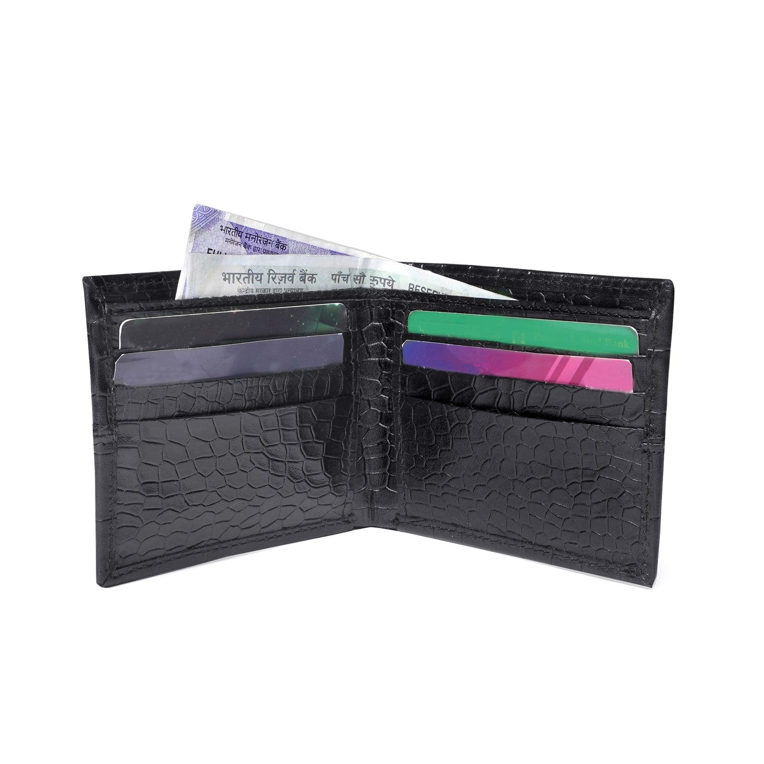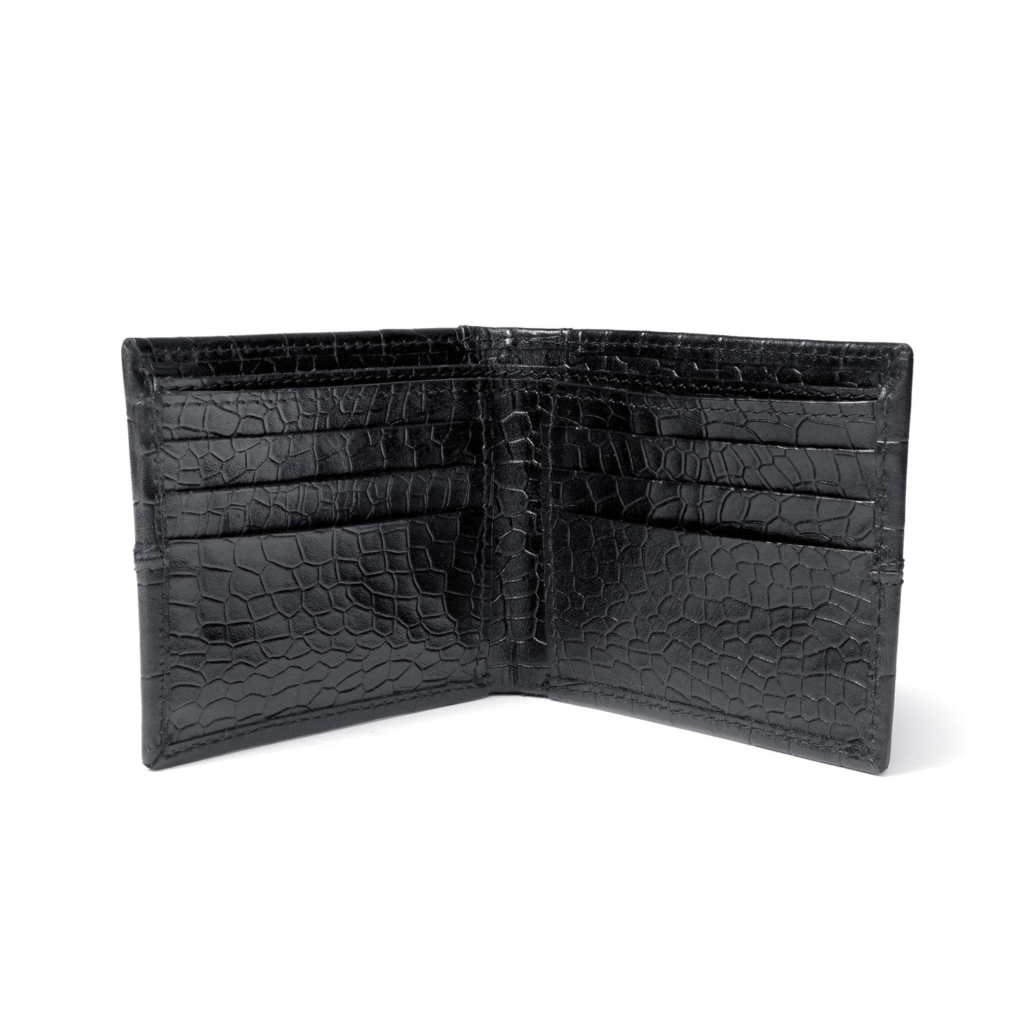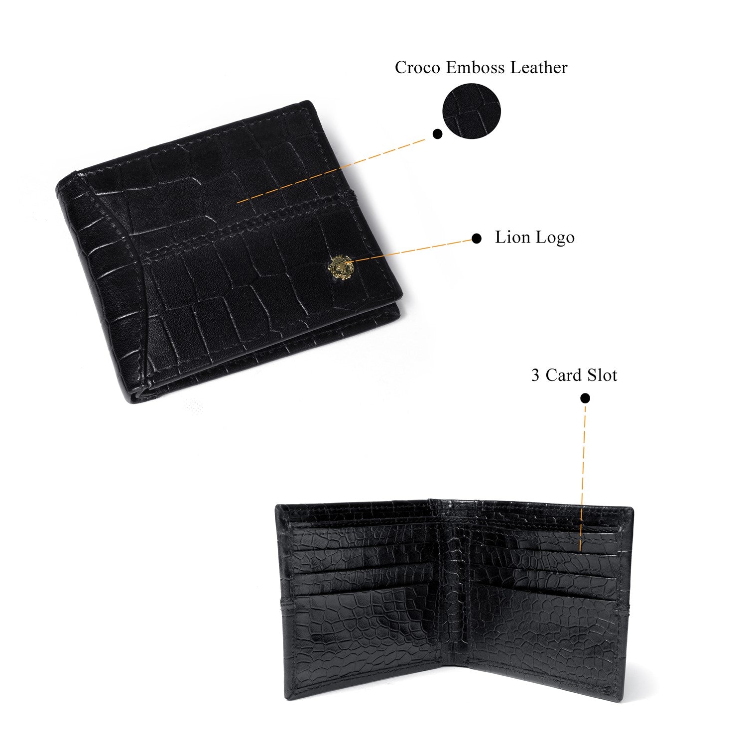 This bi-fold Black Croco print leather wallet looks very elegant. The BRUNE & BARESKIN signature metal Lion brand logo increases the style quotient. The bi-fold opening wallet features two main pockets along with a small security pocket on both sides. Smokey Grey leather with a polyester lining and features 3 card slots on Both sides, and two full-length pockets for notes. It has a total of 8 pockets, which makes it a perfect buy for today's generation. It provides the style and storage with artistic Patina regime leather color shades.