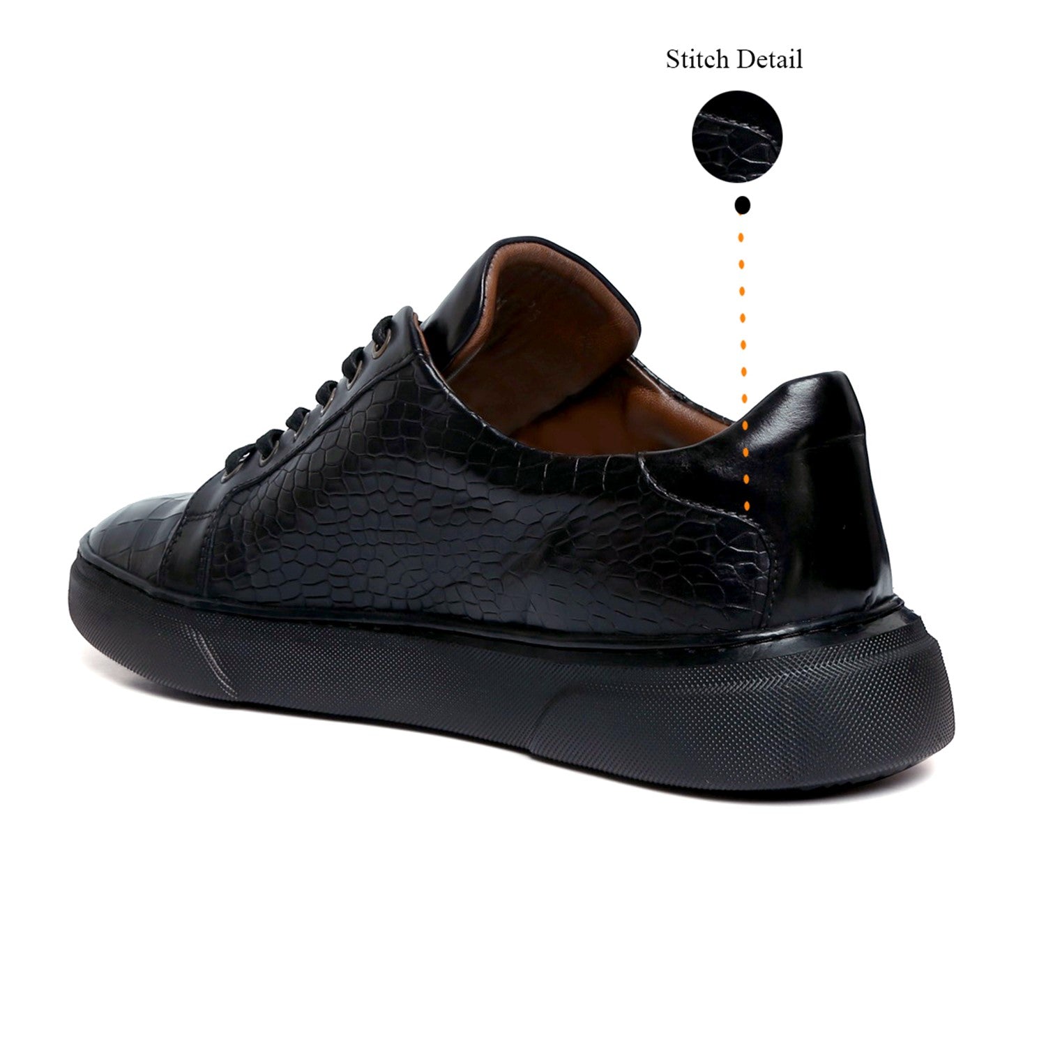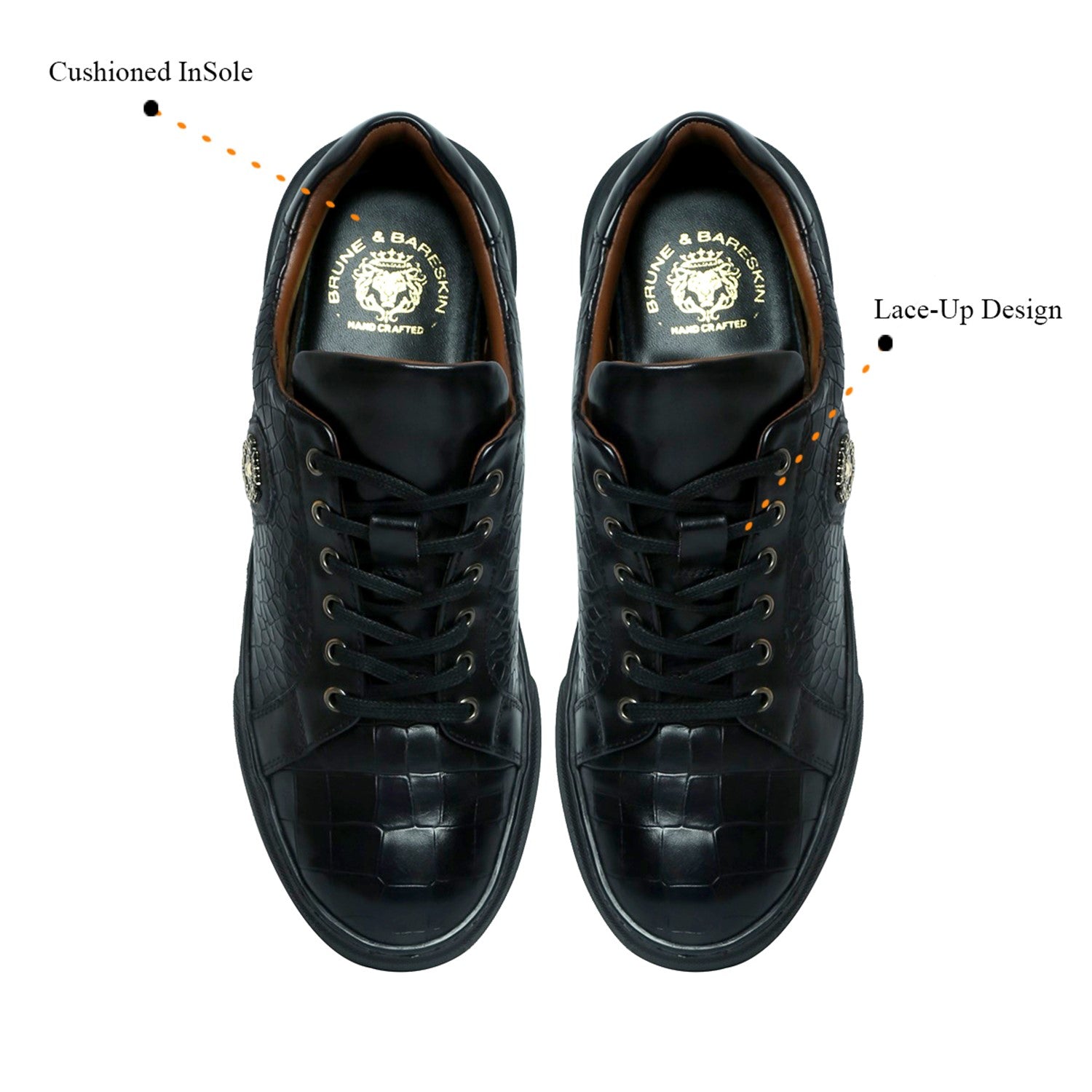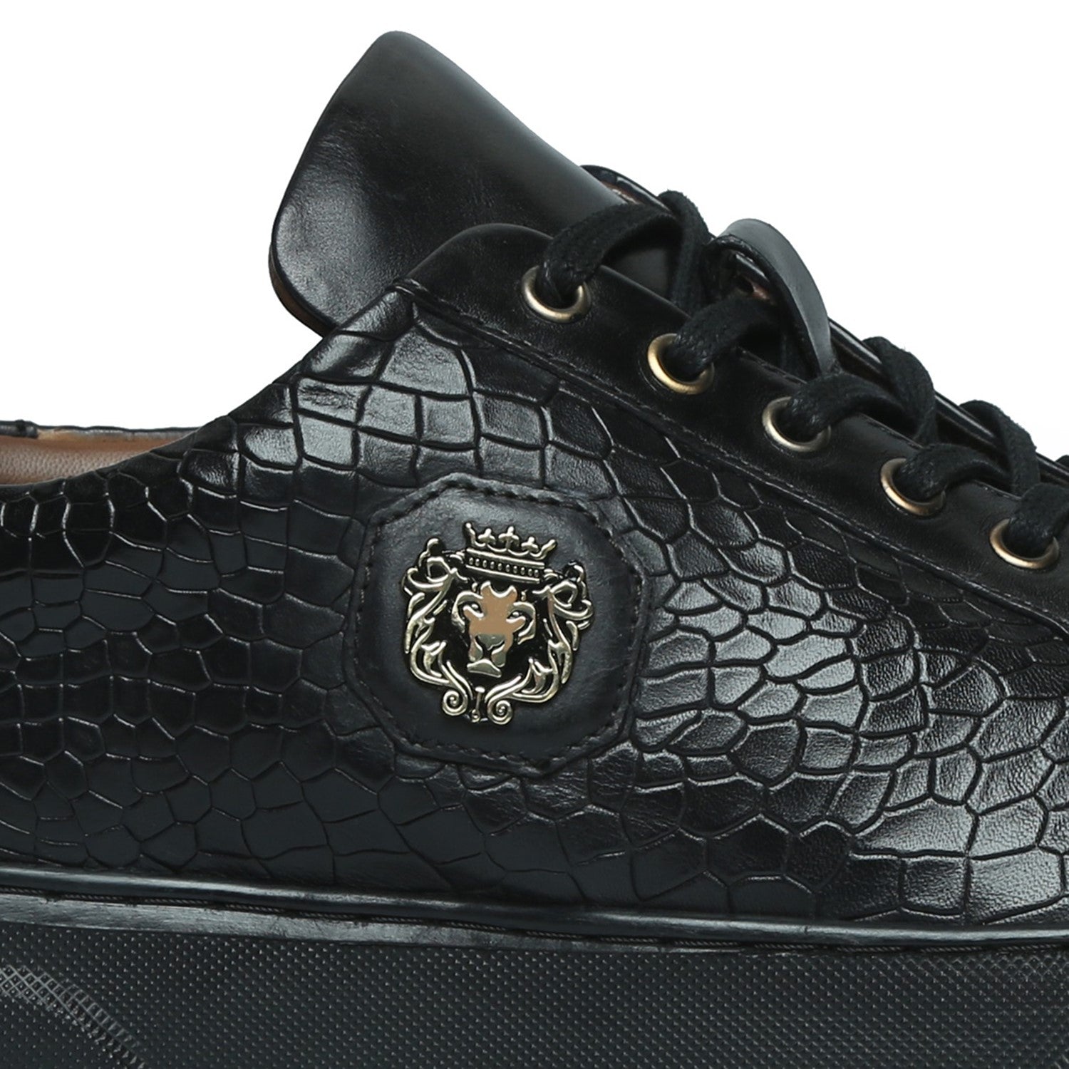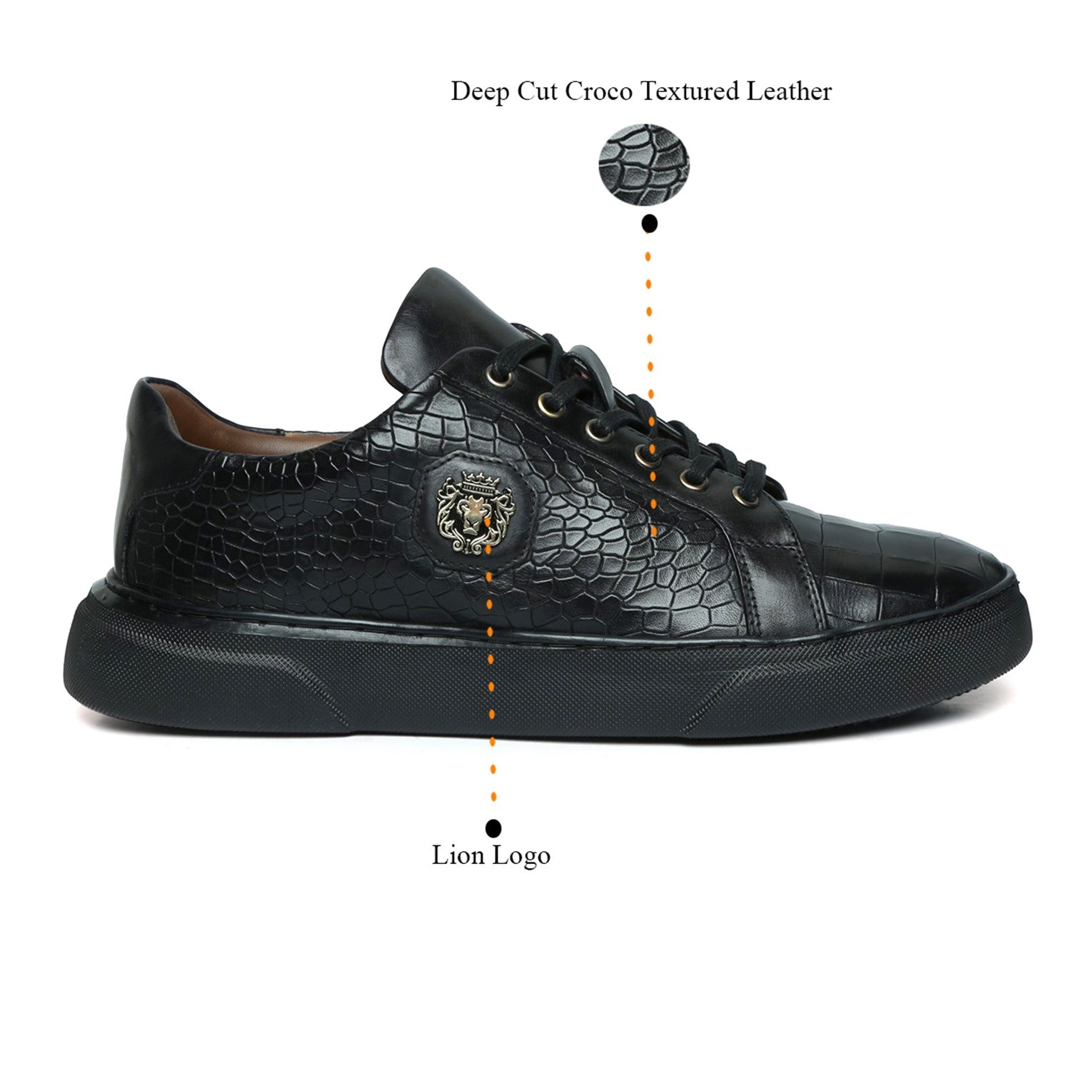 Black Deep Cut Croco Leather Sneakers with Metal Lion logo on Quarter