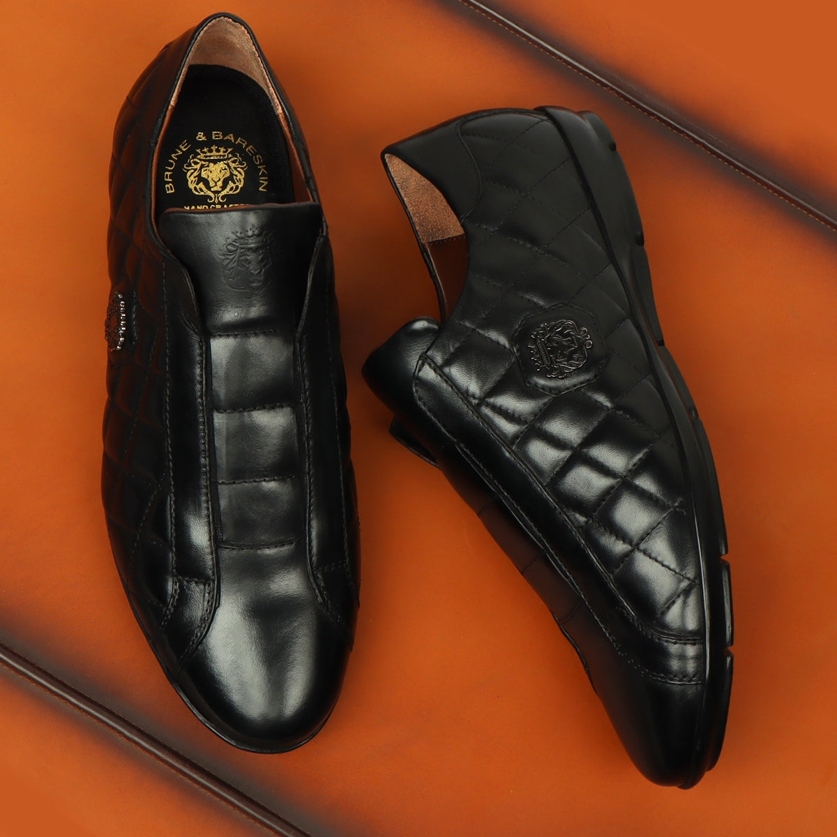 A shoe that soothes your eye at one glance is definitely the perfect pair of shoes to buy. The diamond-stitched cushioned padded style gives it more comfortable to wear as it looks. The metal "BRUNE & BARESKIN" Lion logo enhances its elegance. The lightweight pattern Rubber Sole provided the all-day-long wearability & durability. Team these shoes with casual attires of your choice to look astonishing.
