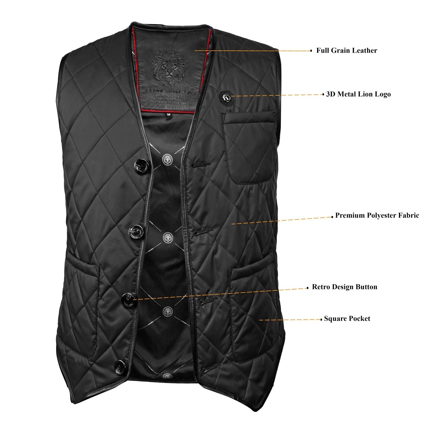 Premium leather trims enhance the structure, bringing a luxurious touch to the overall look while ensuring long-lasting durability. The design is further complemented with retro-inspired buttons, adding a nostalgic, classic charm that sets this vest apart from ordinary puffers.