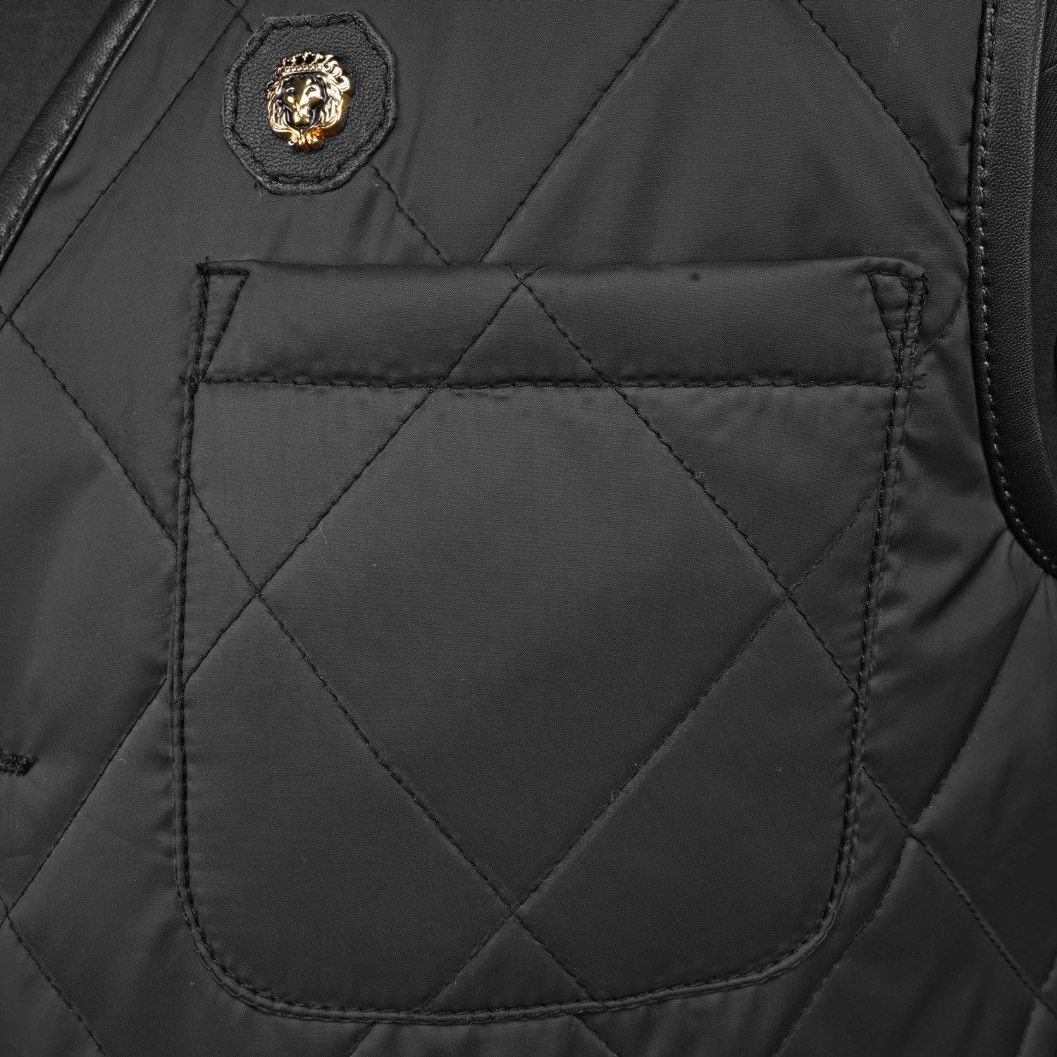 V- Neck Black Diamond-Stitched Square Pocket Puffer Vest