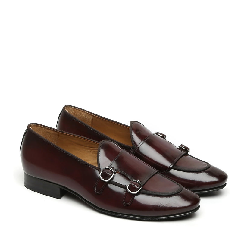 Black Double Monk Strap Deep Cut Leather Slip-On Leather By Brune & Bareskin