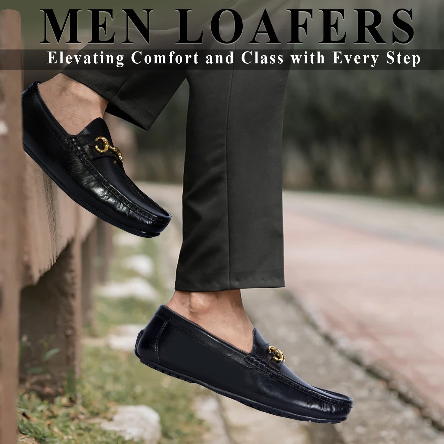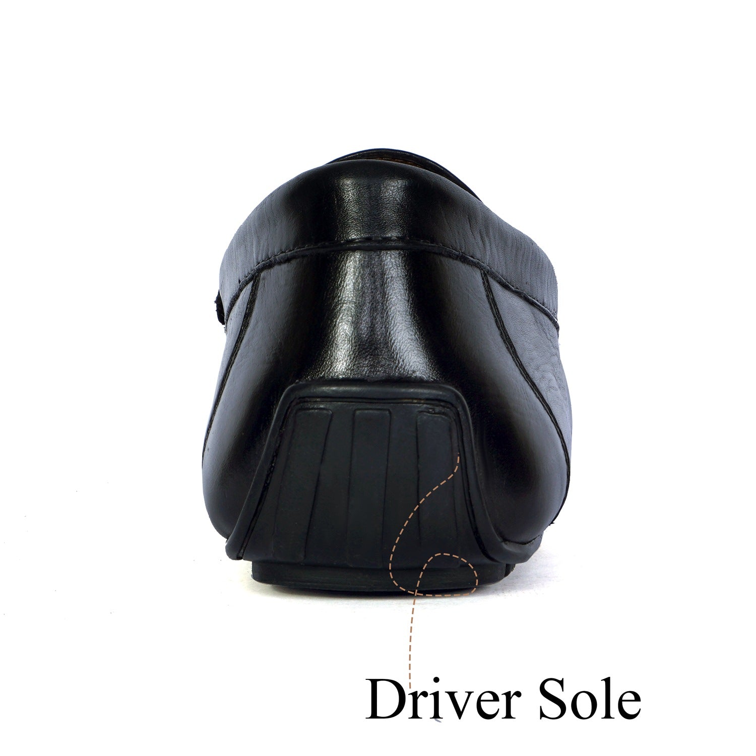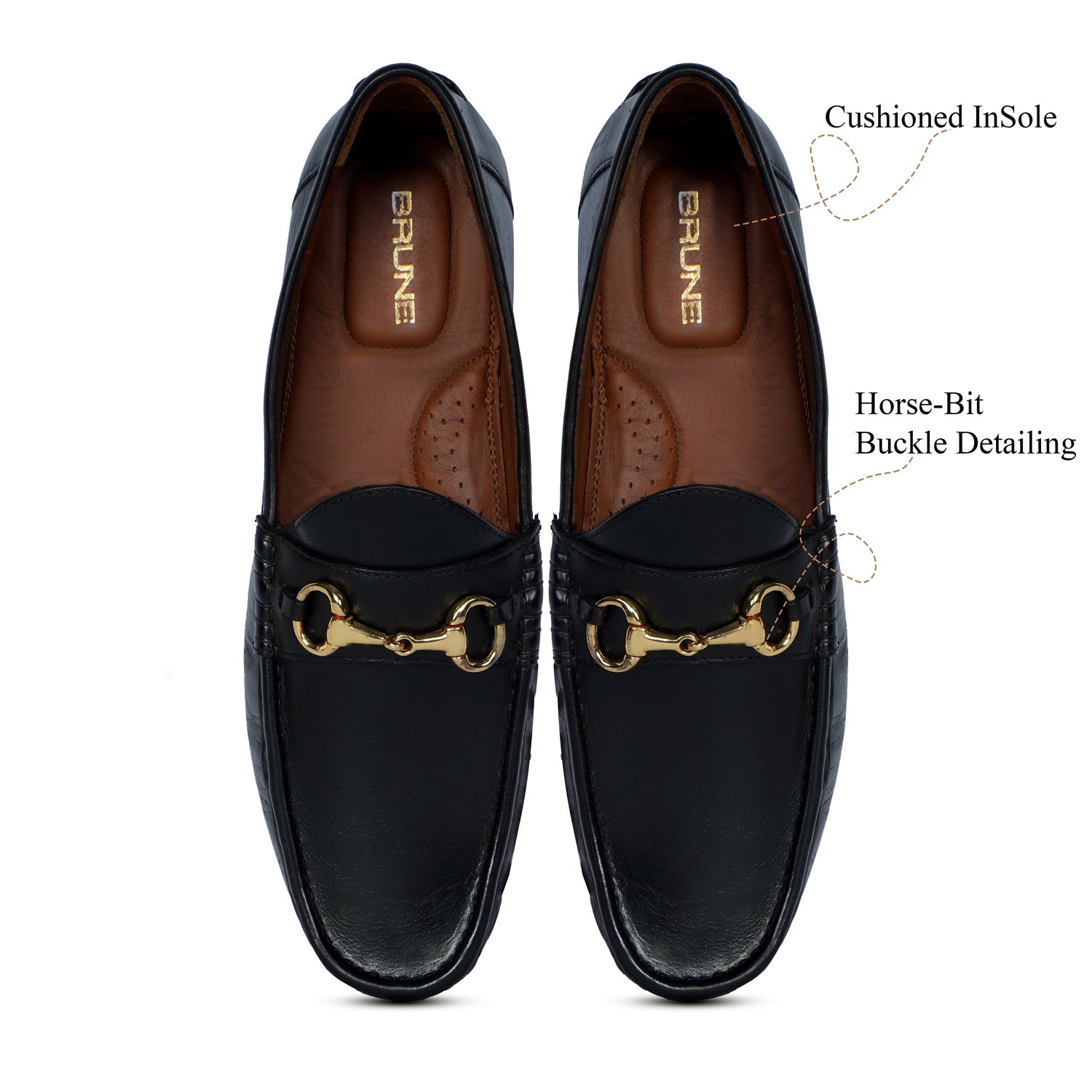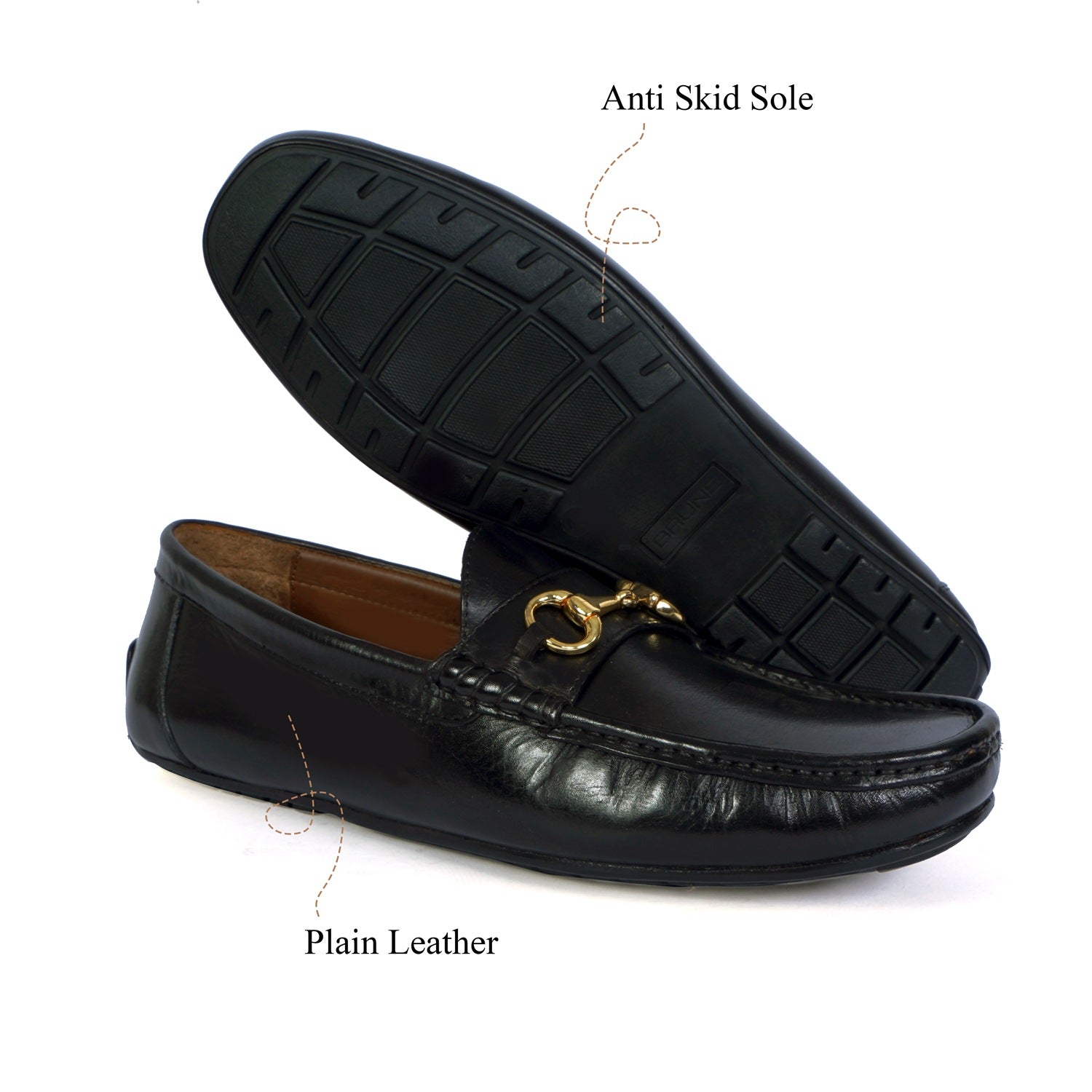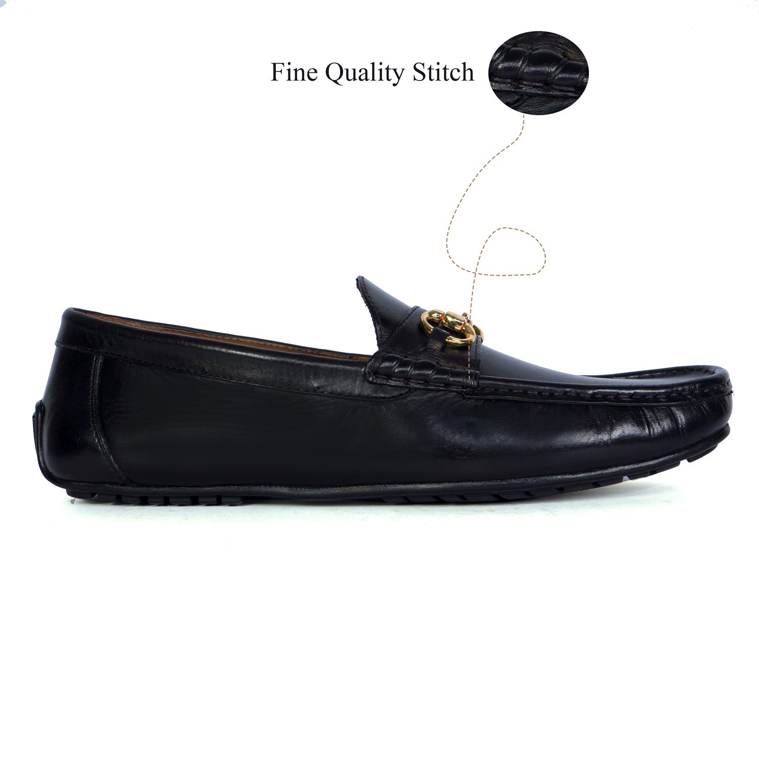 Moccasin Black Driver Loafer with Horse-Bit Buckle Detailing