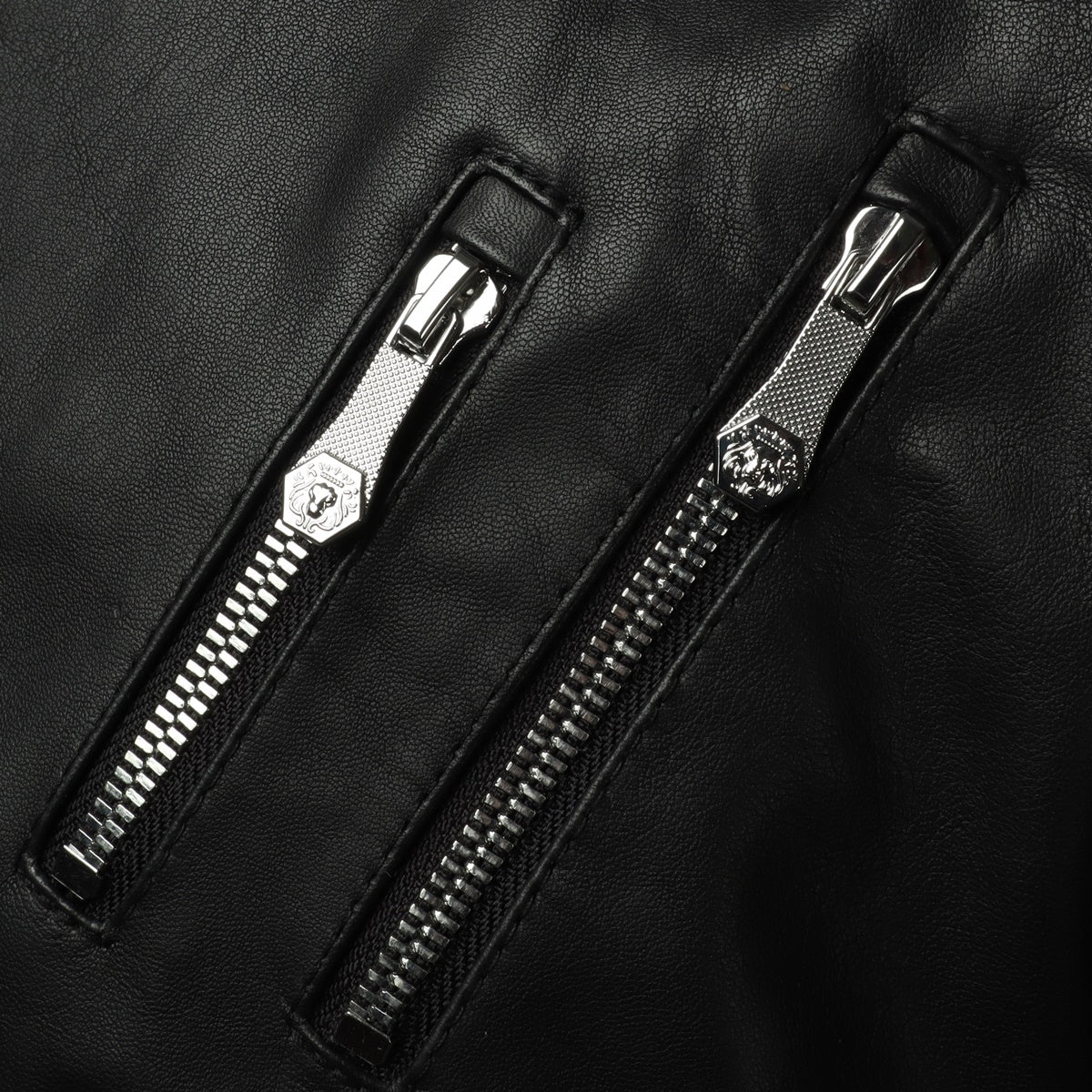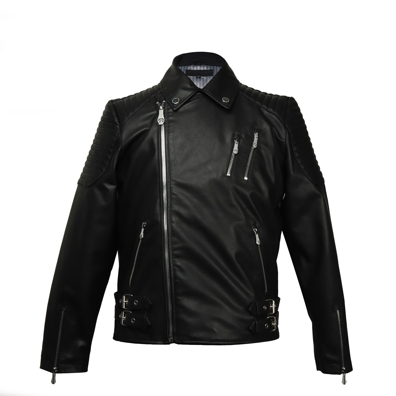 Black Dual Buckle stud with slanted zip leather jacket by Brune & Bareskin