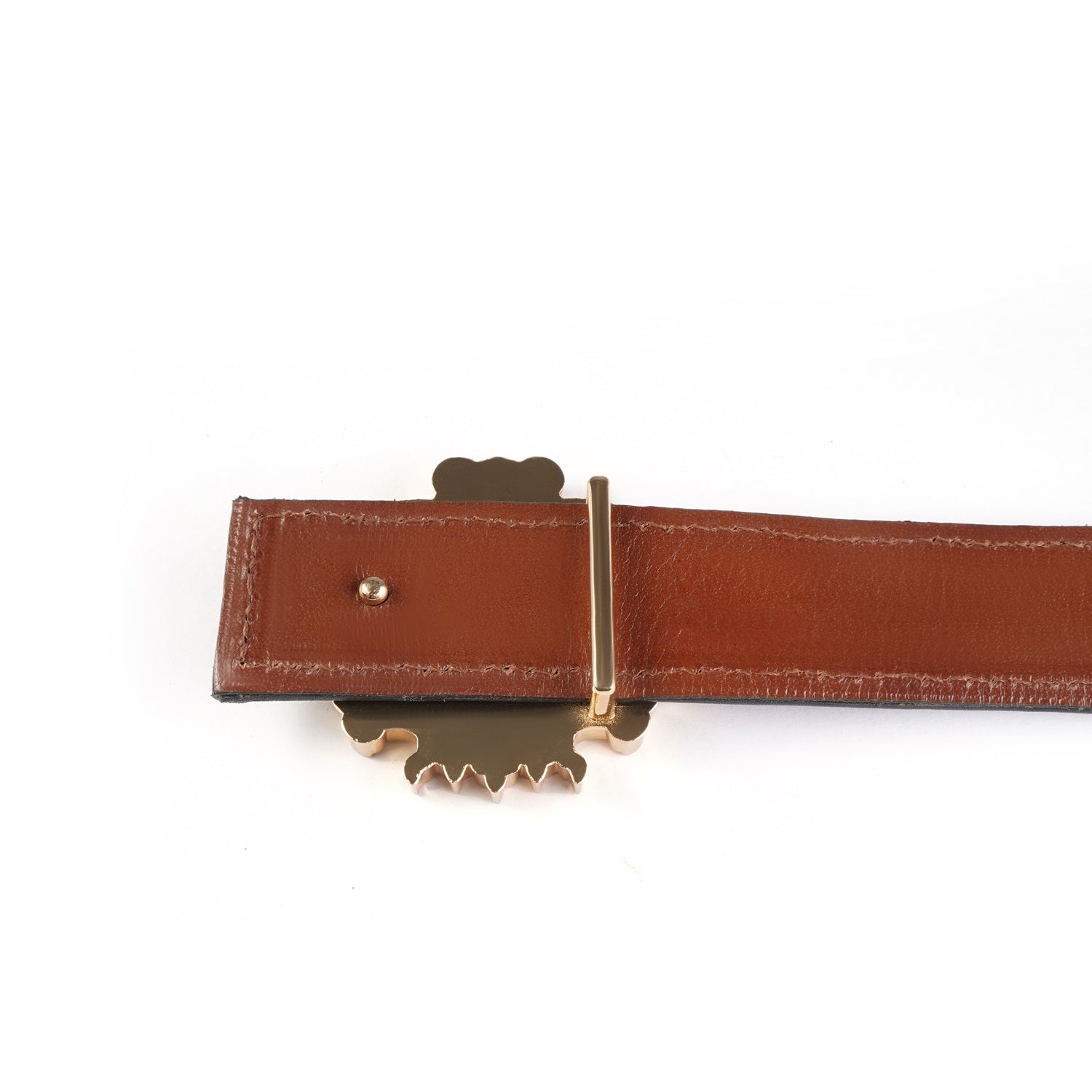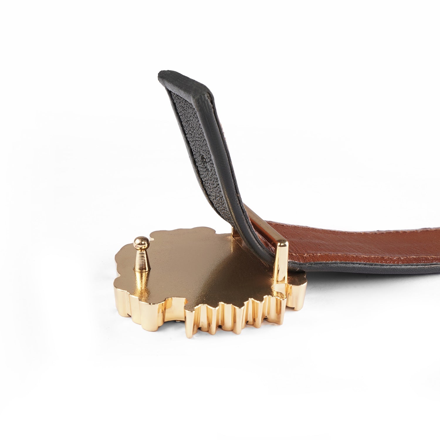 The centerpiece is a bold gold-finished buckle, crowned with a lion logo. Every detail is designed to exude sophistication, making this belt more than just a functional piece—it’s an icon of luxury style.