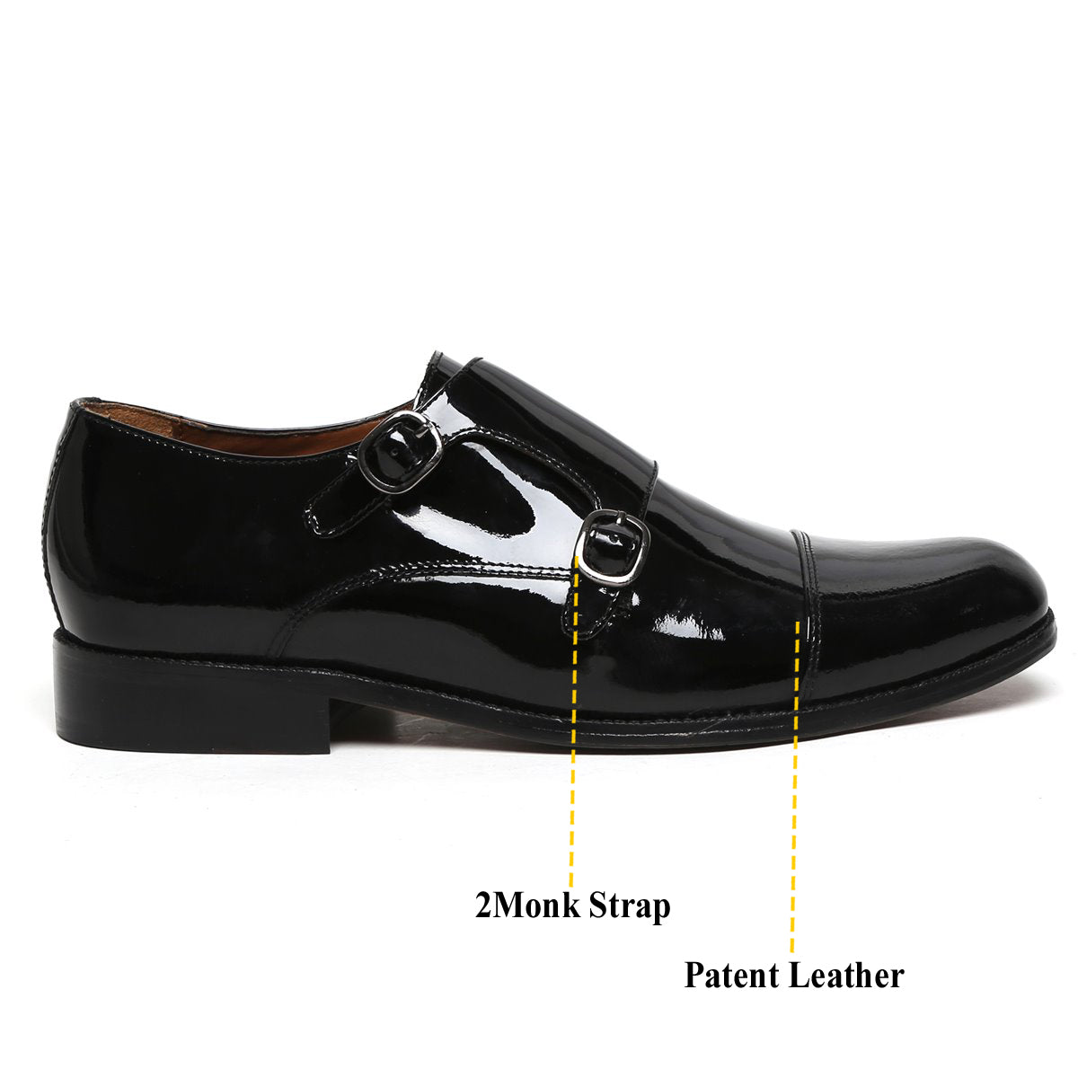 Patent Black Genuine Leather Cap Toe Double Monk Strap Formal Shoes By Brune & Bareskin