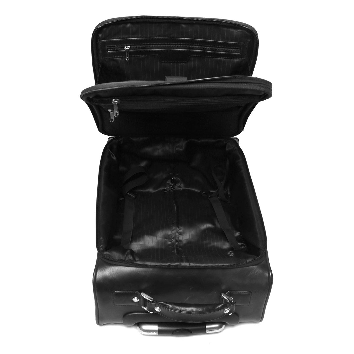 The perfect travel companion for getting off on a city break, BRUNE'S roll-along Cabin Case is handmade from the finest quality leather and luxuriously lined with Up to 15" Laptop Sleeve. The spacious interior which opens with a smooth zipper features pockets and compartments for laptop & iPad and pouches providing extra space for all your travel essentials, whilst the exterior boasts a handy slip in pocket perfect for those last minute airport purchases. The foldaway telescopic handle is tucked away in a neat compartment and the integral quad wheels are discreetly placed at the bottom, which stands the case in all its glory.