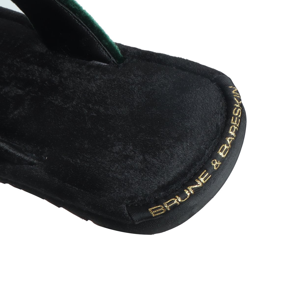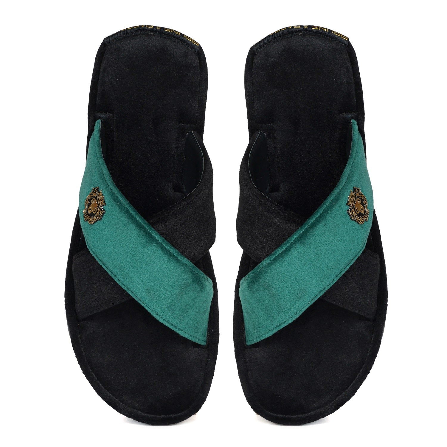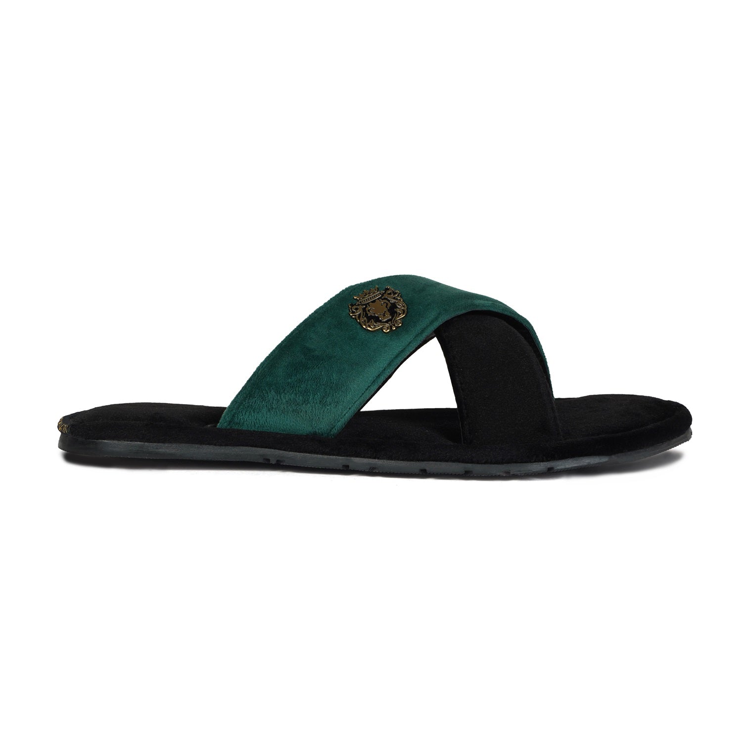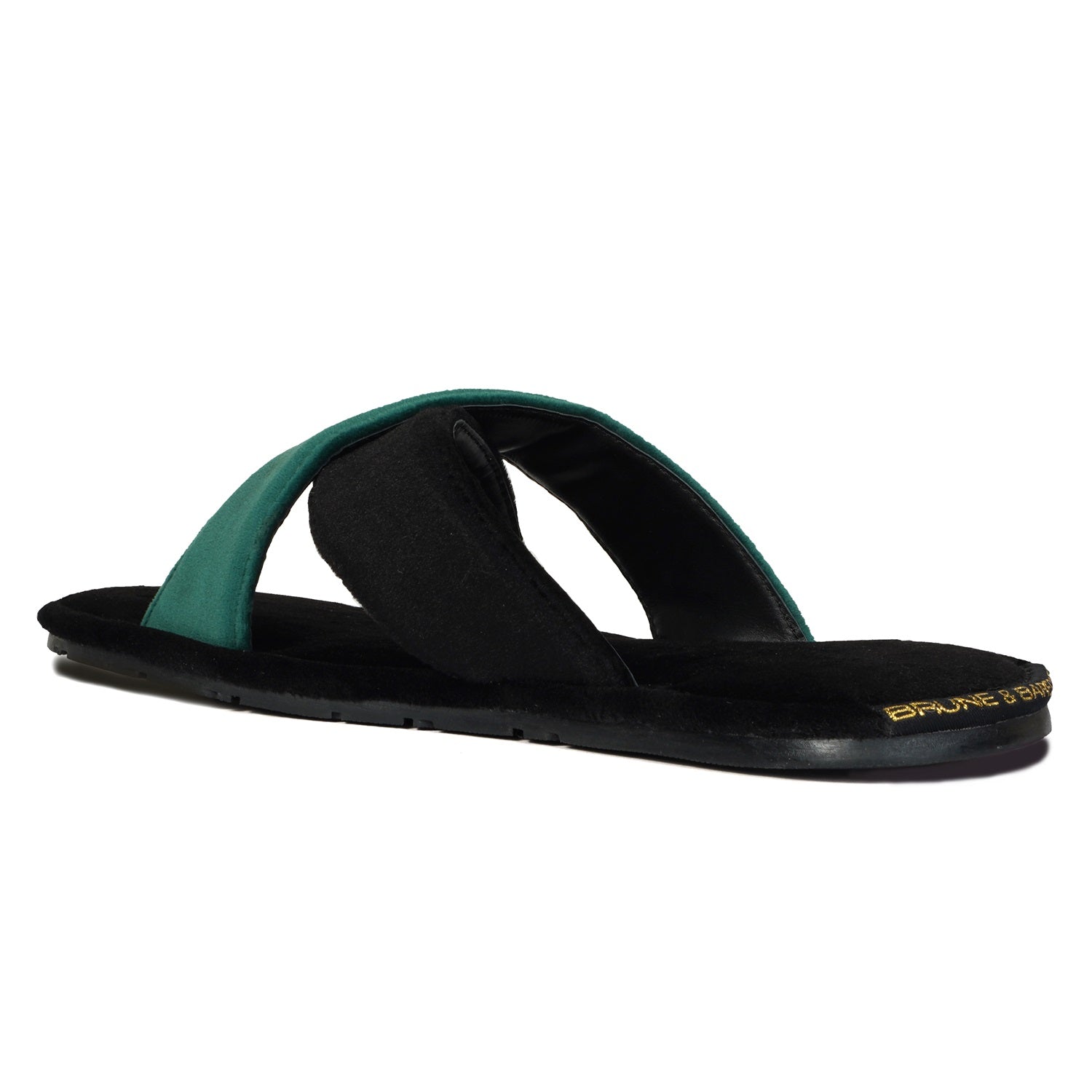 Black-Green Cross Straps Comfy Velvet Slide-in Slippers By Brune & Bareskin