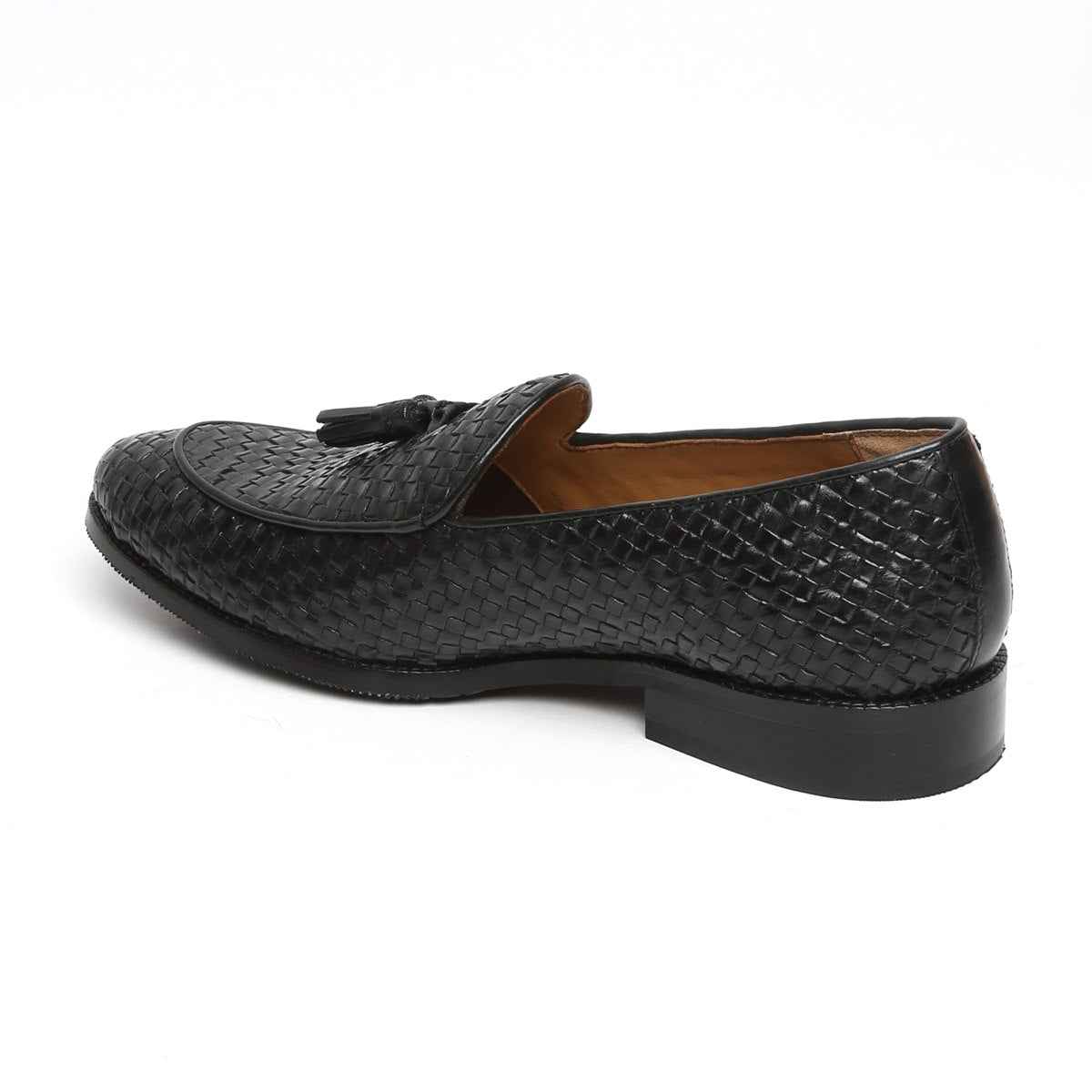 Apron Toe Tassel Slip-On Shoes Black Hand Weaved Leather