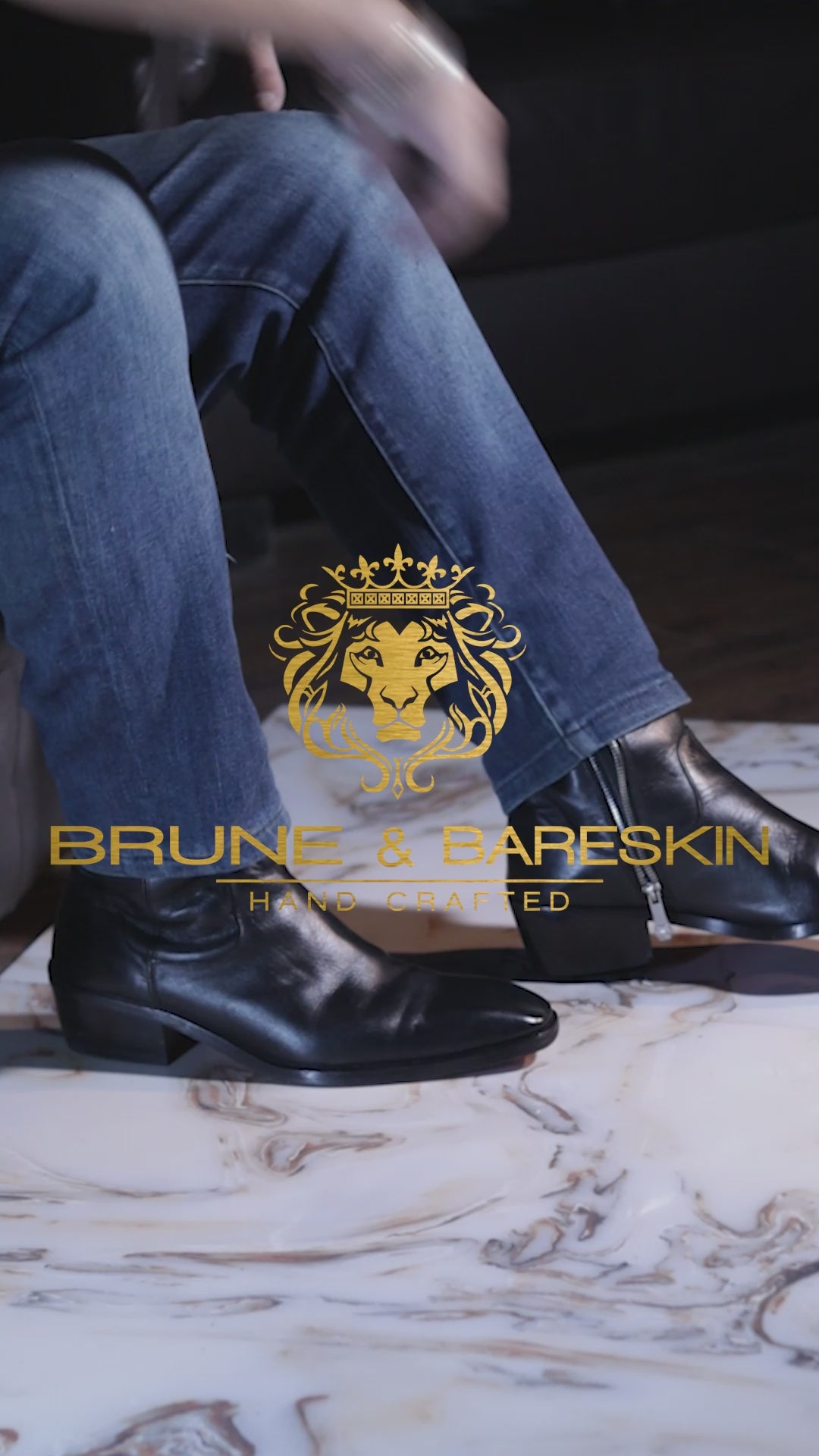 Hand Made Leather Boots Black High Ankle with Stylish Silver Chain by Brune & Bareskin