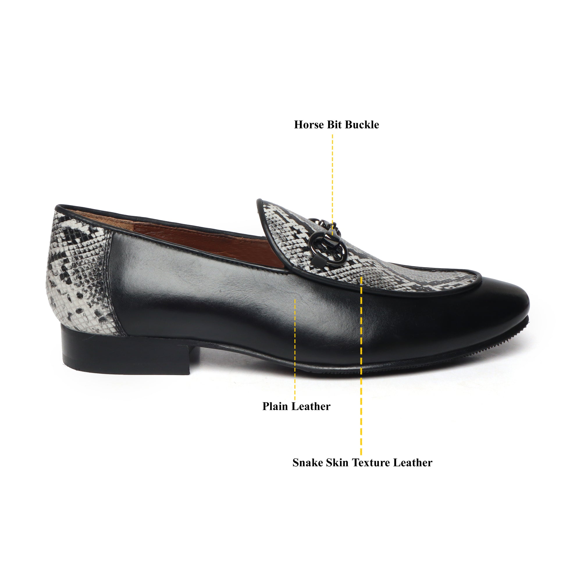 Black Horse-bit Leather Loafers With Snake Print at Vamp