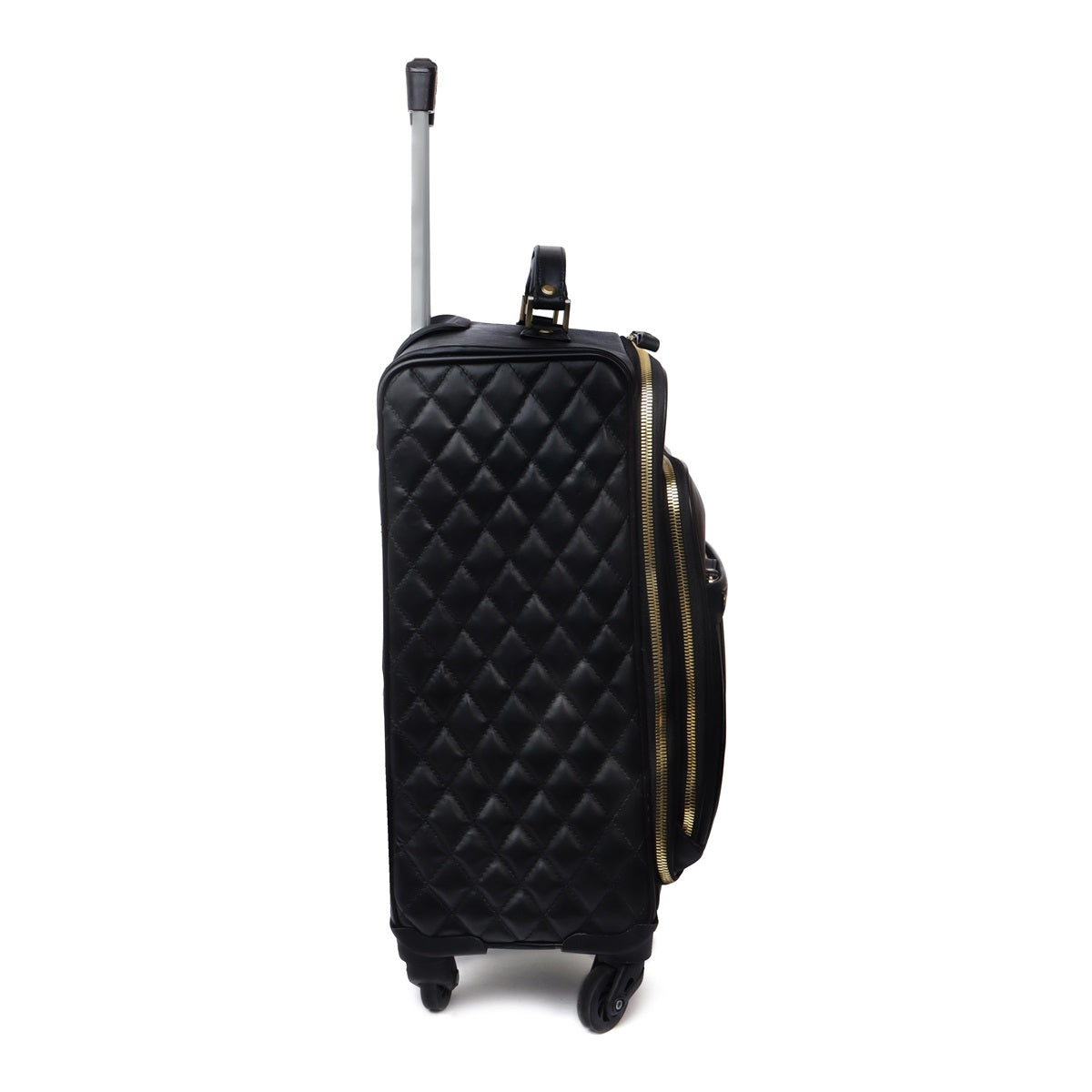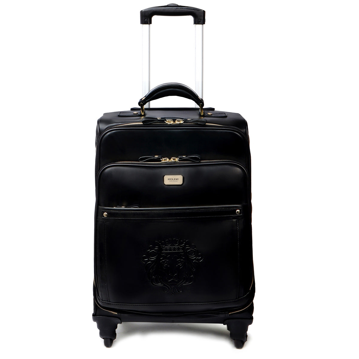 Black Leather Diamond Stitched Quad Wheel Trolley Bag With Embossed Lion Logo by Brune & Bareskin