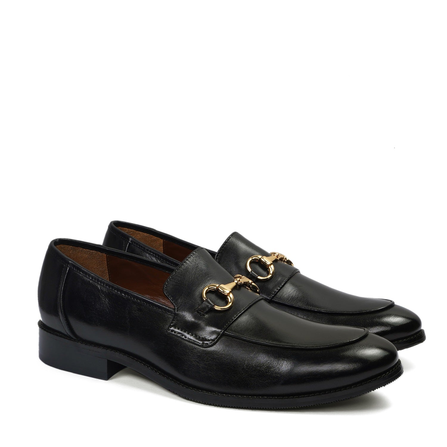 Black Leather Golden Horsebit Loafers By Brune & Bareskin