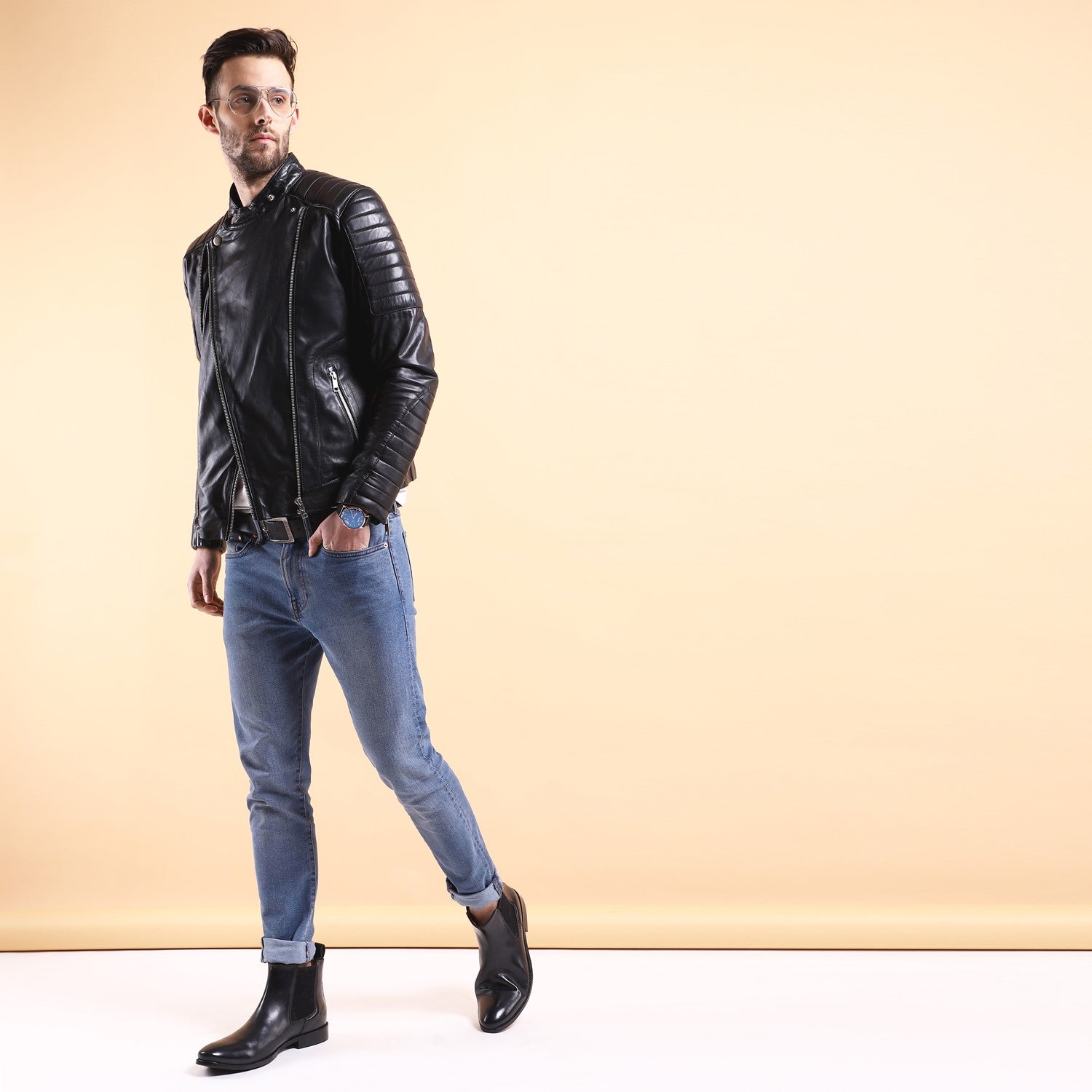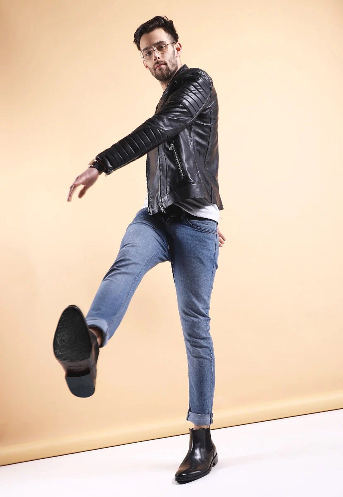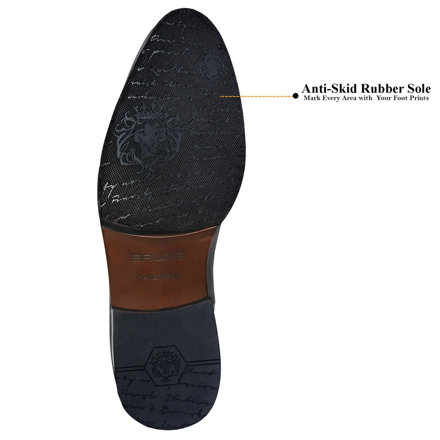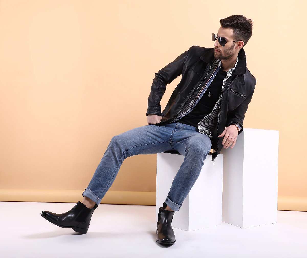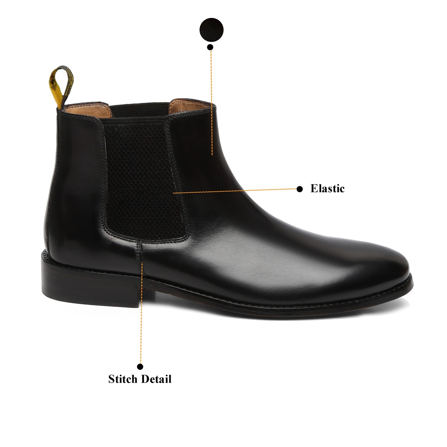 This high-ankle length Black-leather shoe can be customized to your liking. Tips of these pointed leather shoes enhance the style statement. The greater detailing at the ankles with rectangular elastic closure lend a classy look to these leather formal shoes. Wear it and make a remember-able mark of fashion