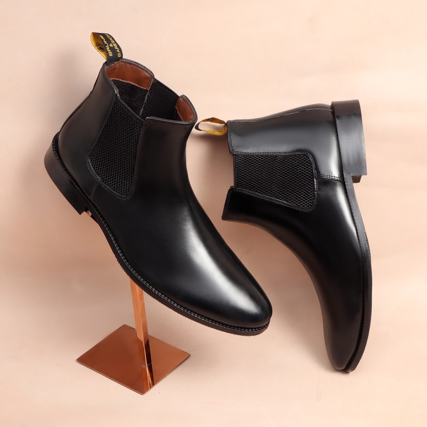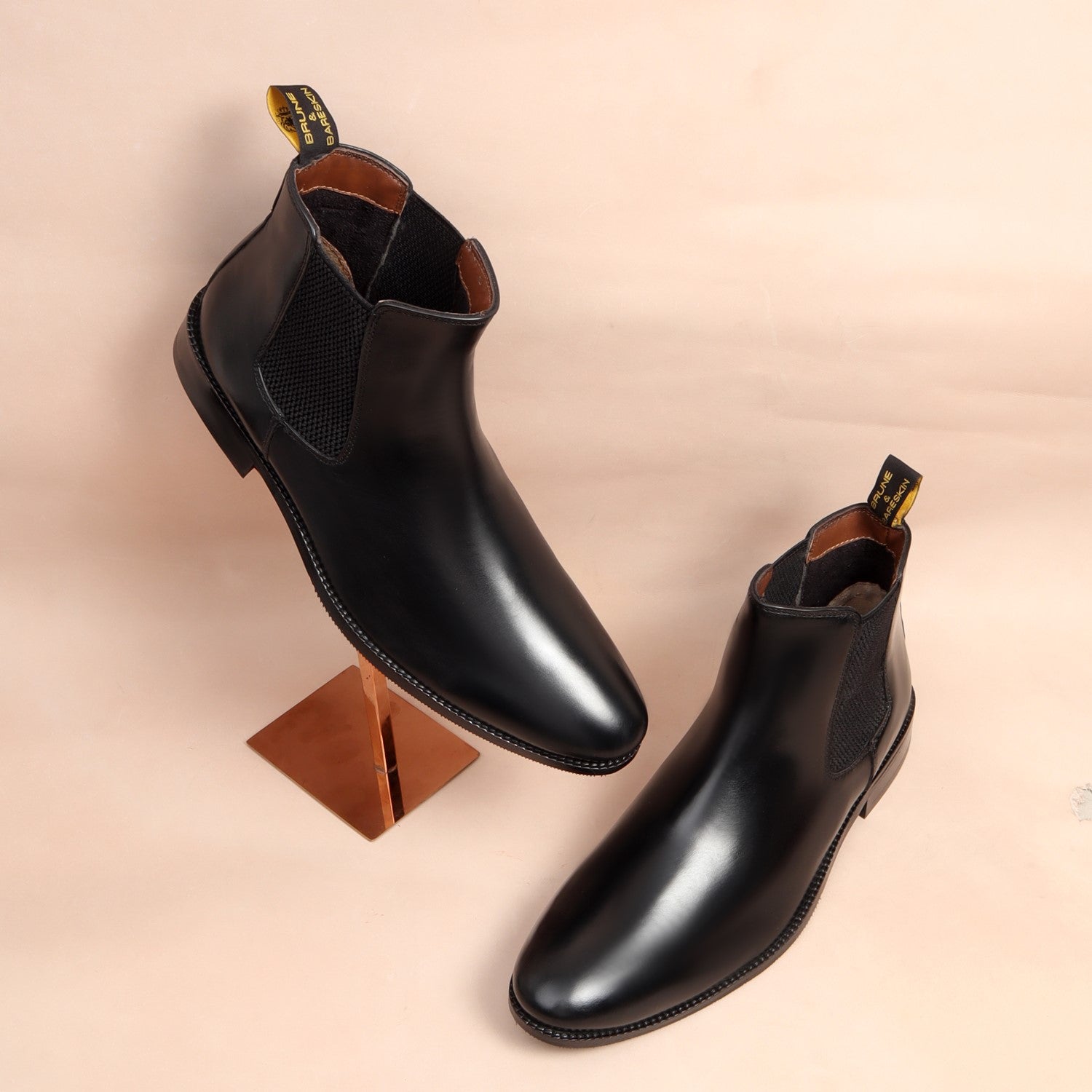 Black Leather Hand Made Chelsea Boots For Men By Brune & Bareskin