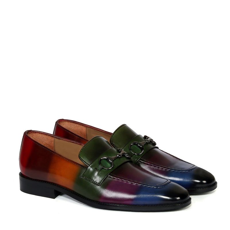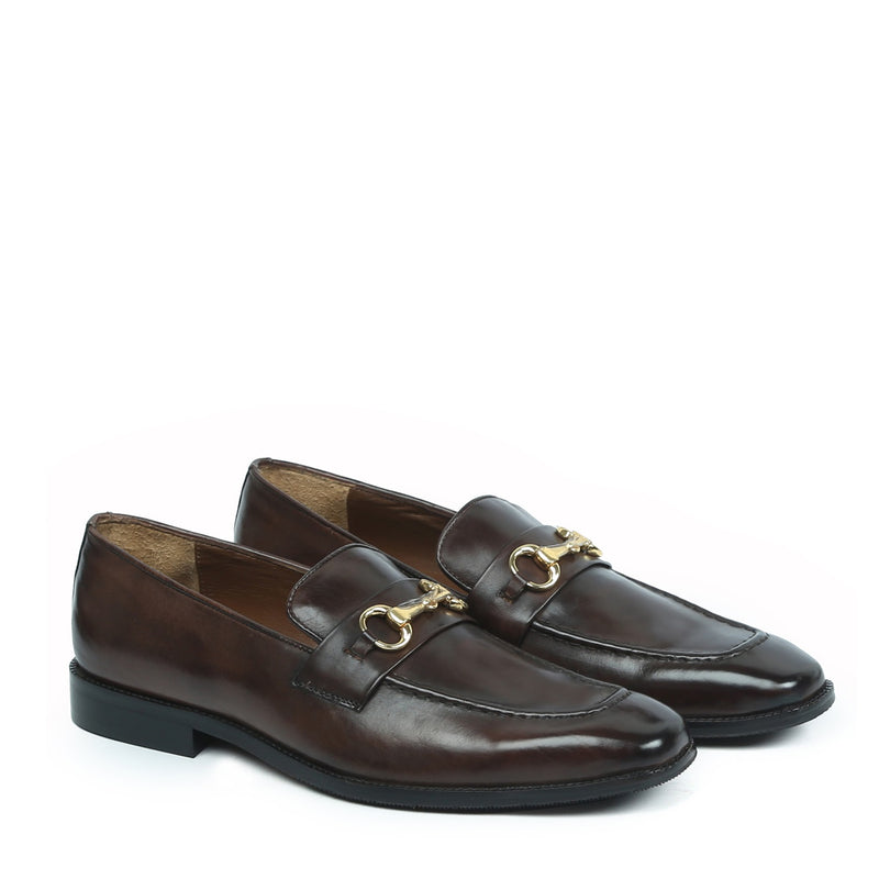 Black Leather Penny Loafers with horse-bit buckle