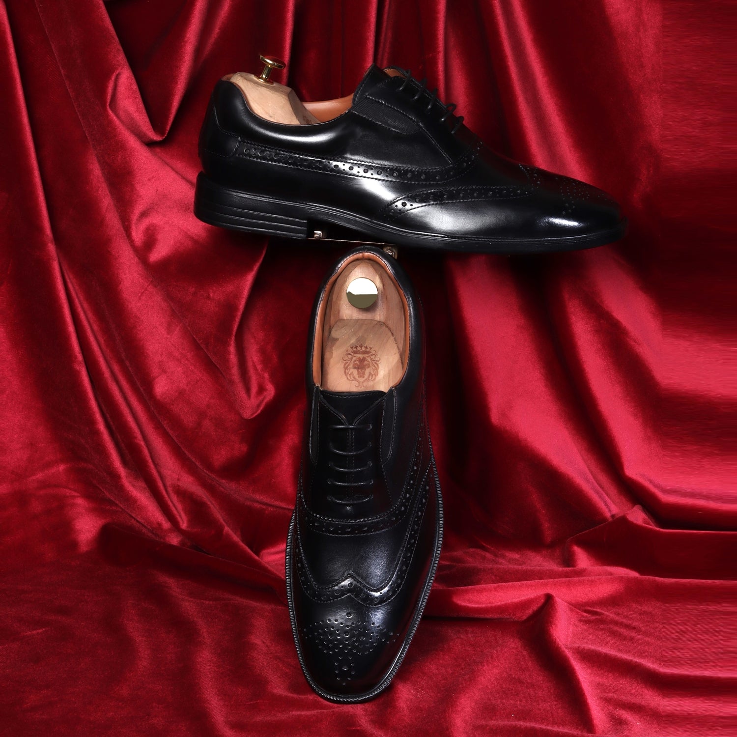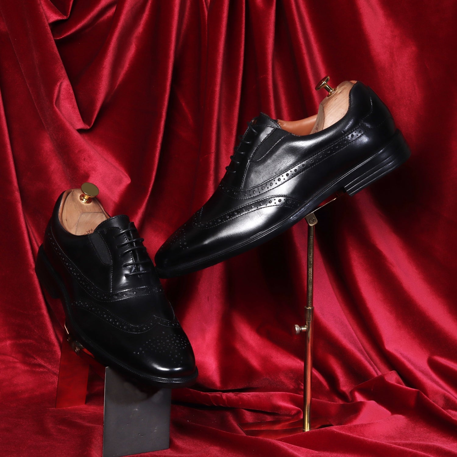 Black Leather Punching Brogue Oxford Lace-Up Shoe