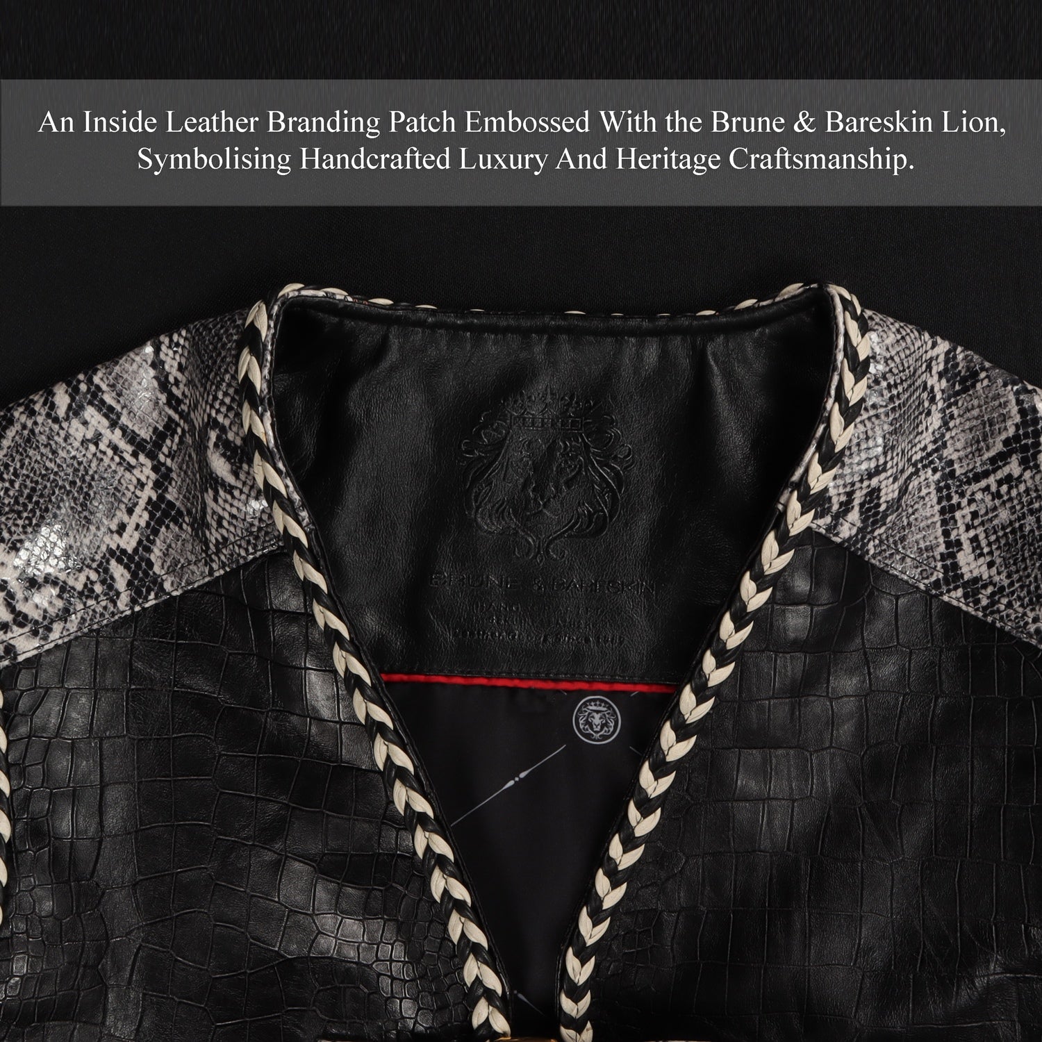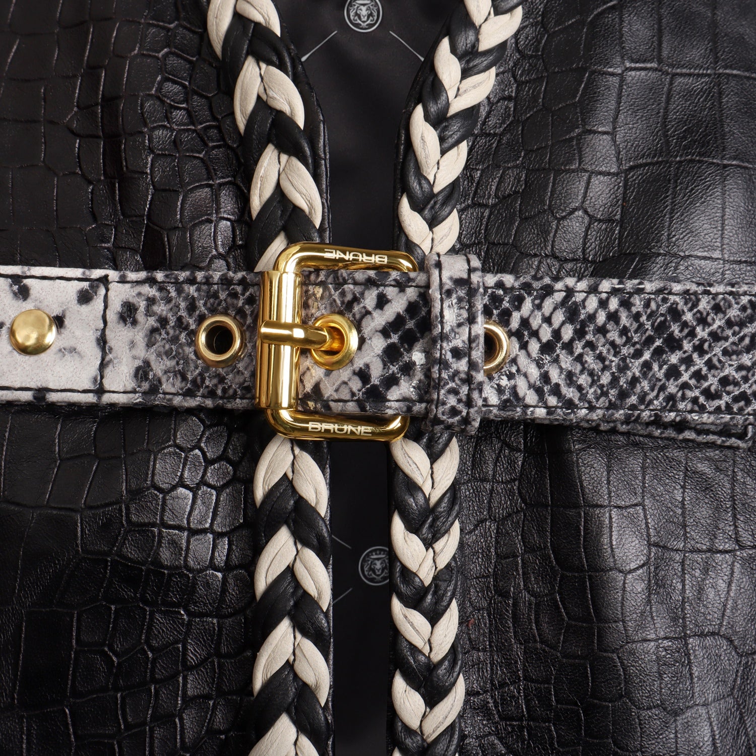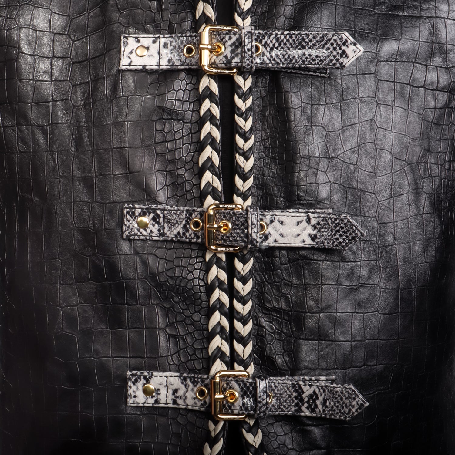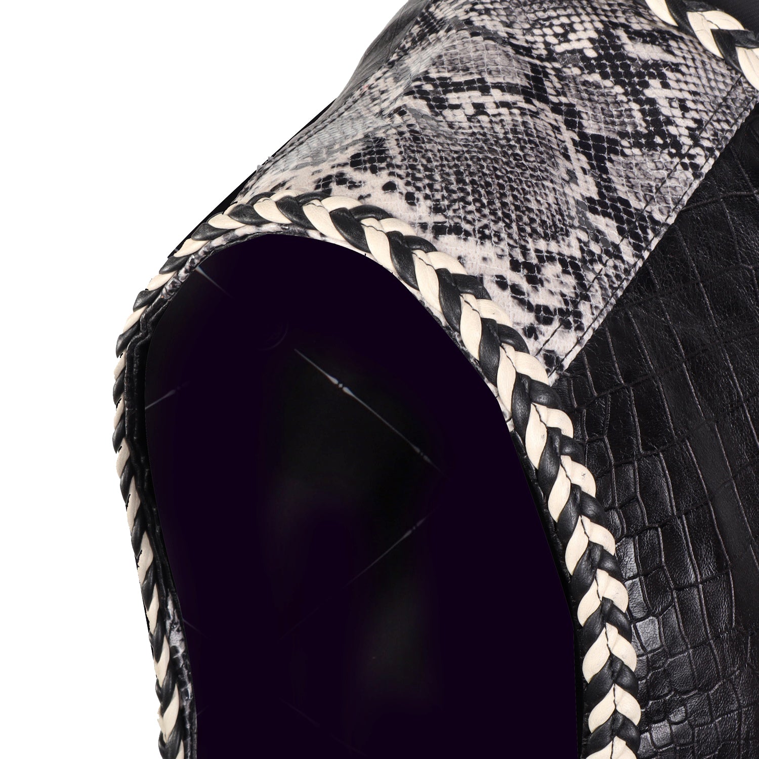 Crafted from premium quality leather, the croco embossed body gives the vest a structured and luxurious appearance, while the snake print leather straps add an exotic and fashion-forward edge.