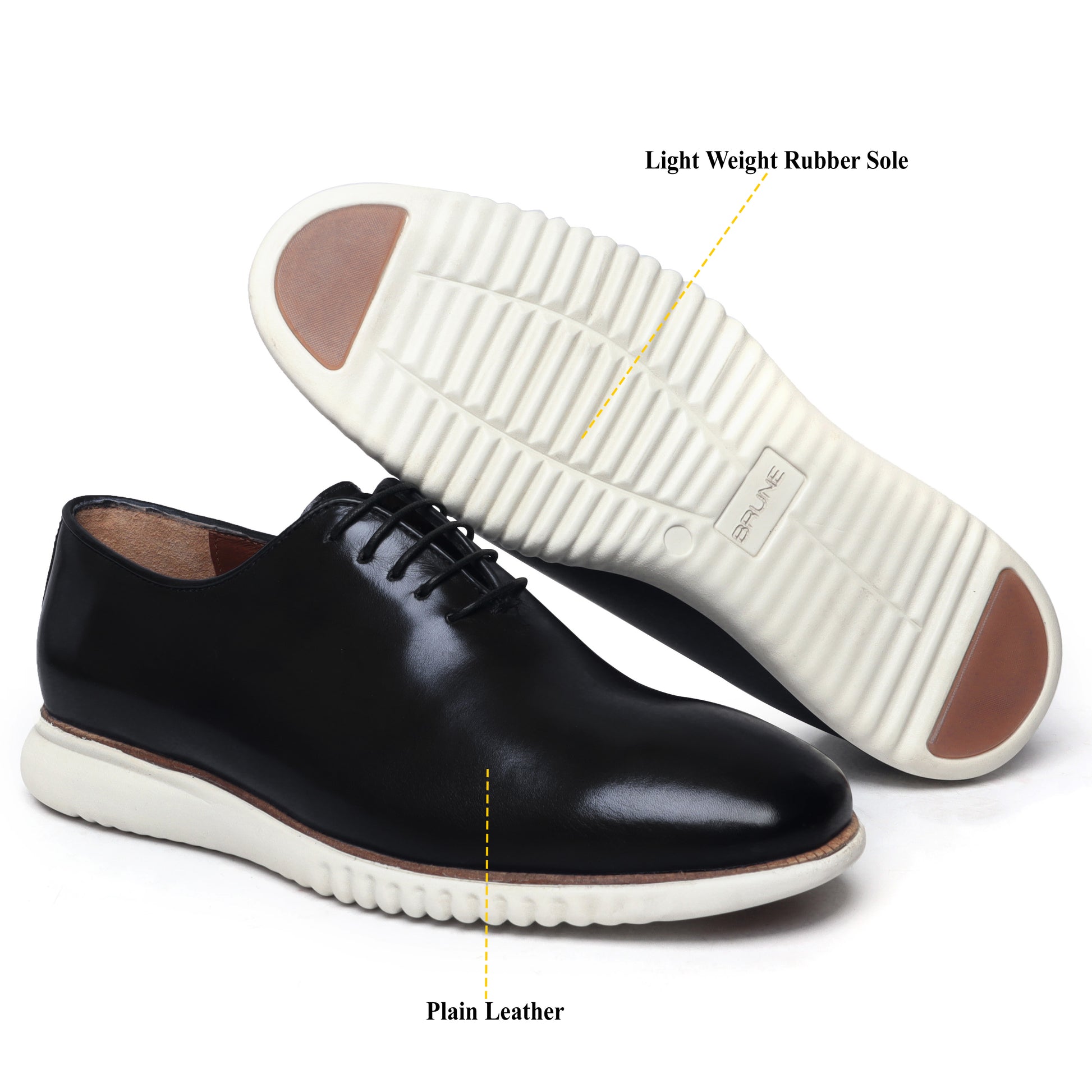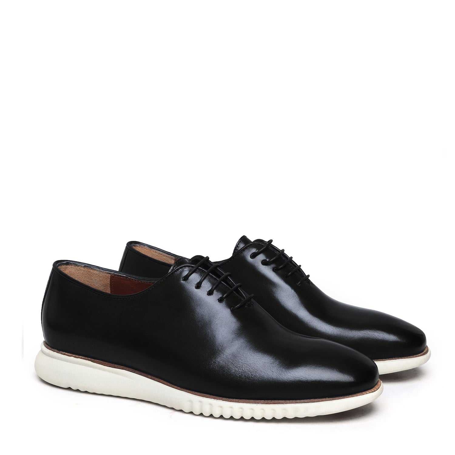 Black One Piece Leather Oxford Lace-Up Sneakers With Sole